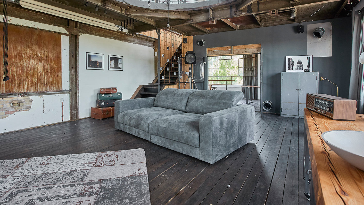 Das Sofa Ledersofa Gigant stellt sich hier als 4-Sitzer extratief vor.