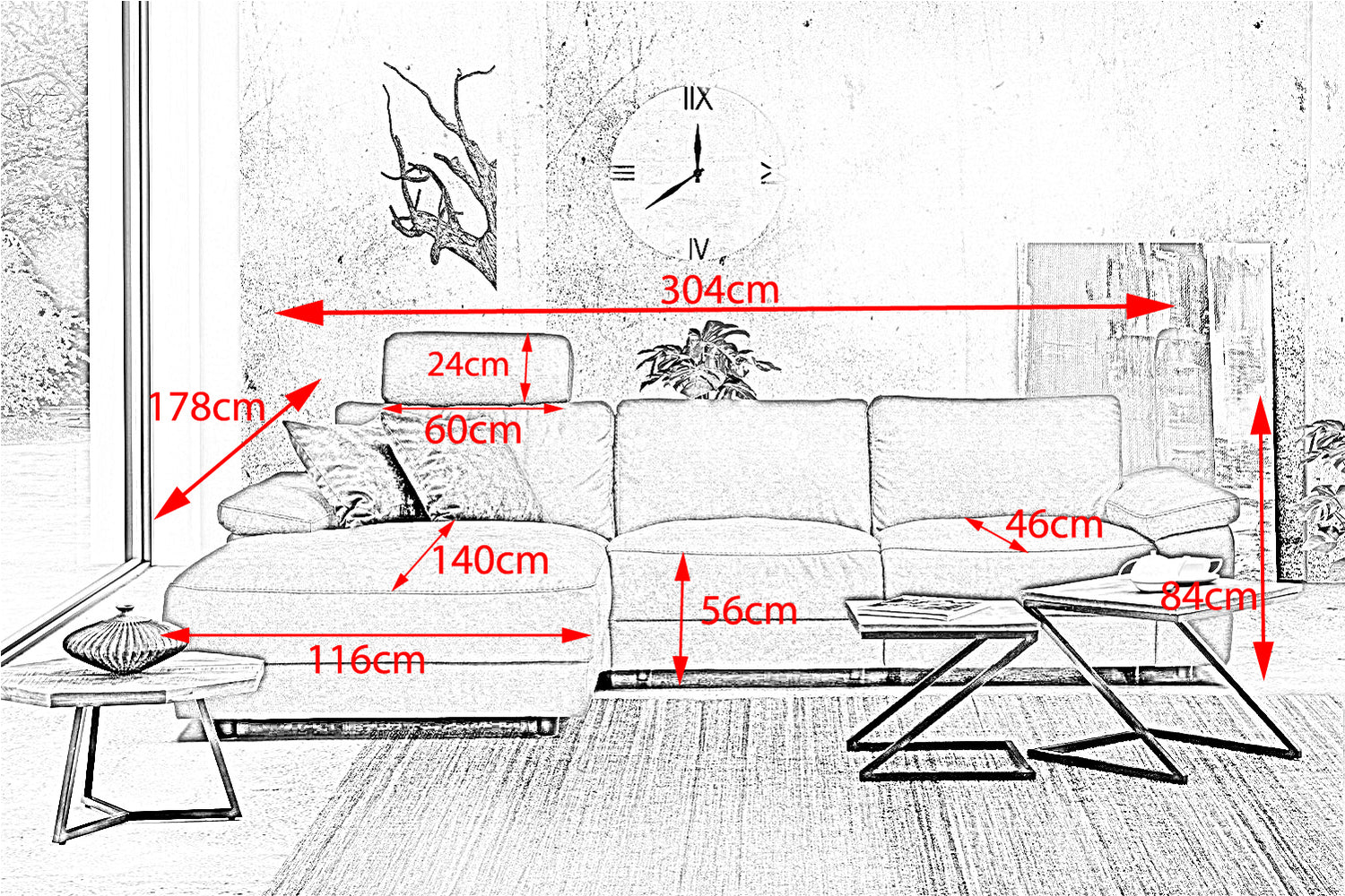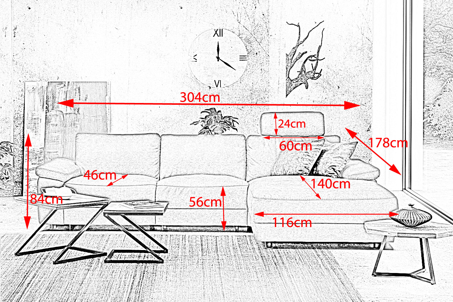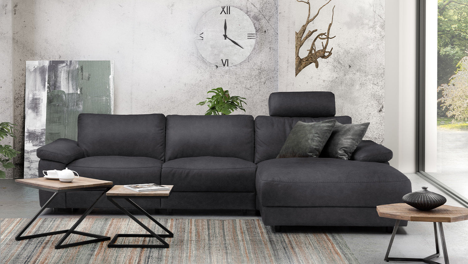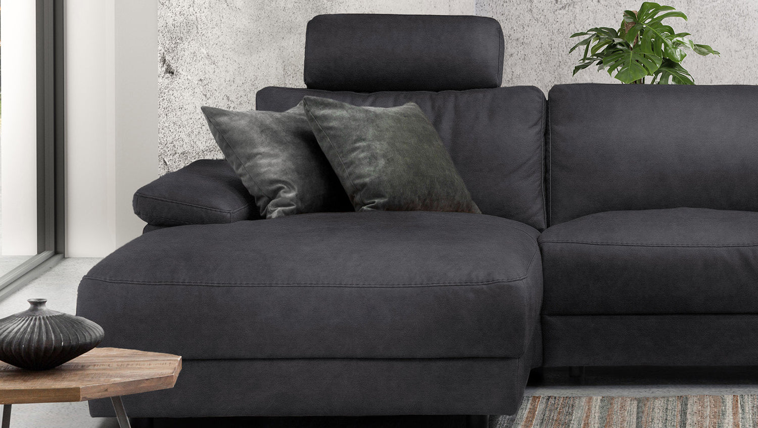 Das KAWOLA Ecksofa LOLA überzeugt durch seinen zeitlosen Look. Zudem wartet das Möbelstück mit tollen Funktionen auf. Das rechte Sitzelement verfügt über eine Relaxfunktion mit Motor, so kann die Lehne nach hinten und eine Fußstütze ausgefahren werden. Ein weiteres Highlight ist die Kopfstütze in Kissenoptik, diese kann ebenfalls nach Bedarf verstellt werden. Das Gestell besteht aus verleimtem Massivholz, die Sitz- und Lehnflächen sind durch ihren vielschichtigen Aufbau überaus komfortabel. Der Bezug aus hochwertigem Leder oder Stoff im Vintage-Stil ist äußerst pflegeleicht und verleiht dem Sofa eine klassische Eleganz. Die zurückgesetzten Kunststofffüße in schwebender Optik bilden dazu einen reizvollen Kontrast. Die sehr legere Polsterung der Sitzflächen, Rücken- und Armlehnen bietet darüber hinaus einen hohen Sitzkomfort. Das Ecksofa LOLA fügt sich nahtlos in jede Umgebung ein und macht überall eine gute Figur!