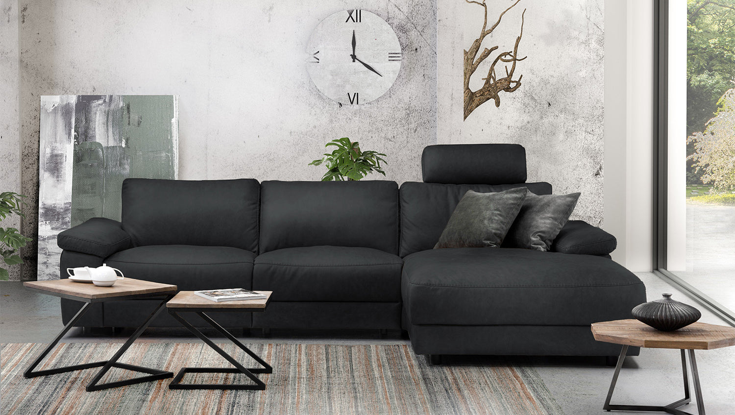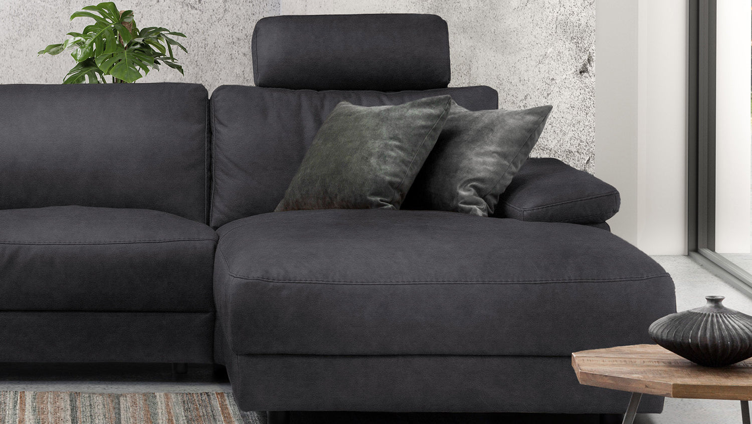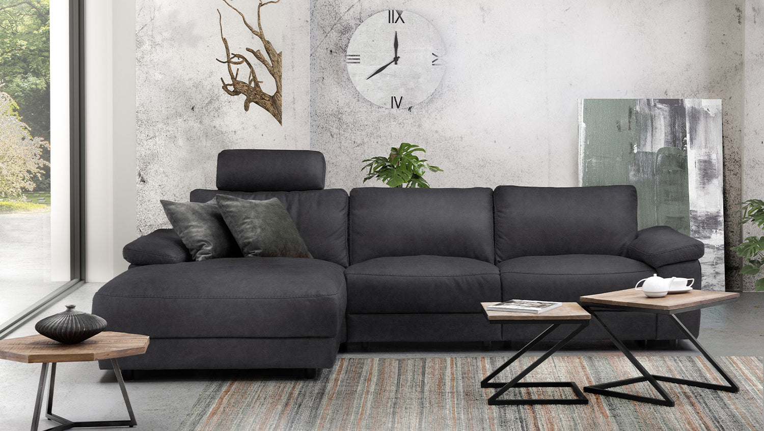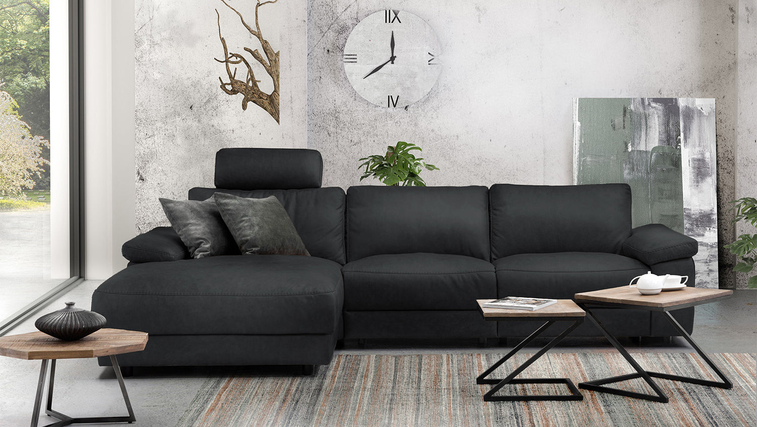 KAWOLA Sofa LOLA Ecksofa XL schwarz mit motorischer Relaxfunktion versch. Bezüge