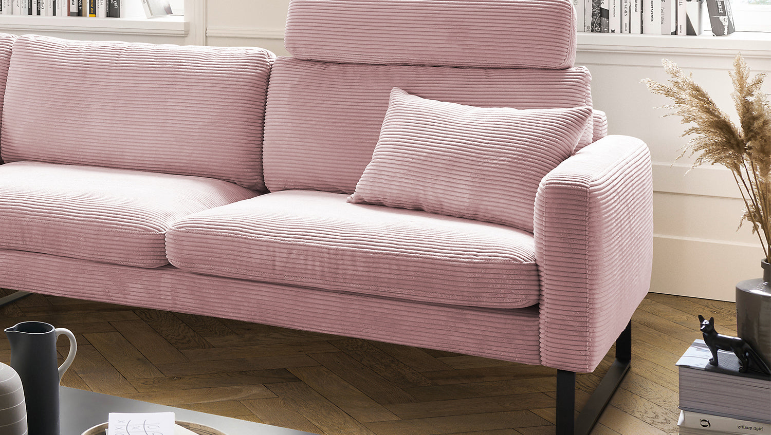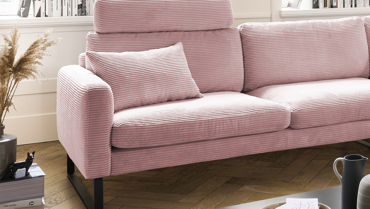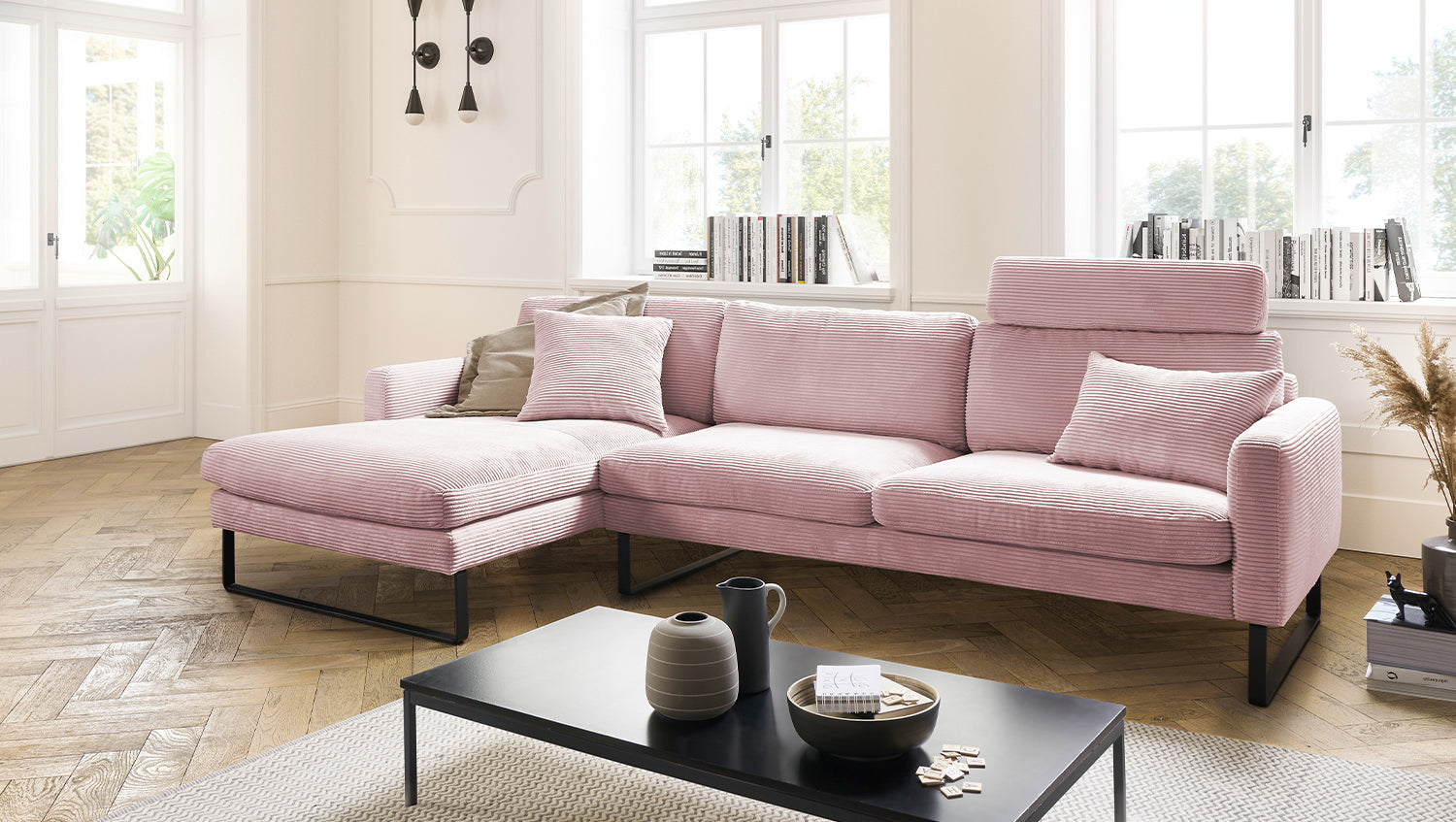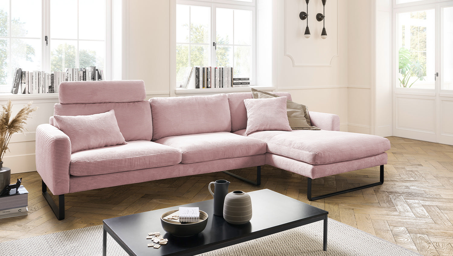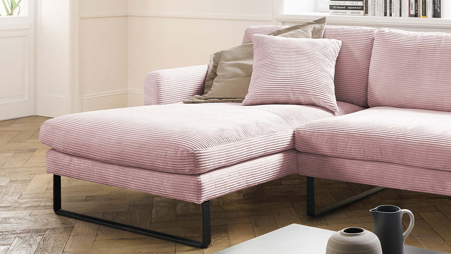 KAWOLA Sofa RICARDA Ecksofa Cord rosa