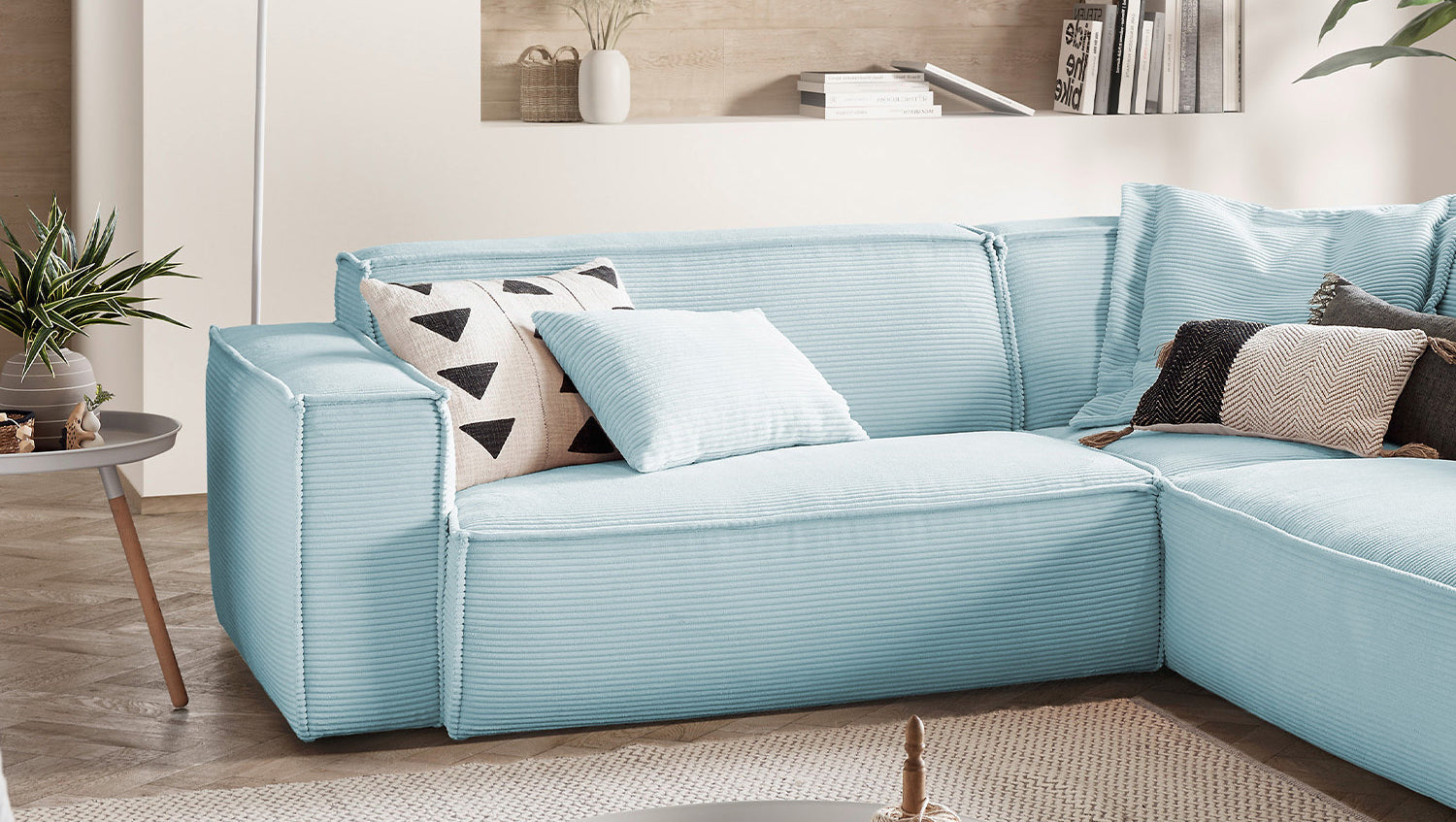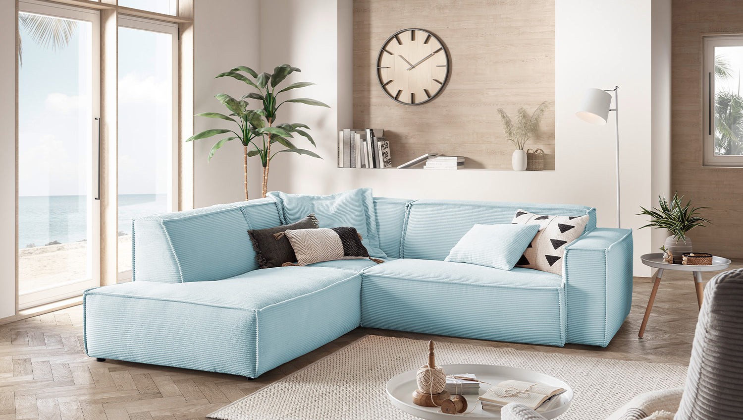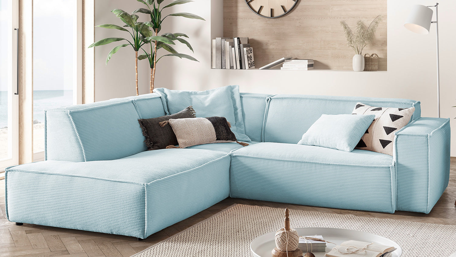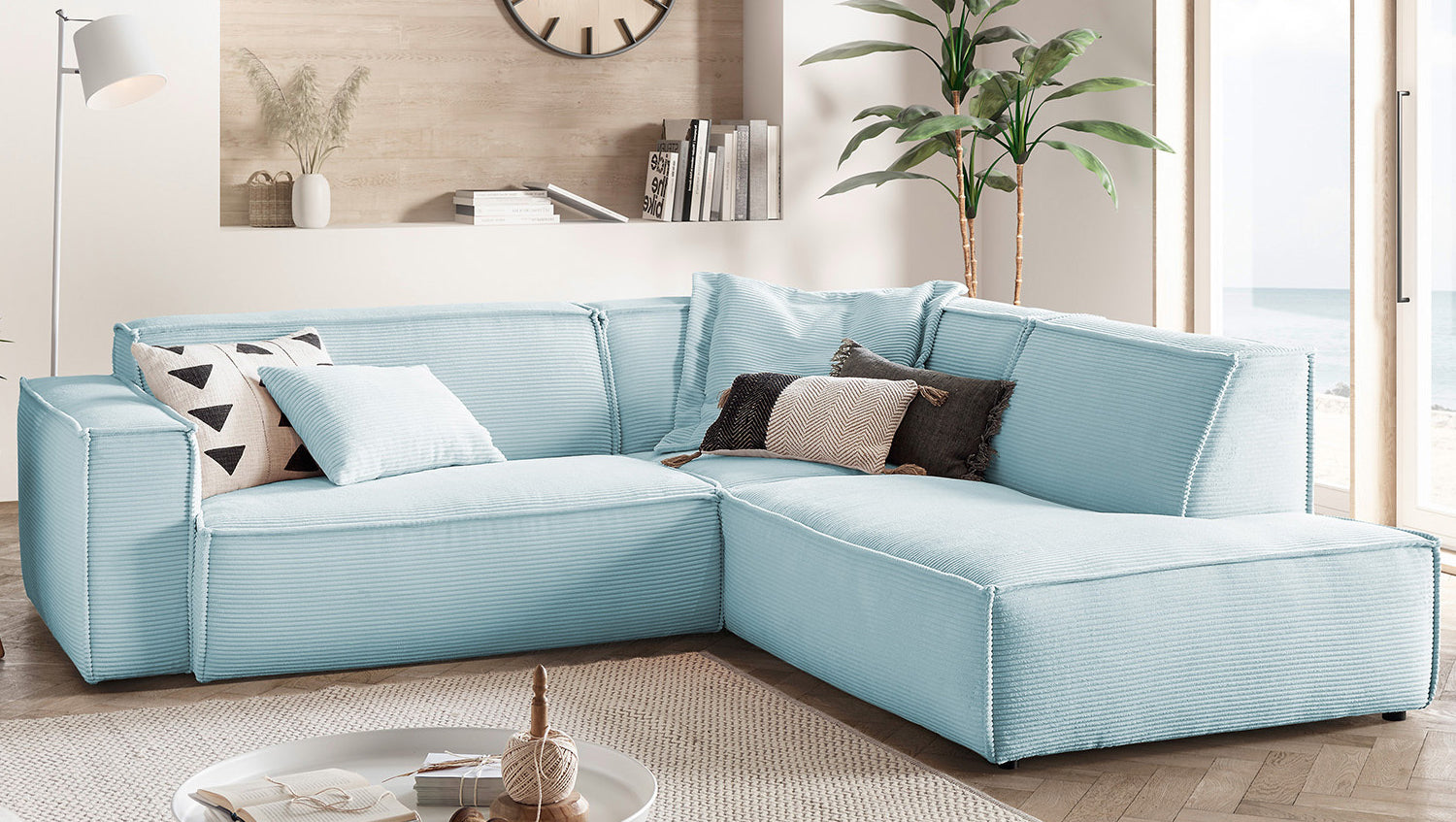 KAWOLA Sofa SAMU Ecksofa Cord hellblau