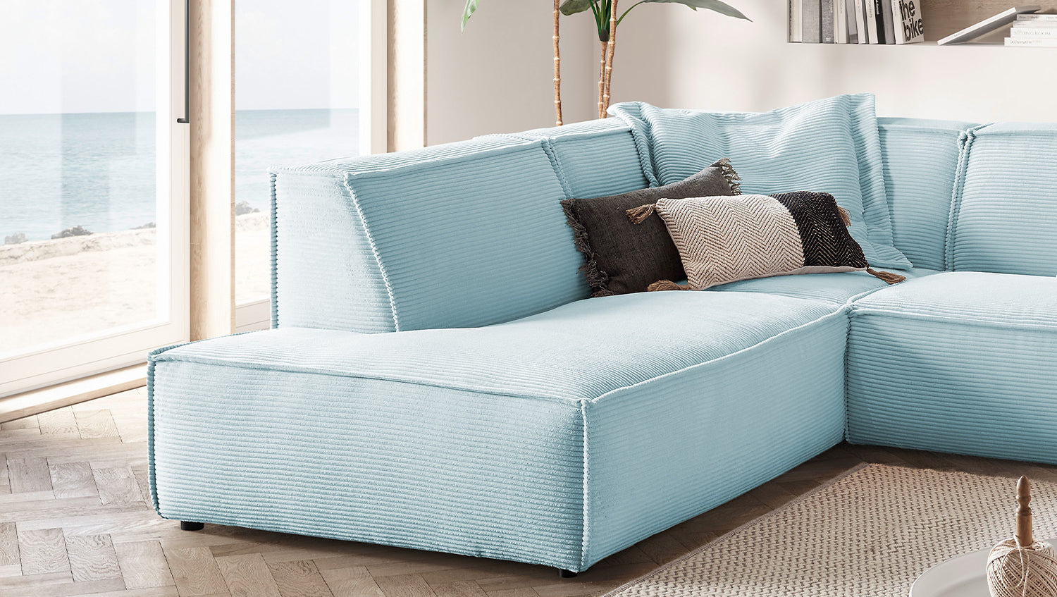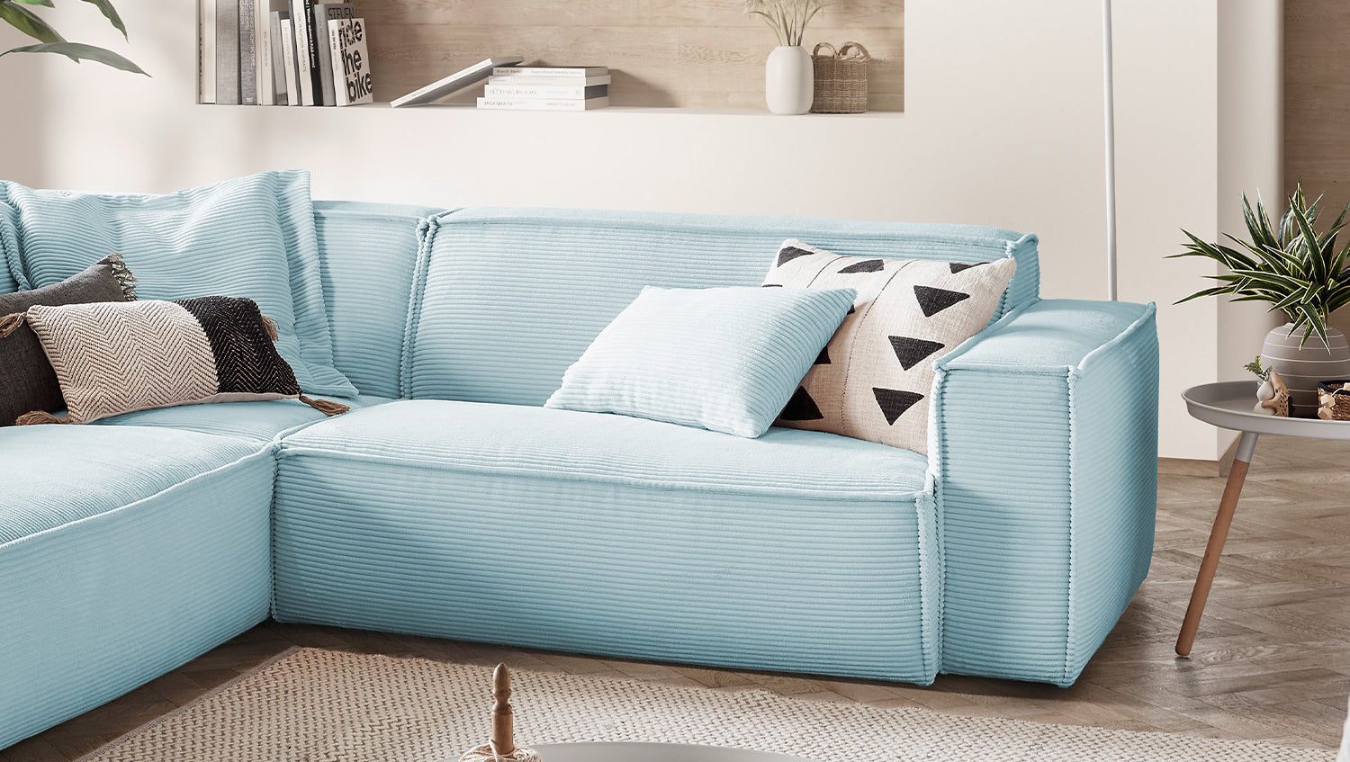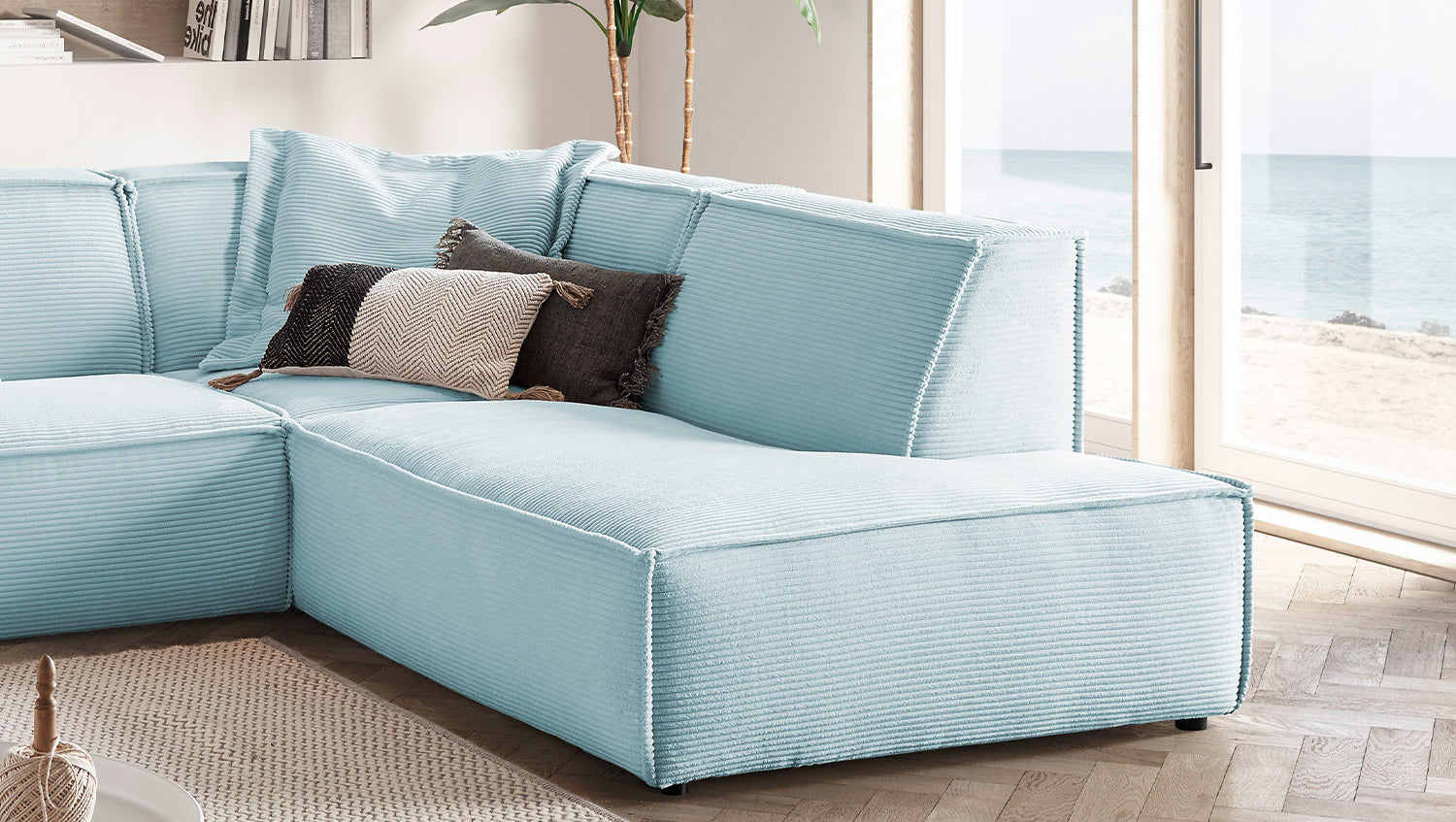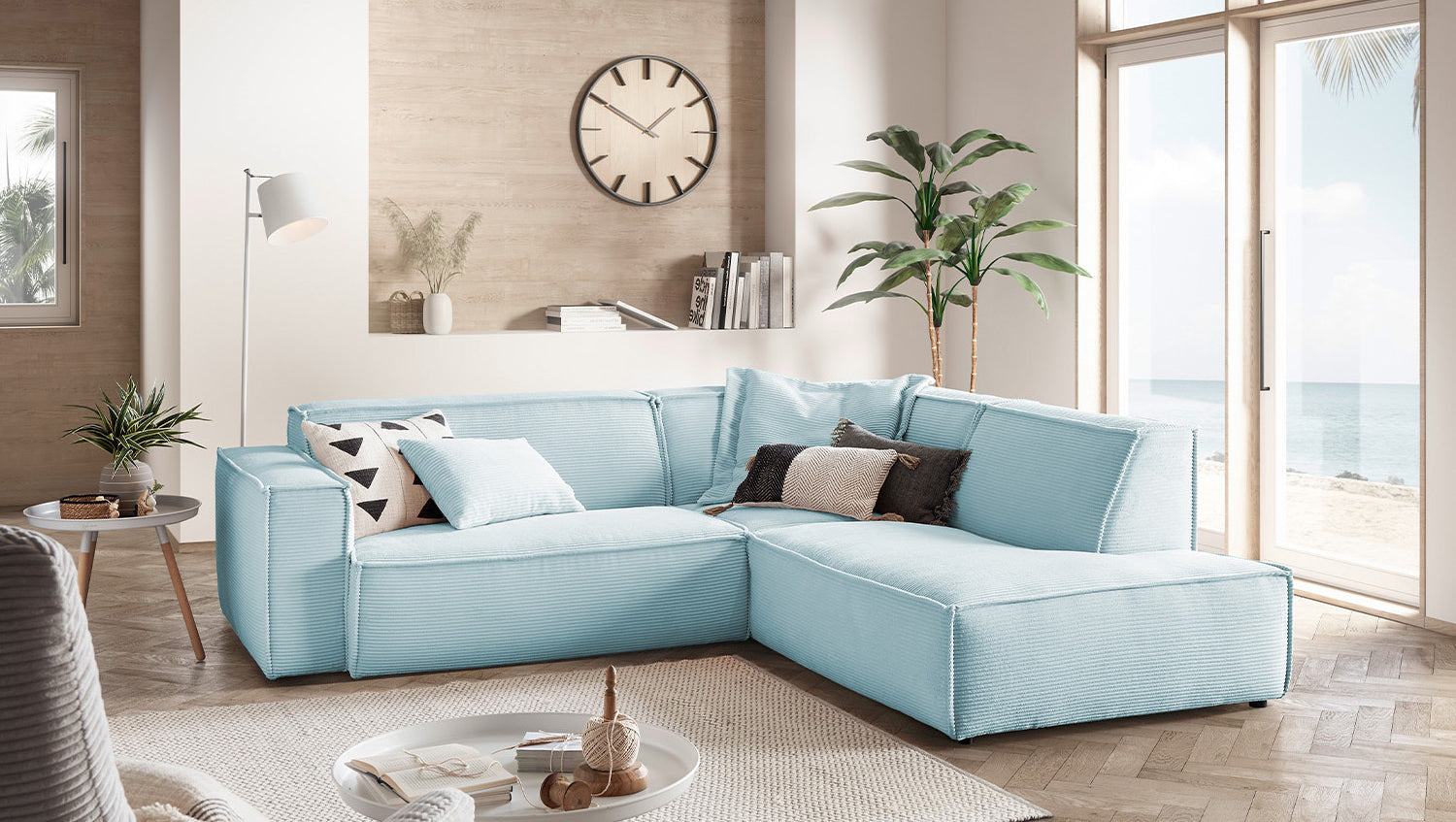 KAWOLA Sofa SAMU Ecksofa Cord hellblau