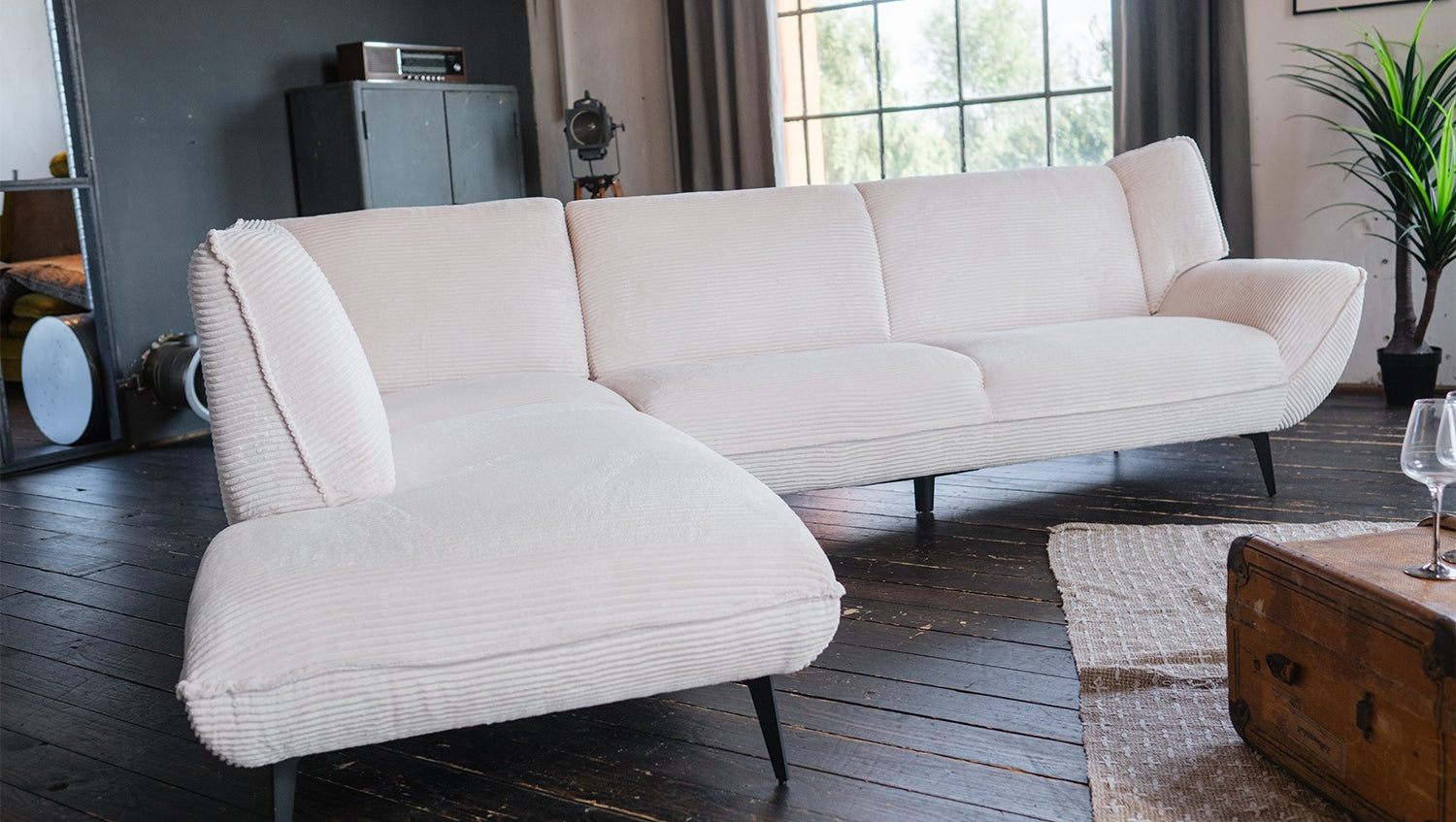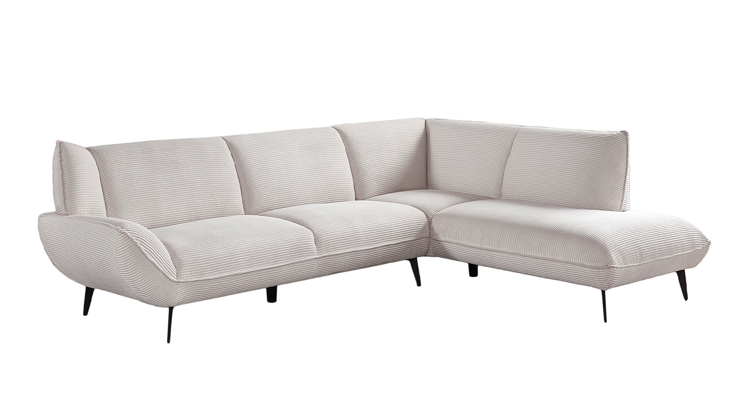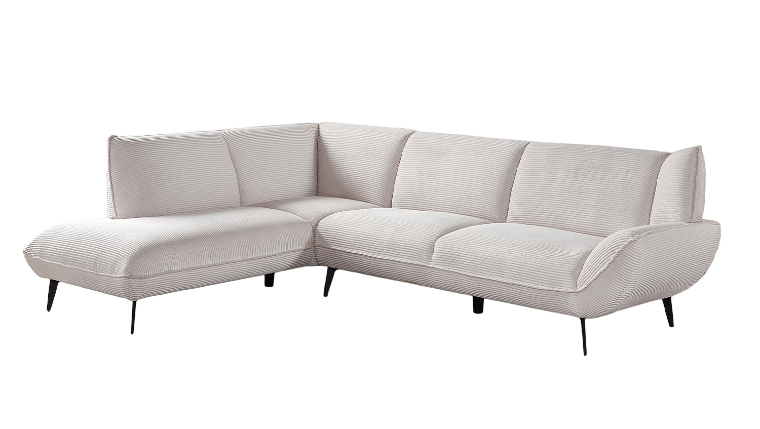 Die stabilen Metallfüße unterstreichen nicht nur das moderne Design, sondern gewährleisten auch eine sichere Basis. Ob beim gemütlichen Fernsehabend oder beim geselligen Beisammensein mit Freunden – das Ecksofa CALLA bietet einen einladenden Platz zum Verweilen.