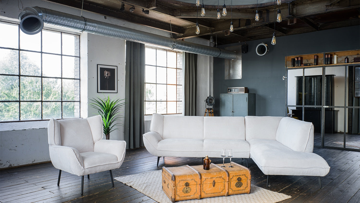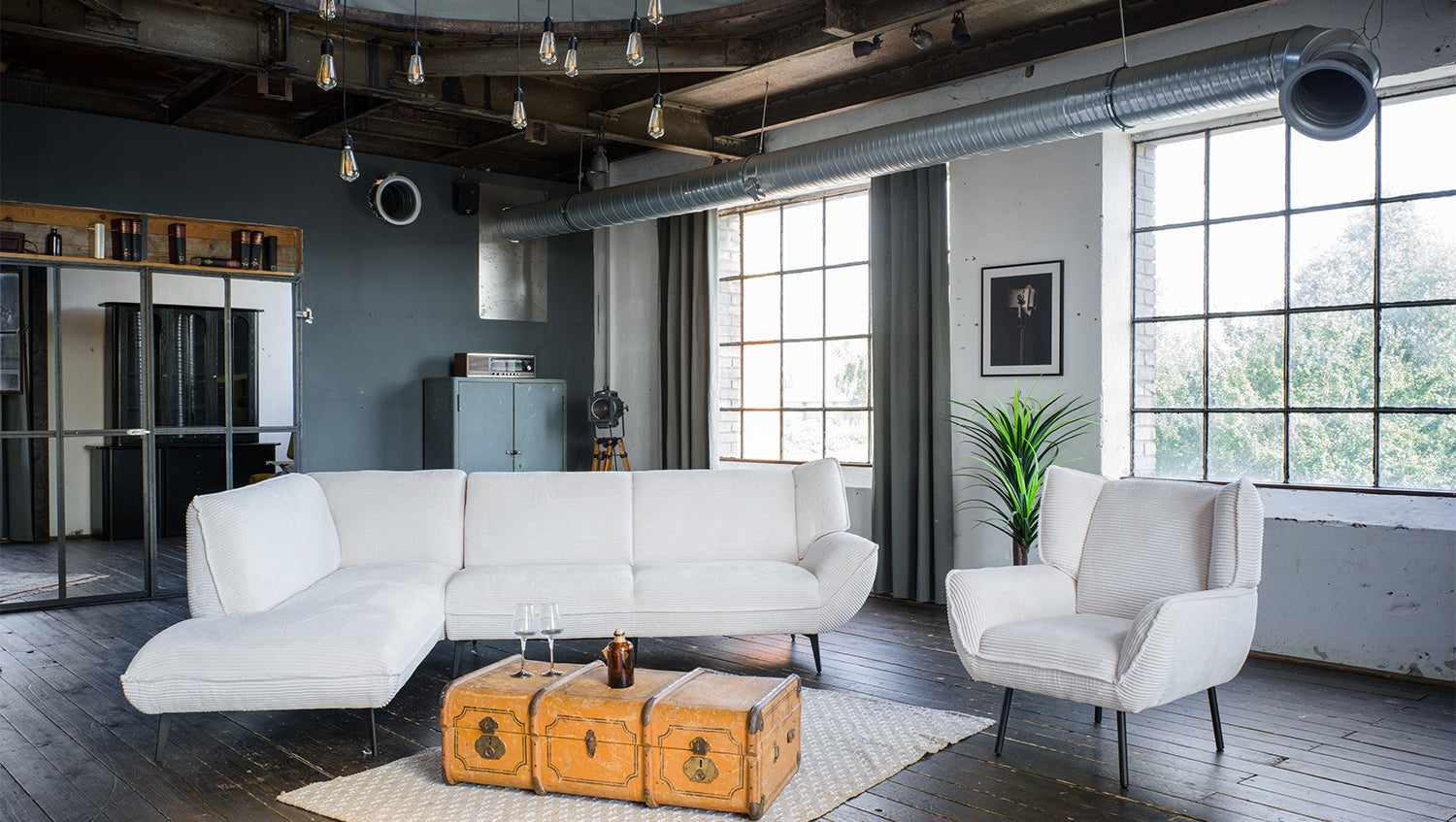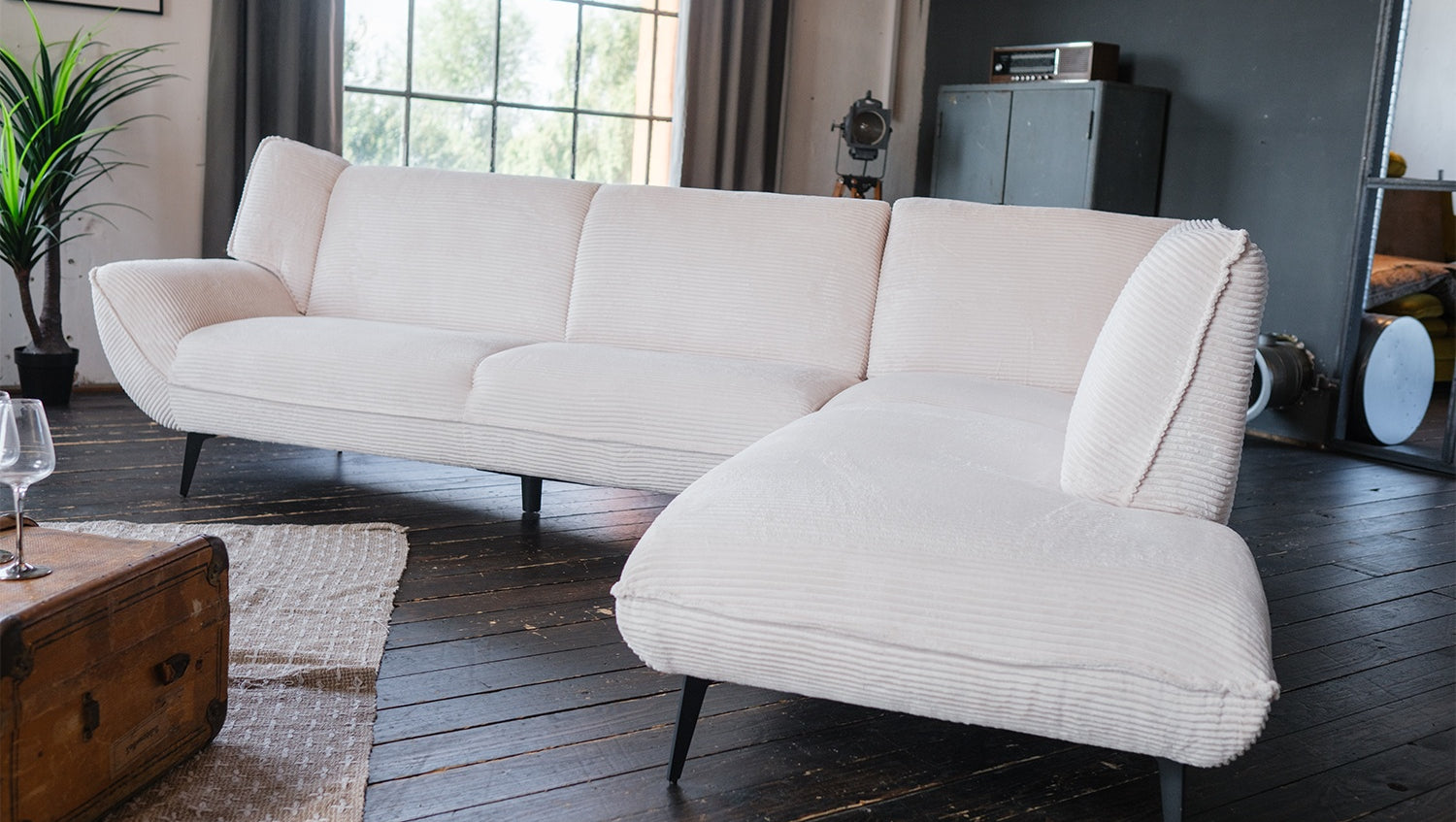 Die stabilen Metallfüße unterstreichen nicht nur das moderne Design, sondern gewährleisten auch eine sichere Basis. Ob beim gemütlichen Fernsehabend oder beim geselligen Beisammensein mit Freunden – das Ecksofa CALLA bietet einen einladenden Platz zum Verweilen.