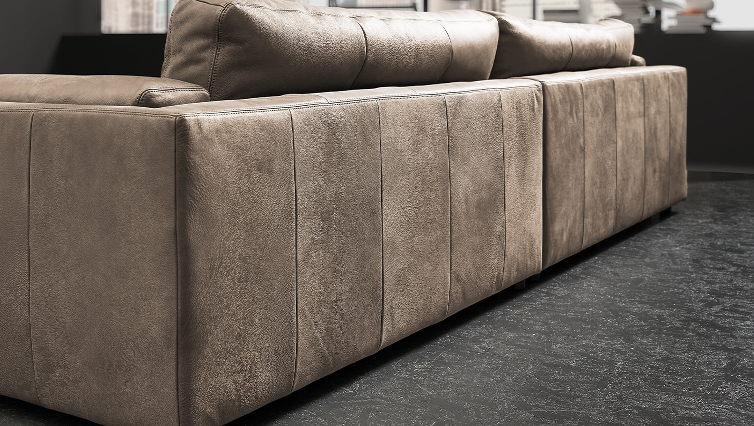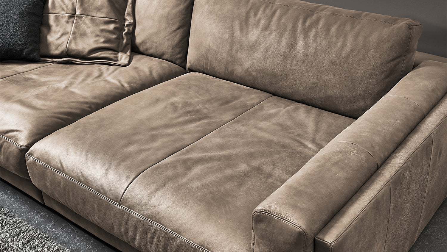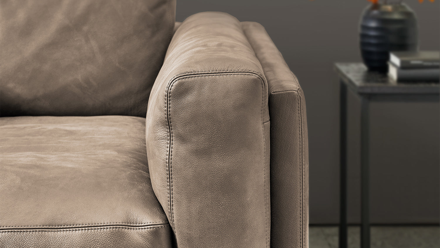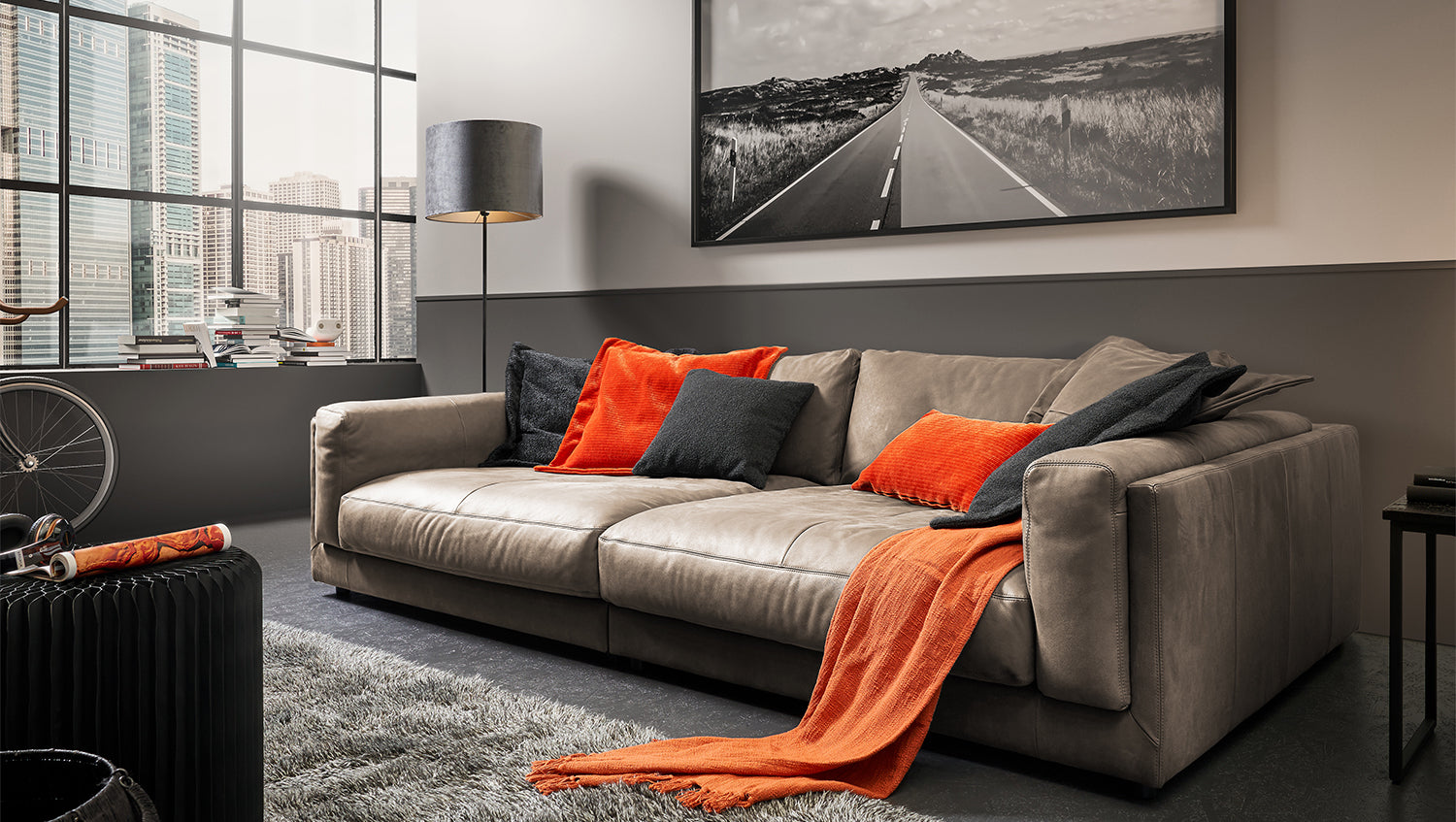 Entdecken Sie das luxuriöse Big Sofa RAINA von KAWOLA - eine meisterhafte Fusion aus Komfort und Stil. Mit einem großzügigen Rundumbezug aus hochwertigem Anilinleder ist das RAINA ein Blickfang in jedem Wohnzimmer. Das Anilinleder, veredelt in Nubuk-Optik, verleiht dem Sofa einen edlen Touch.