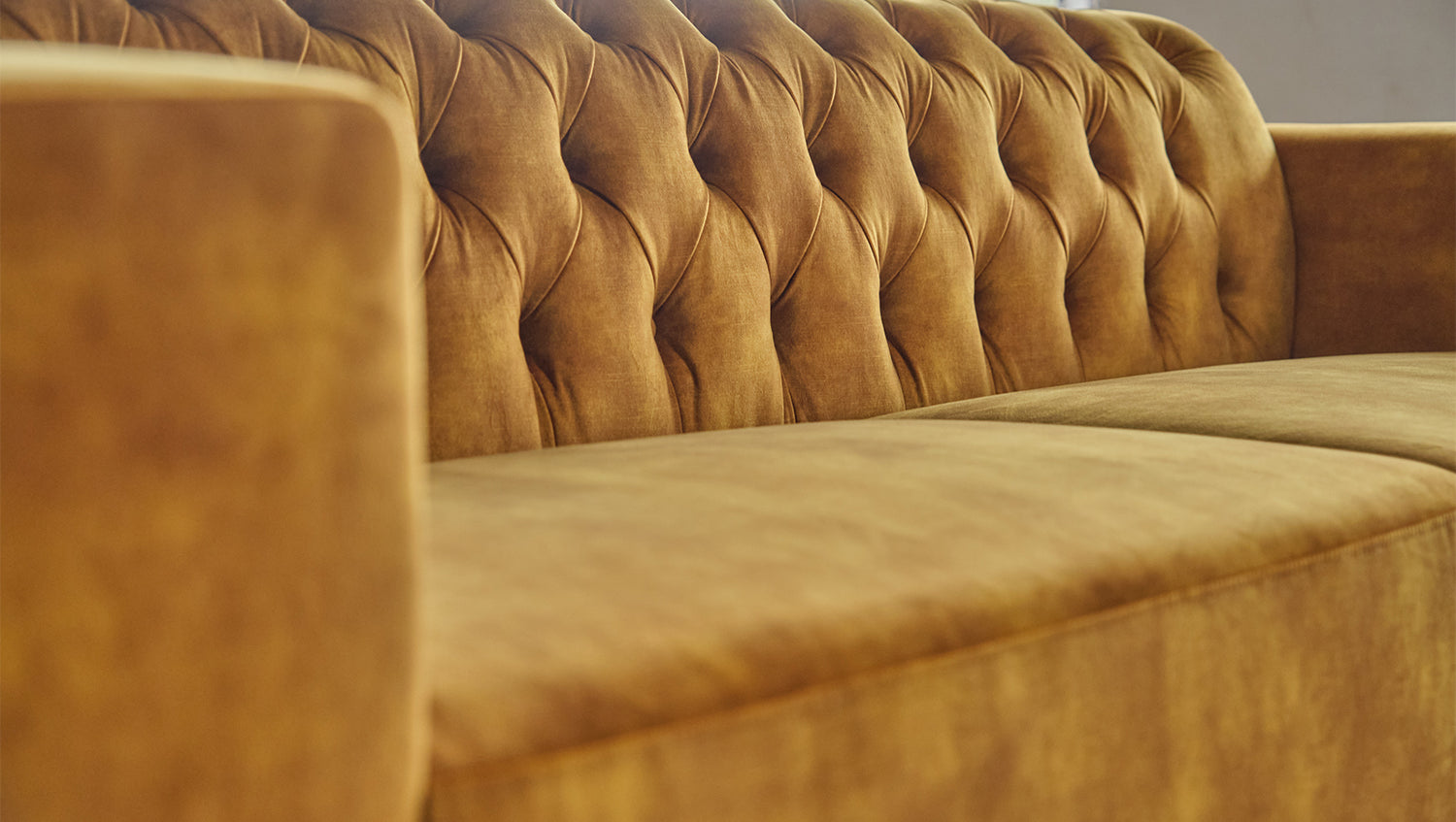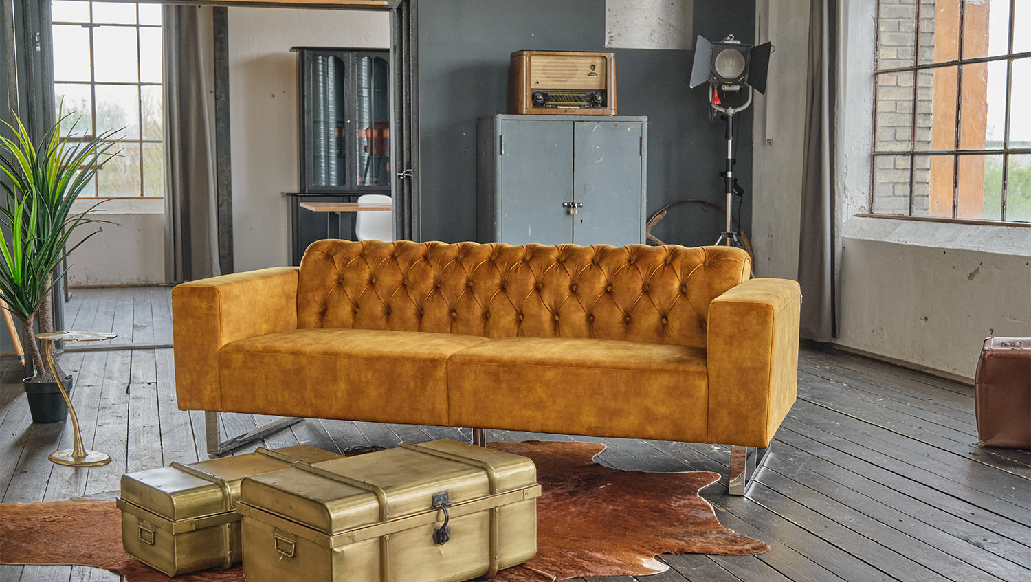 Das Sofa NILO von KAWOLA ist ein stylisches Sofa mit Samtbezug in der Ausführung Velvet Vintage Gold. Das Sofa für Designliebhaber bietet Platz für bis zu drei Personen und ist dank der Polsterung aus Federkern und Schaumstoff besonders gemütlich. Die aufwendig gesteppte Rückenlehne und das hochwertig verarbeitete Samt machen das Sofa zu einem absoluten Eye-Catcher.