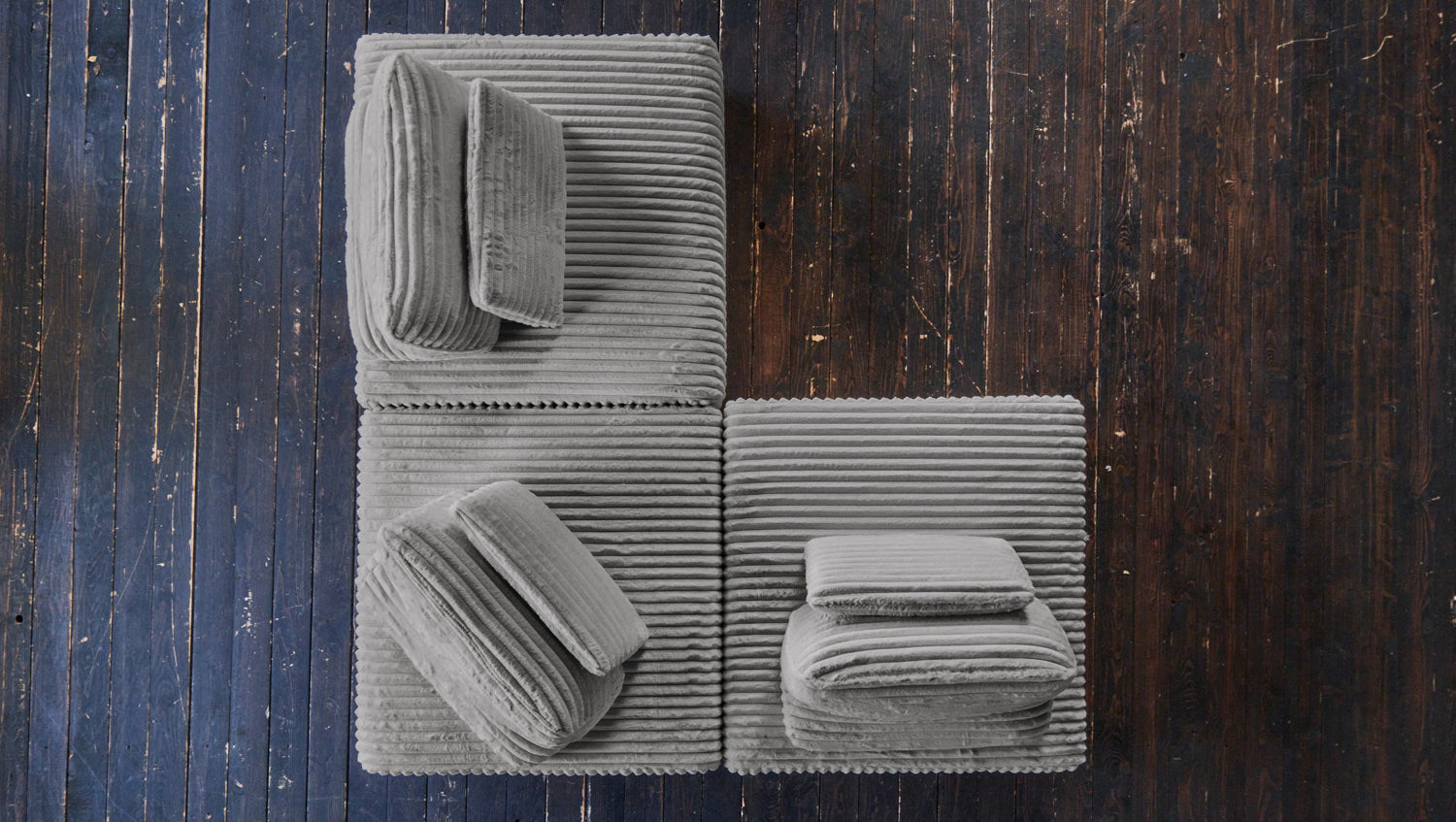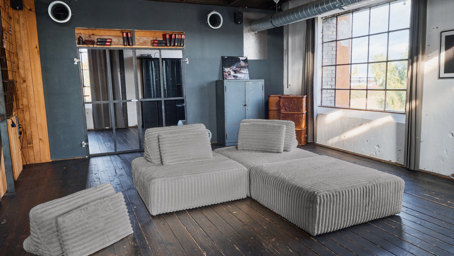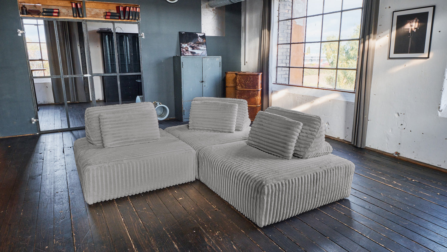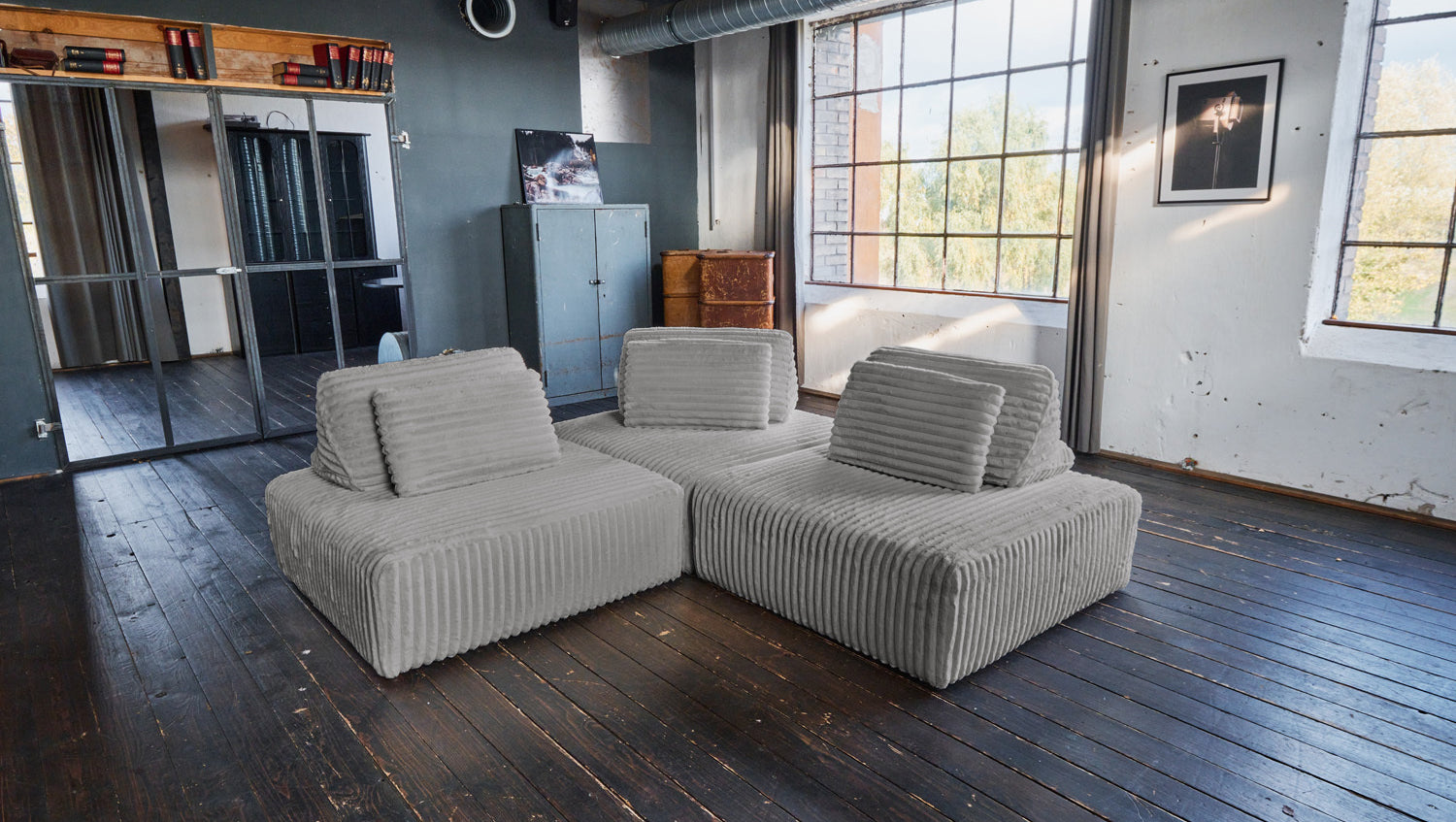KAWOLA Modulsofa WIOLO SOFT 3 Module 3 Rückenkissen Weicher Breitcord grau