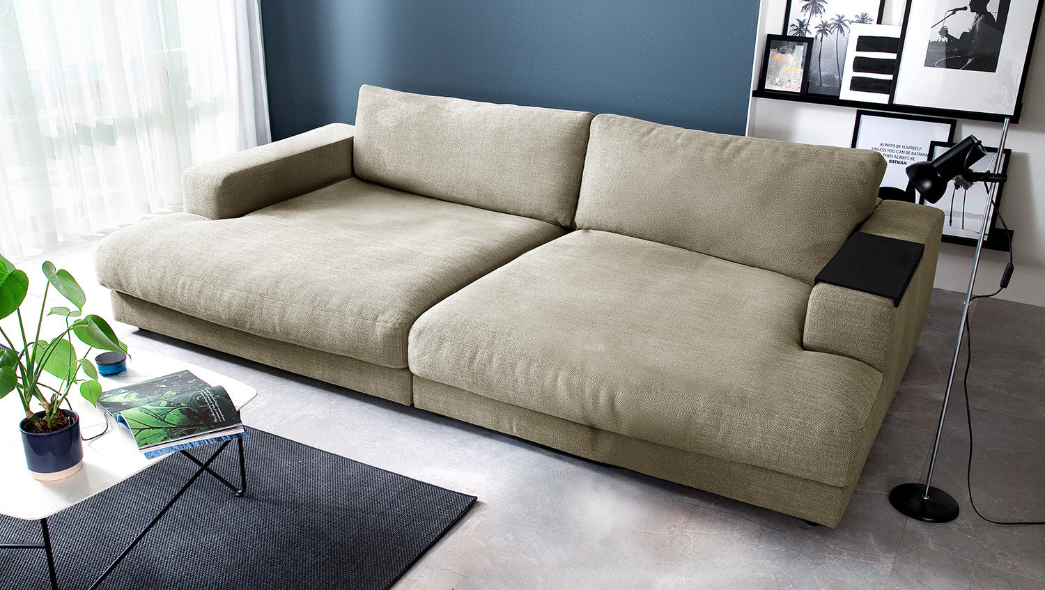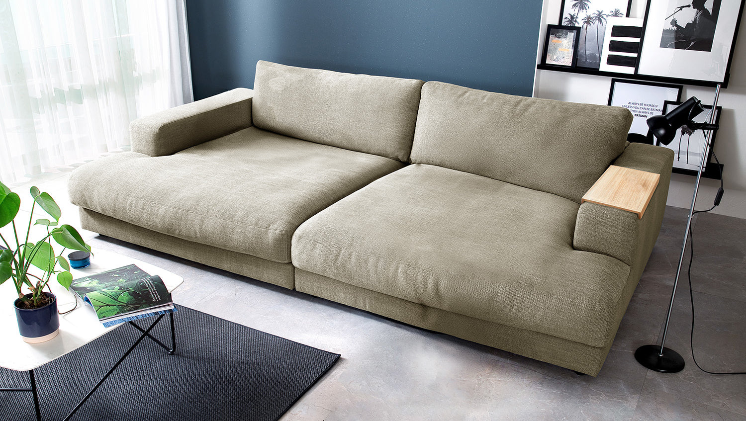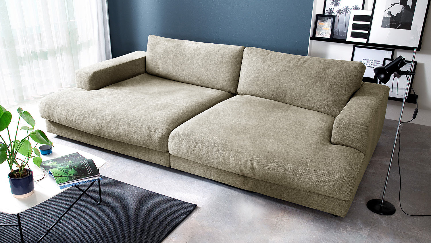 Das KAWOLA Big Sofa MADELINE besticht durch seinen hervorragenden Sitzkomfort, der durch die äußerst legere Polsterung zustande kommt und zum Verweilen und Entspannen einlädt. Das ungewöhnliche Maß und seine moderne und urbane Form verleihen dem Sofa sein unverwechselbares Aussehen und bieten ausreichend Platz, um gemütliche Abende zu verbringen. Mit seinem zeitlosen Design fügt es sich nahtlos in jede Umgebung ein und macht auch frei im Raum stehend eine gute Figur. Wenn Sie Ihrem Wohnzimmer einen außergewöhnlichen Anstrich verleihen wollen, ist das Big Sofa MADELINE definitiv das Richtige für Sie!