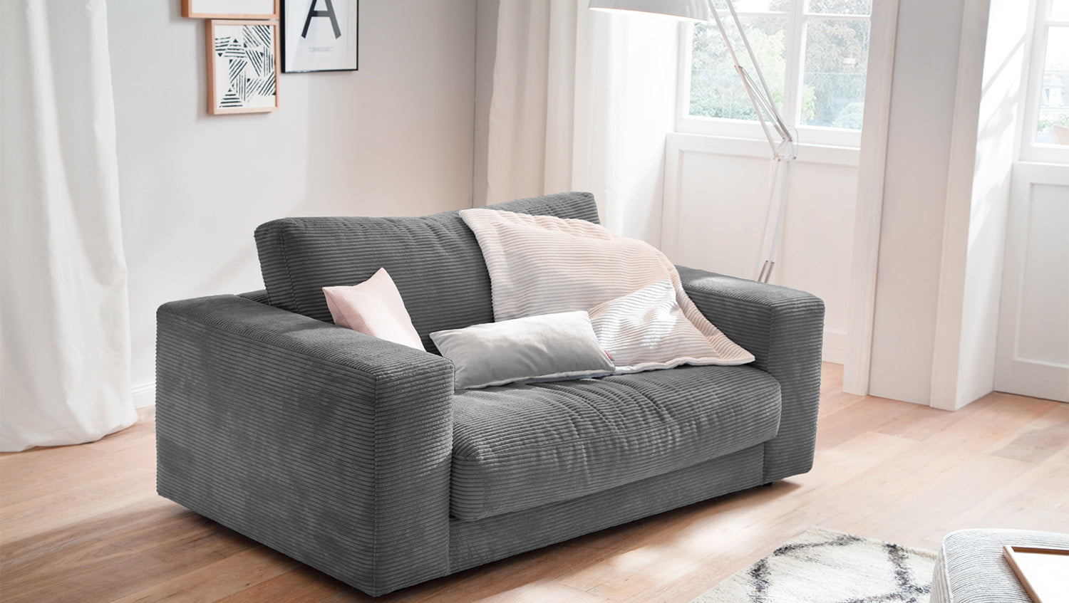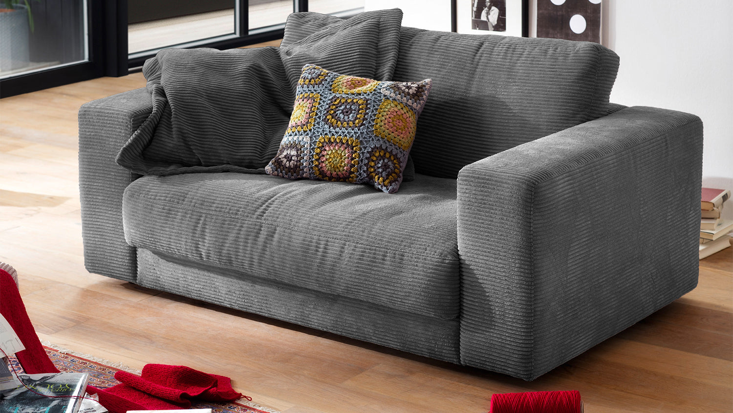 KAWOLA Doppelsessel MADELINE Loveseat Cord grau