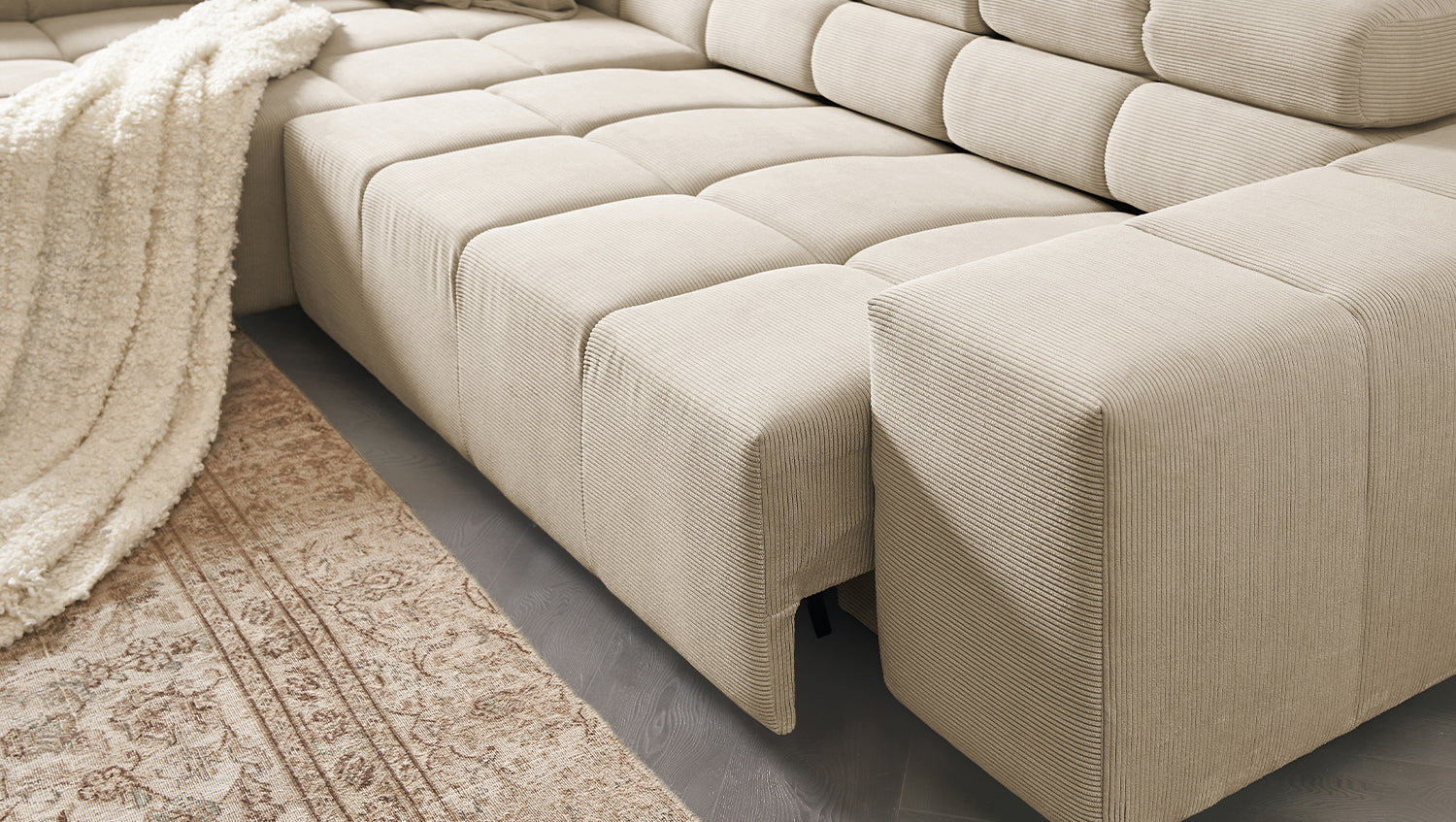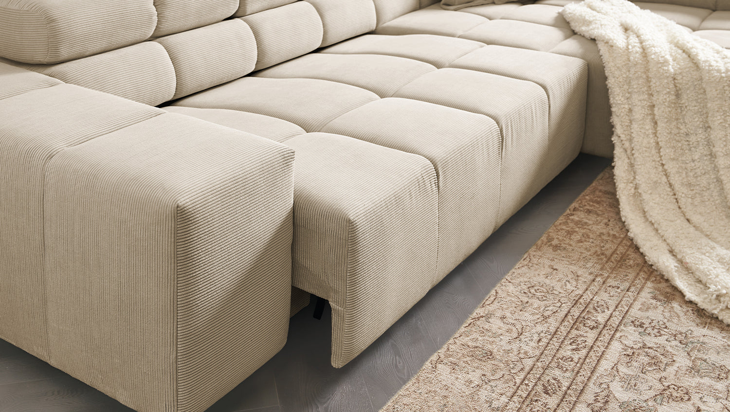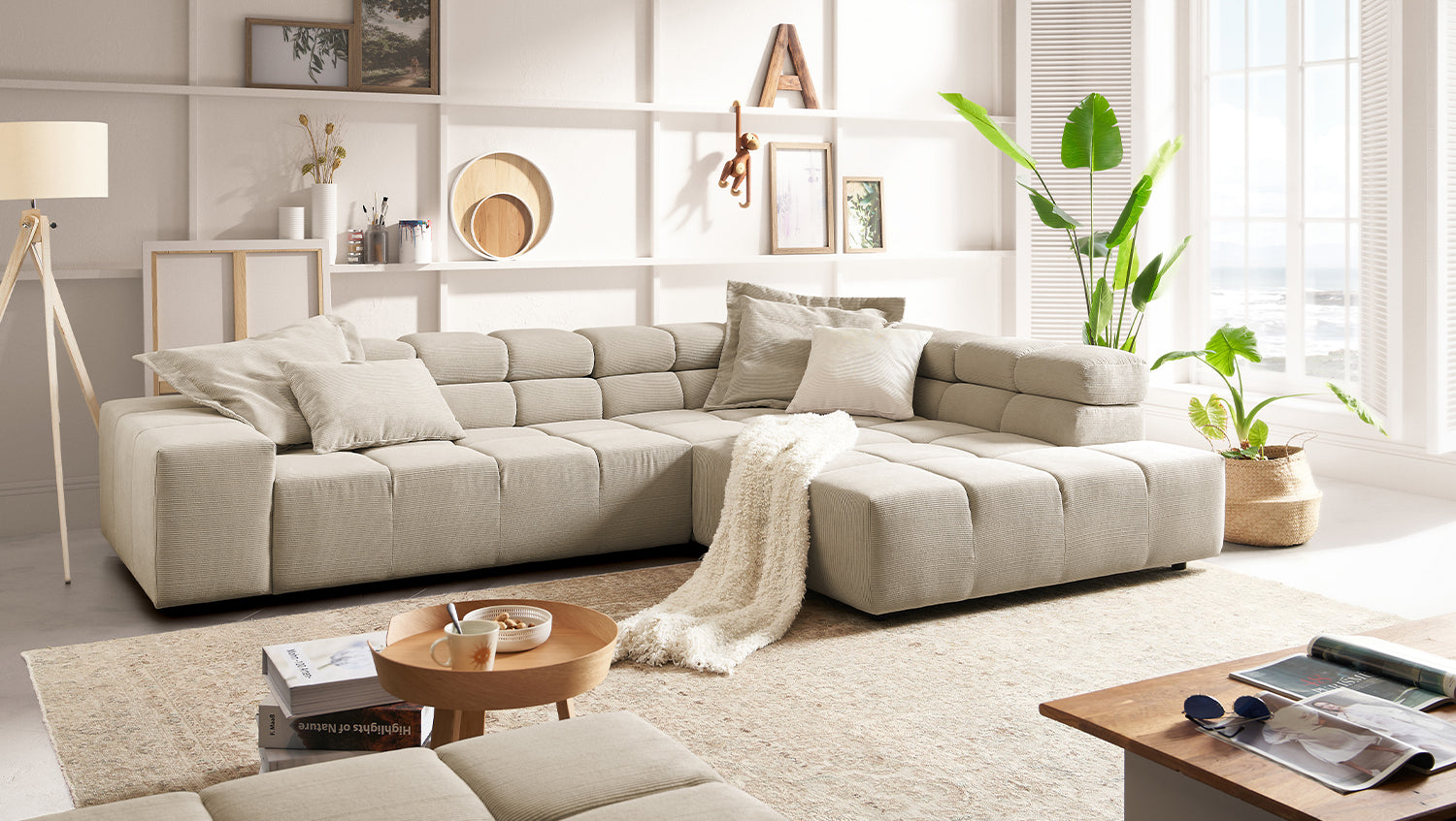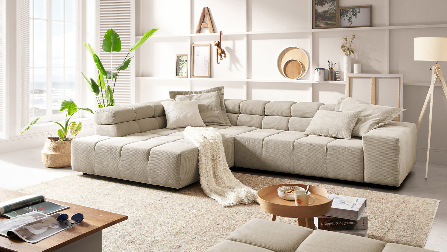 KAWOLA Sofa NEVADA Ecksofa Feincord beige