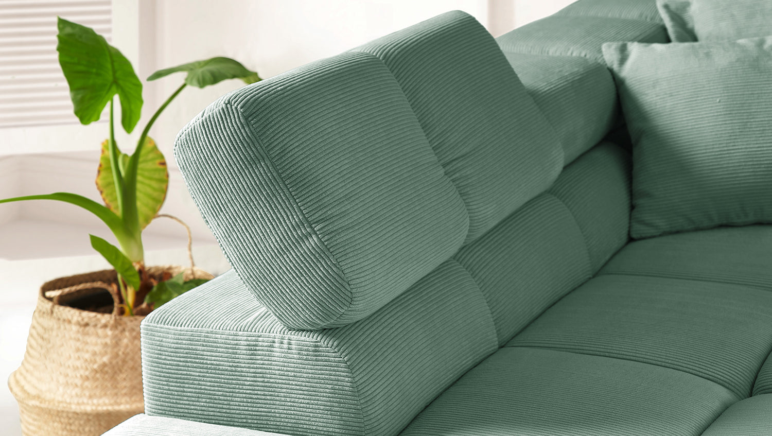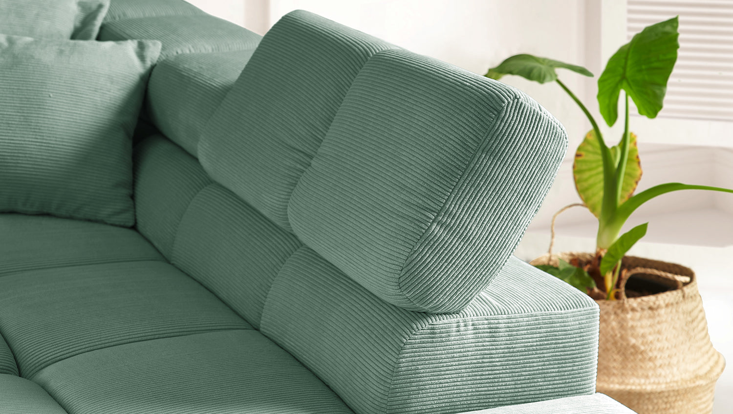 Das KAWOLA Ecksofa NEVADA verbindet moderne Designwelten mit zeitloser Eleganz und fügt sich nahtlos in jedes Interieur ein. Seine kubische Form und die unaufdringlichen Gleitfüße verleihen dem Sofa eine gewisse Leichtigkeit, die durch die quadratischen Absteppungen noch unterstrichen wird. Die Kopfstützen können ganz nach den individuellen Sitzvorlieben entweder hoch- oder heruntergeklappt werden. Die komplexe, 3-stufige Polsterung garantiert außerdem höchsten Sitzkomfort. Selbstverständlich wurde das Sofa auch auf der Rückseite mit dem filigranen Feincord-Stoff bezogen, sodass es auch frei in den Raum gestellt eine gute Figur macht. Egal zu welcher Gelegenheit - auf dem Sofa NEVADA findet jeder ein Plätzchen zum Entspannen!