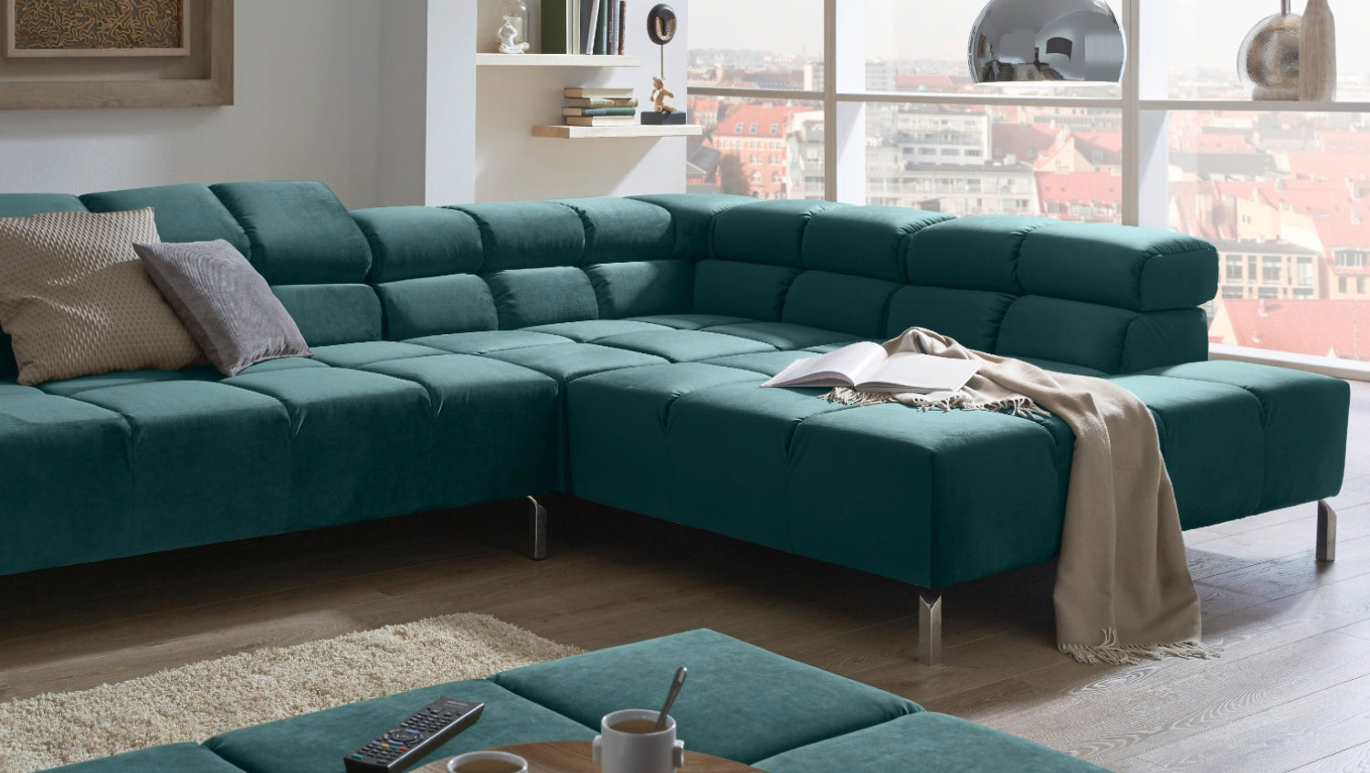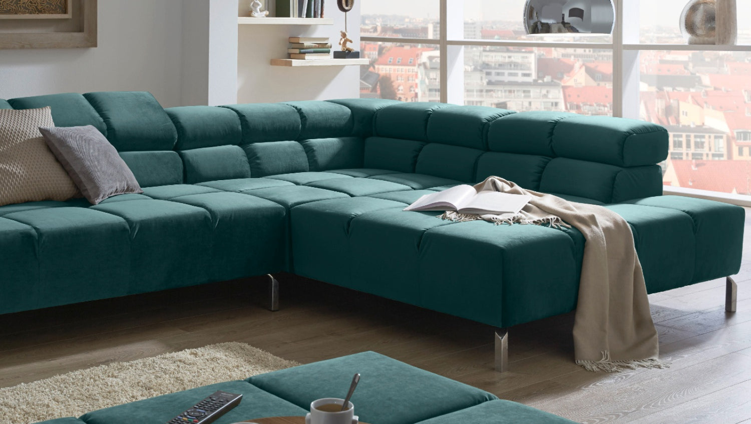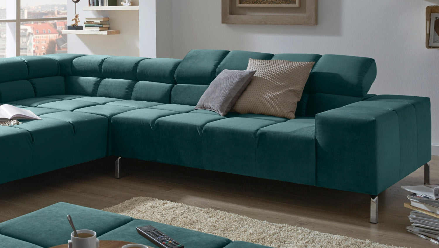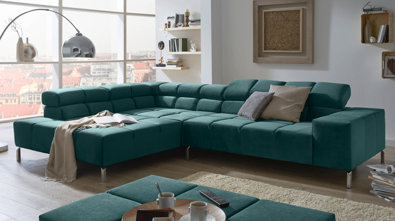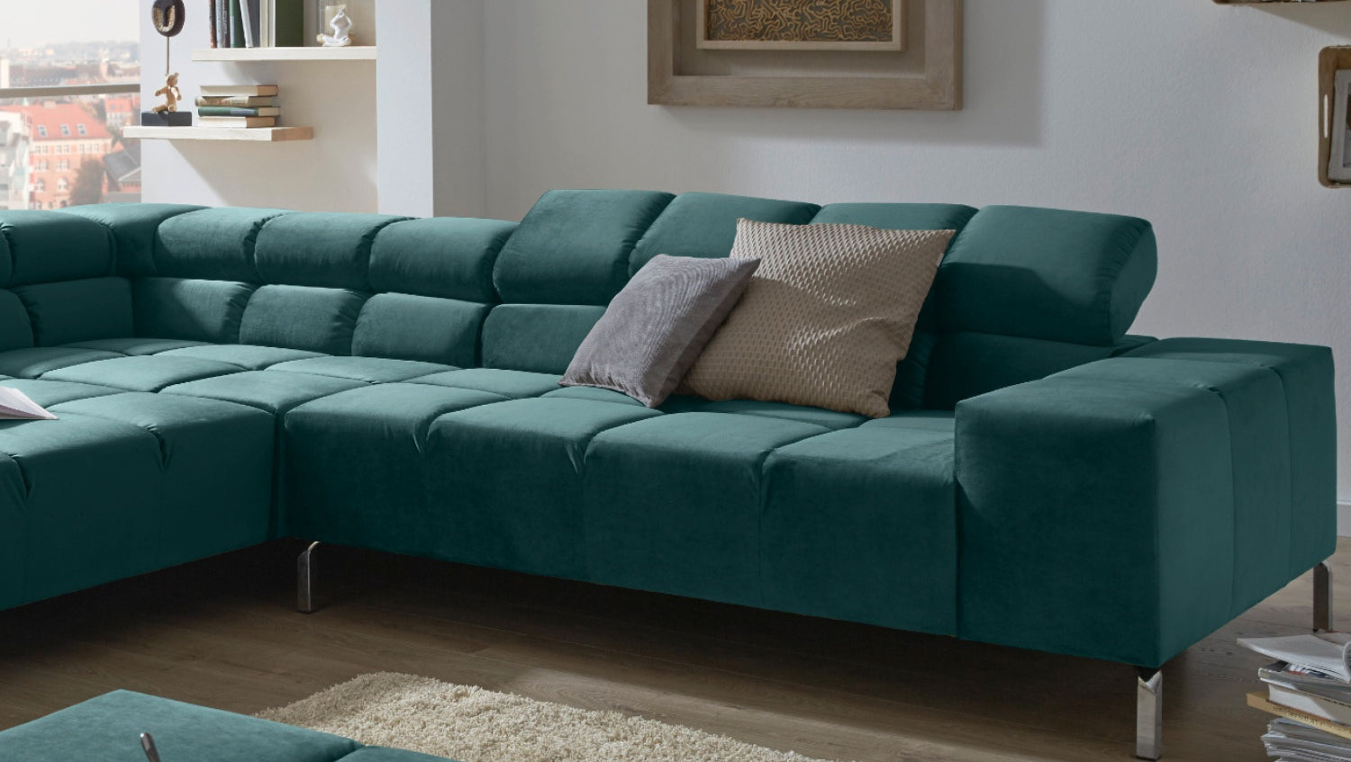 KAWOLA Sofa NELSON Ecksofa Velvet smaragd