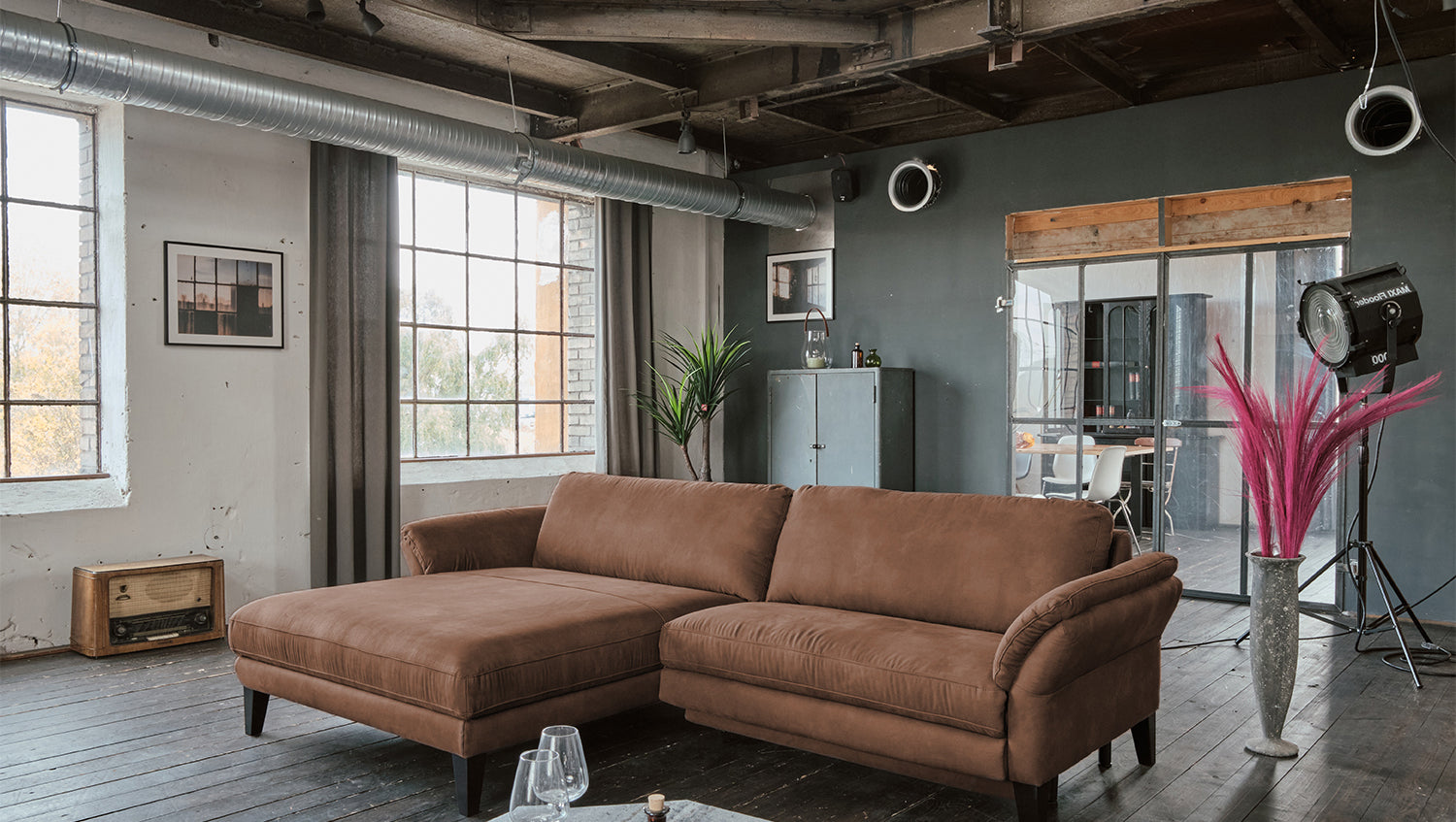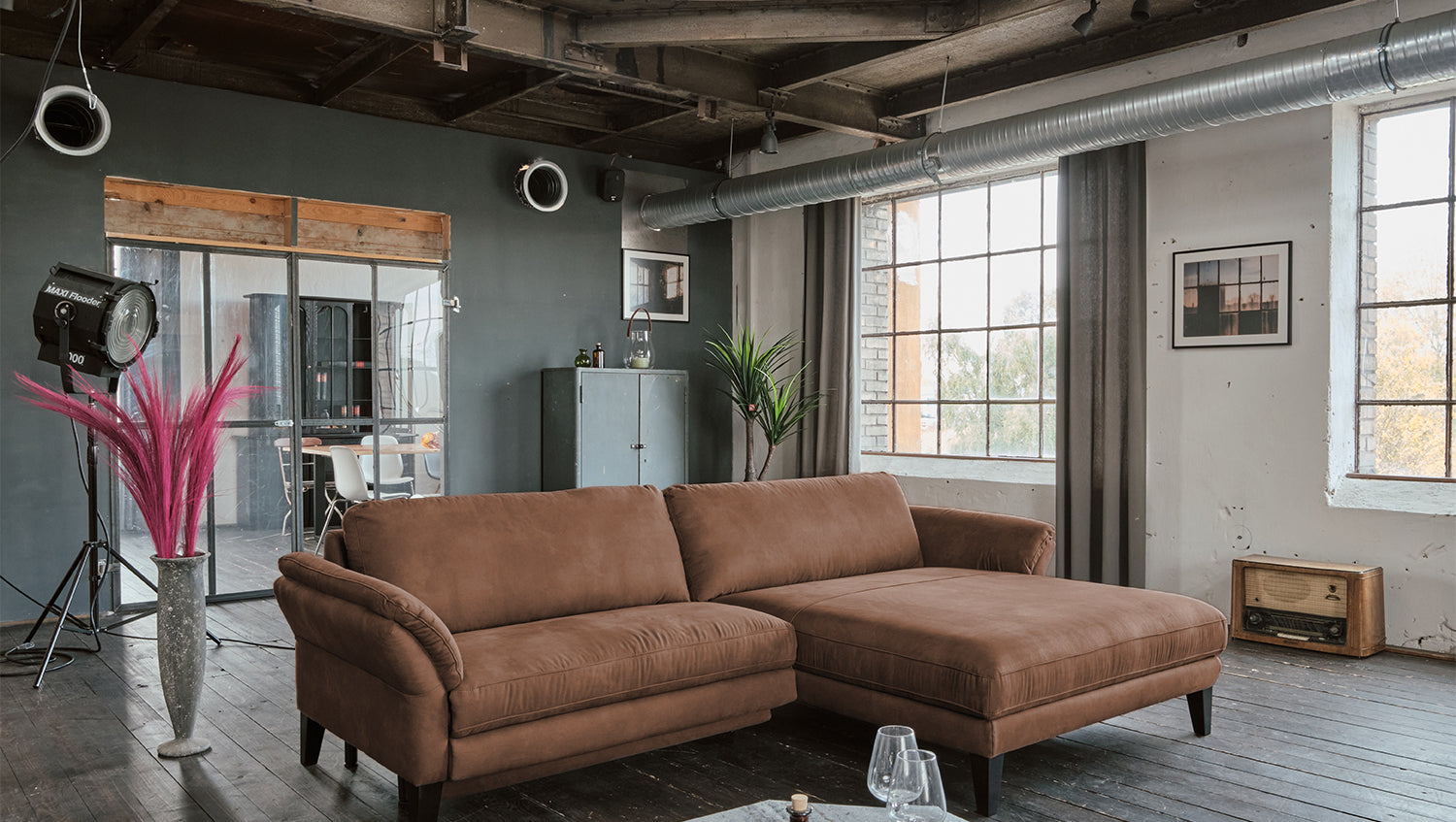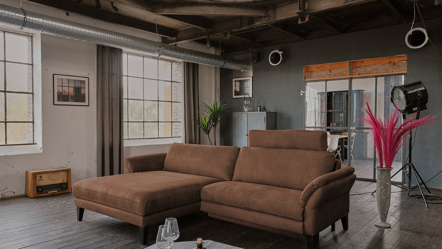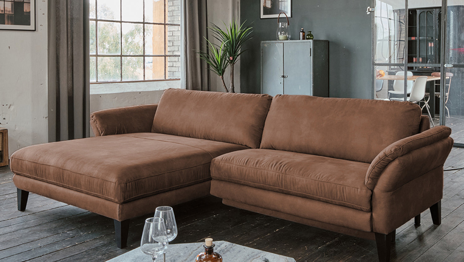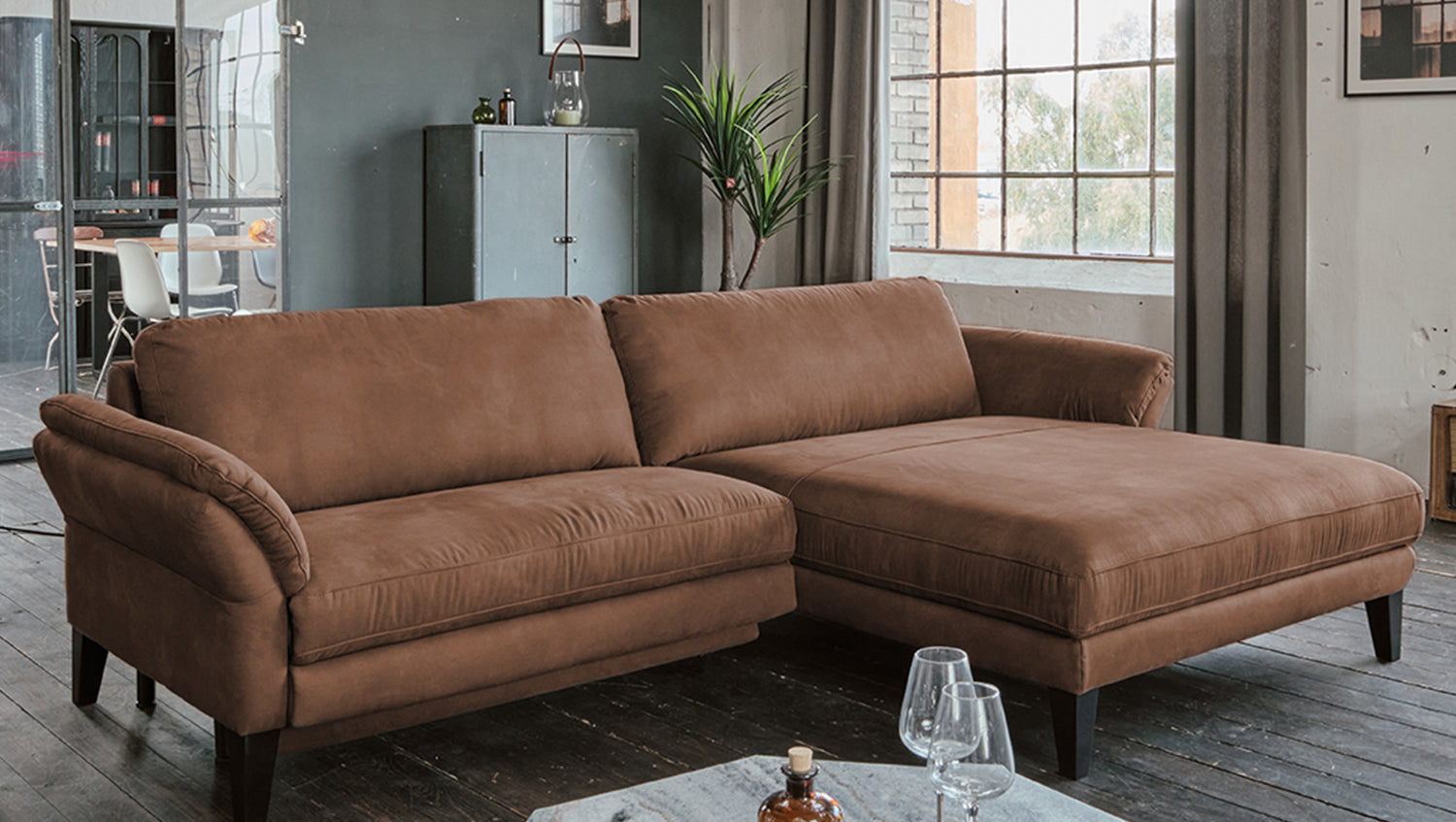 KAWOLA Sofa MALTA Ecksofa Stoff braun