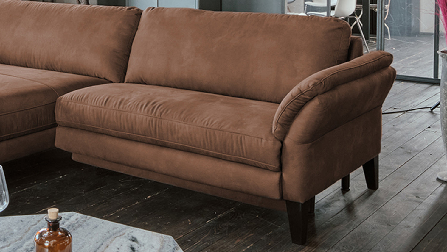 Das KAWOLA Ecksofa MALTA überzeugt durch seinen zeitlosen Look. Zudem wartet das Möbelstück mit tollen Funktionen auf. Die Armlehnen des Sofas sind nach außen hin klappbar und die Kopfstütze in Kissenoptik kann nach Bedarf verstellt werden. Das Gestell besteht aus verleimtem Massivholz, die Sitz- und Lehnflächen sind durch ihren vielschichtigen Aufbau überaus komfortabel. Der Bezug aus hochwertigem Stoff ist äußerst pflegeleicht und verleiht dem Sofa eine klassische Eleganz. Die schwarz lackierten Holzfüße bilden dazu einen reizvollen Kontrast. Das Ecksofa MALTA fügt sich nahtlos in jede Umgebung ein und macht überall eine gute Figur!