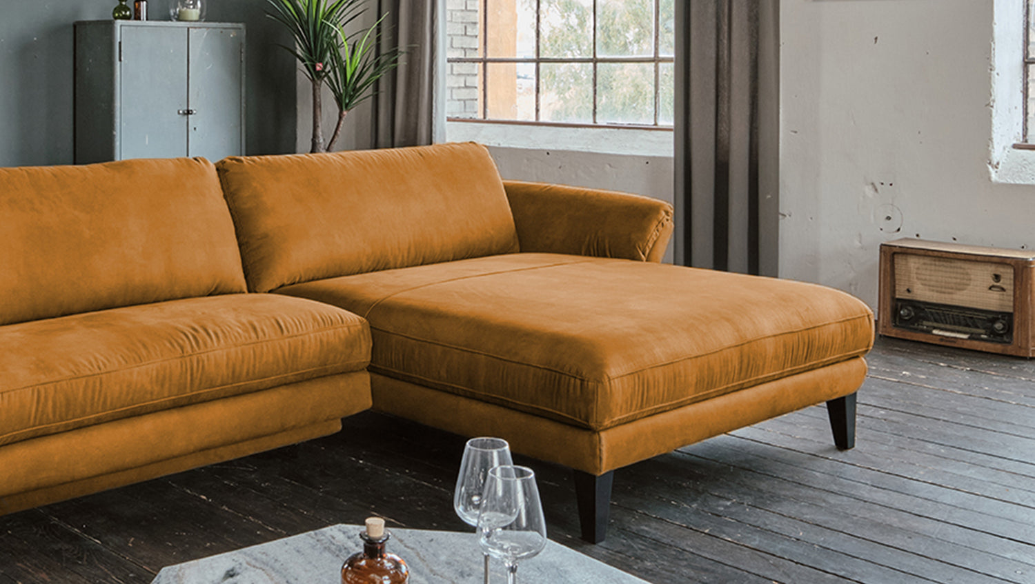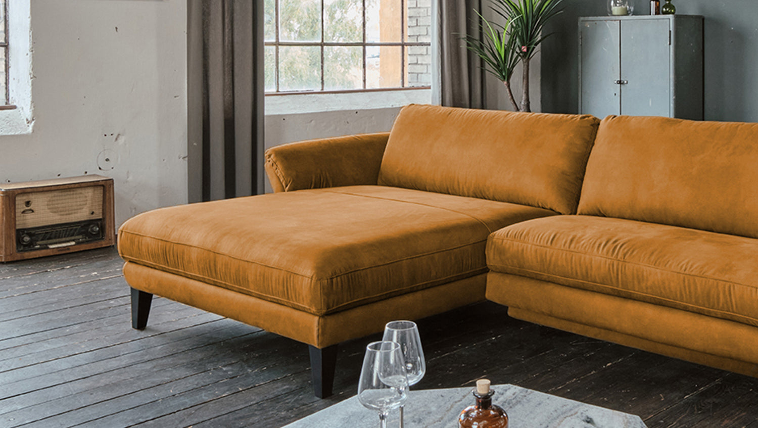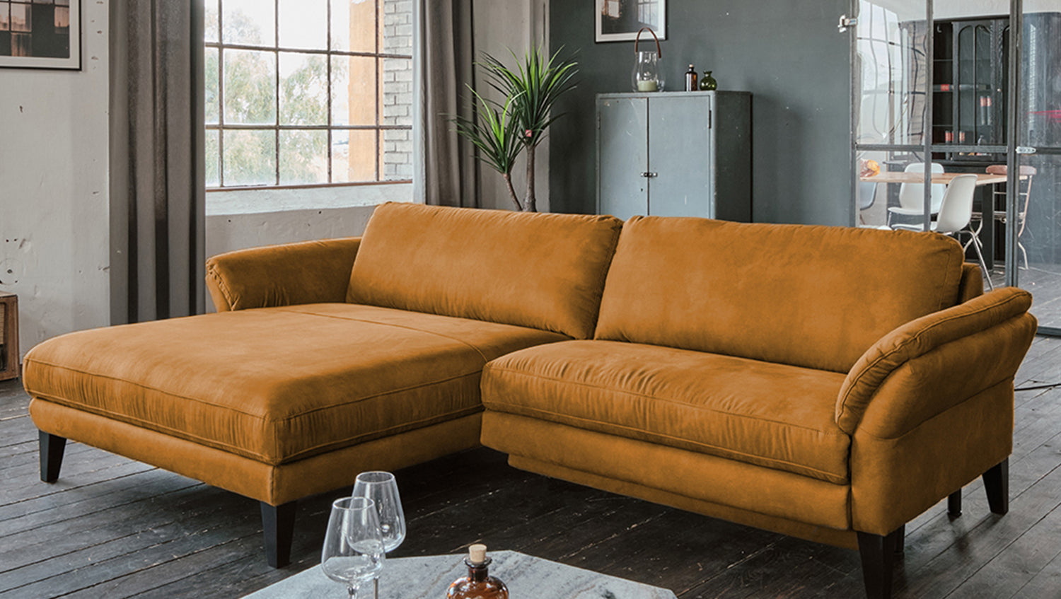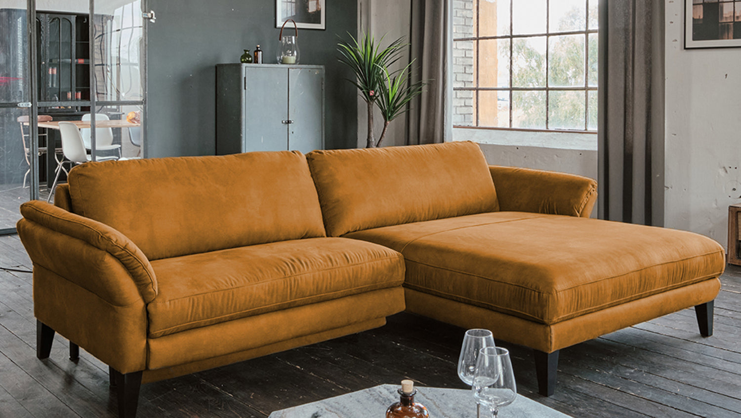KAWOLA Sofa MALTA Ecksofa Stoff cognac