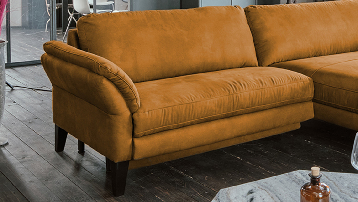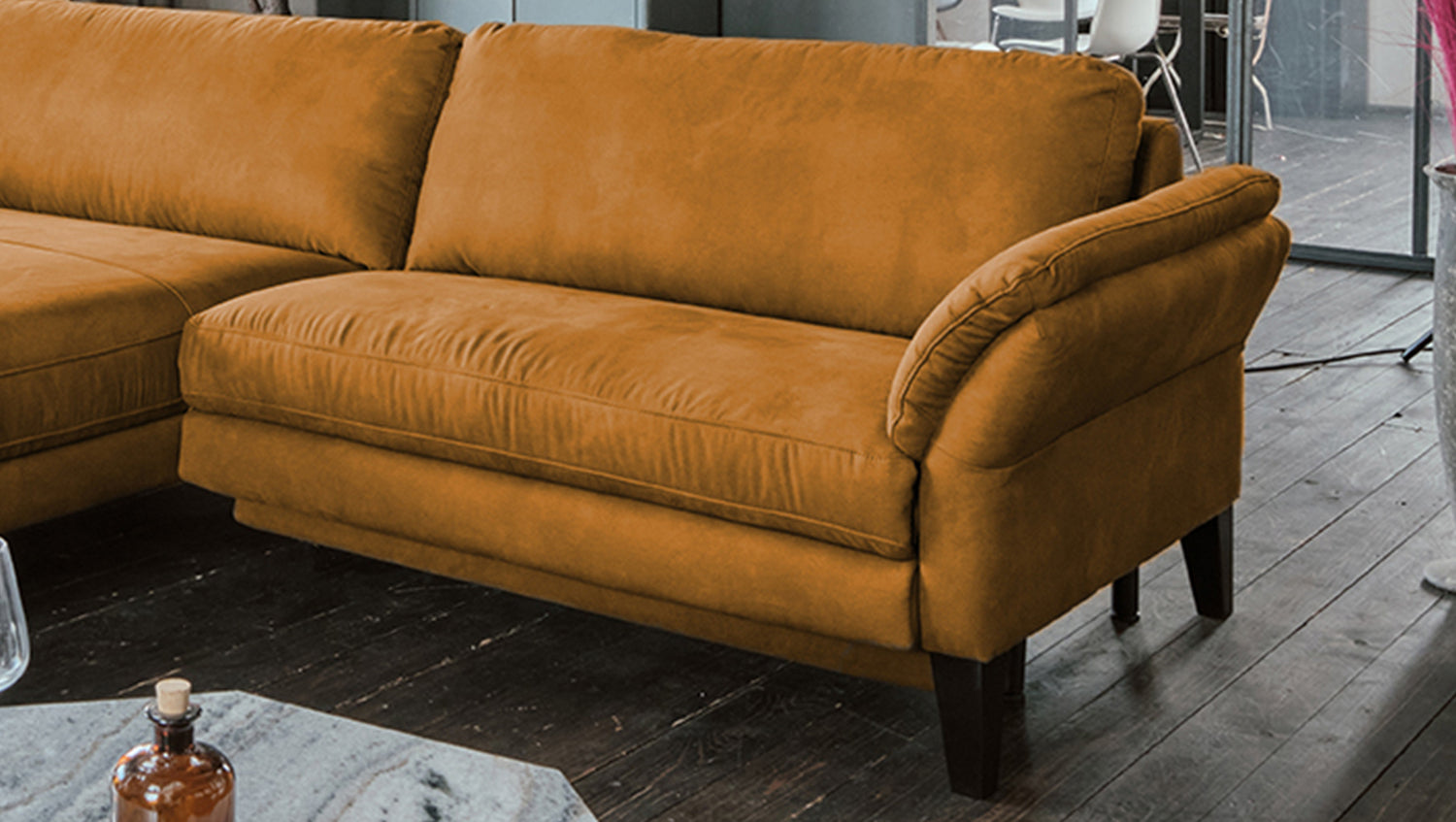Das KAWOLA Ecksofa MALTA überzeugt durch seinen zeitlosen Look. Zudem wartet das Möbelstück mit tollen Funktionen auf. Die Armlehnen des Sofas sind nach außen hin klappbar und die Kopfstütze in Kissenoptik kann nach Bedarf verstellt werden. Das Gestell besteht aus verleimtem Massivholz, die Sitz- und Lehnflächen sind durch ihren vielschichtigen Aufbau überaus komfortabel. Der Bezug aus hochwertigem Stoff ist äußerst pflegeleicht und verleiht dem Sofa eine klassische Eleganz. Die schwarz lackierten Holzfüße bilden dazu einen reizvollen Kontrast. Das Ecksofa MALTA fügt sich nahtlos in jede Umgebung ein und macht überall eine gute Figur!