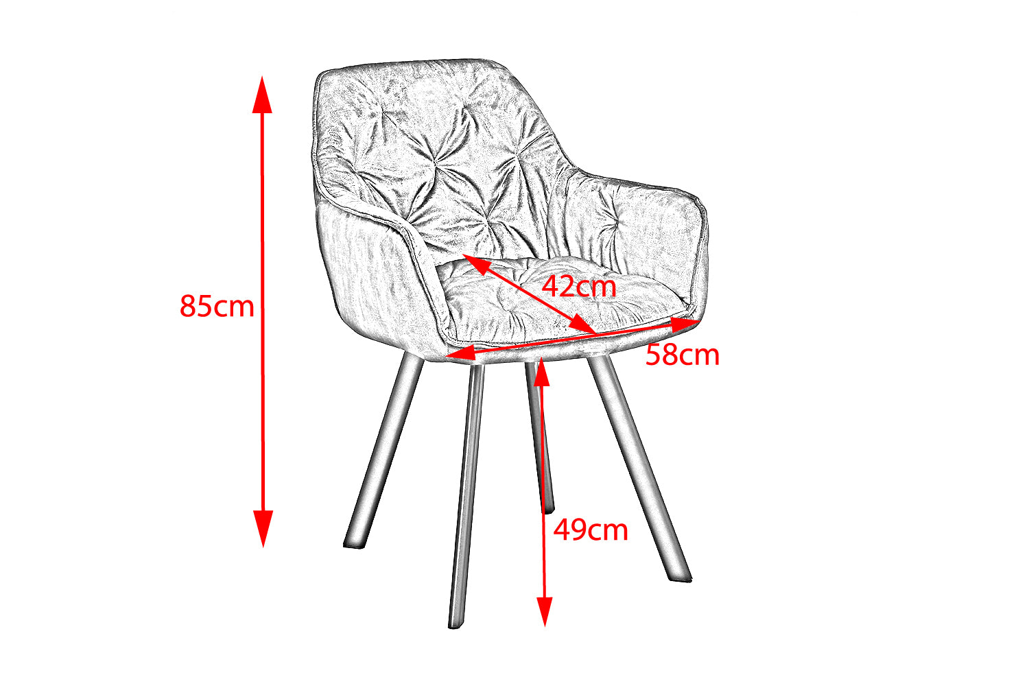 Der Stuhl XINA vereint industrielles und modernes Wohndesign. Hier können Sie sich bequem zurücklehnen und stilvoll speisen. Der Bezugsstoff aus Velvet ist sehr hochwertig verarbeitet und die aufwendige Absteppung verleiht dem Stuhl seinen besonderen Look. Ob im Büro oder im Esszimmer - der Stuhl XINA eignet sich aufgrund seines modernen Designs für praktisch jeden Wohnbereich.