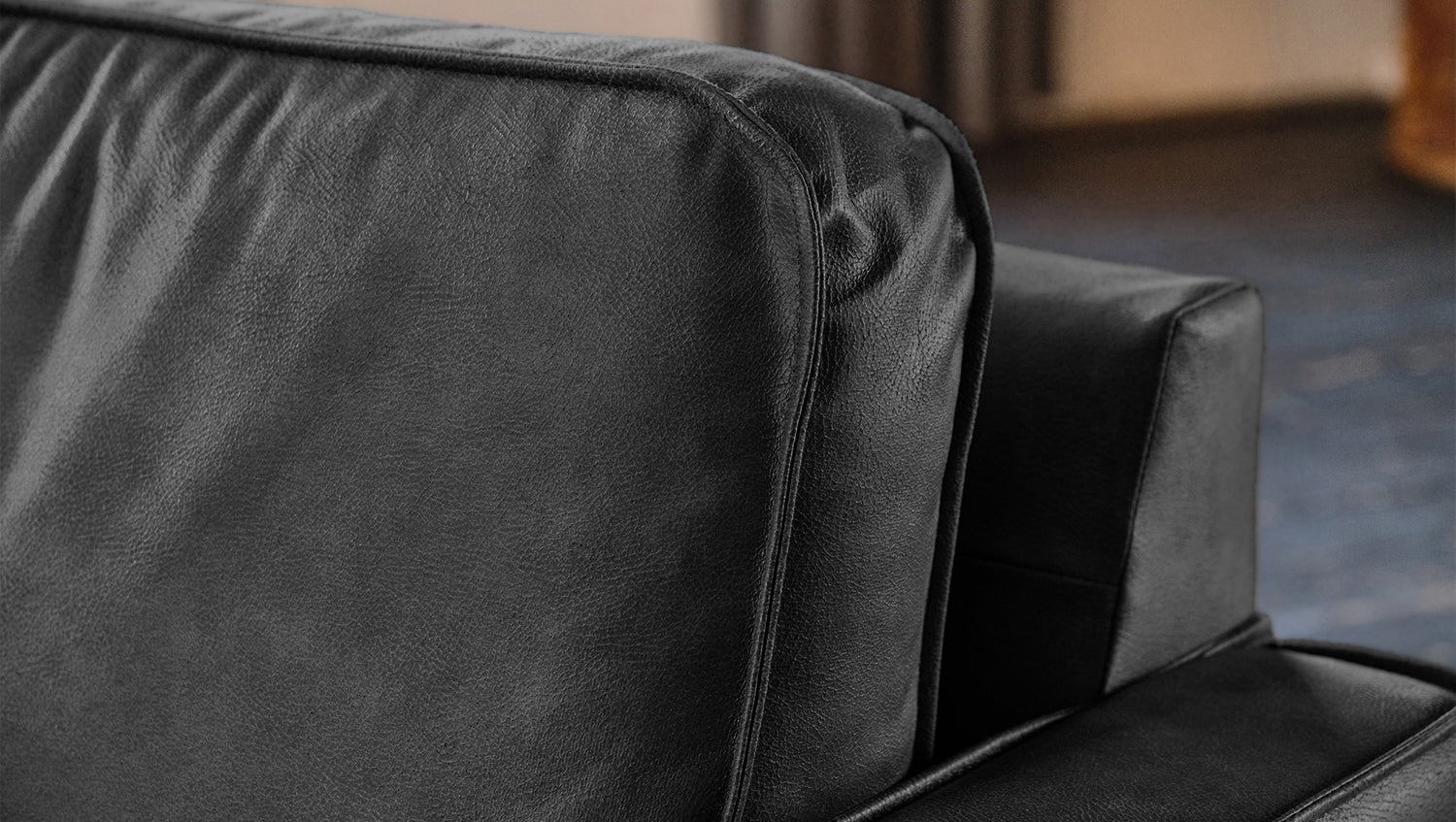 Das Sofa VILNIUS von KAWOLA bietet alle Stärken eines klassischen Ledersofas und noch einiges darüber hinaus. Der Bezug aus Lederfaserstoff ist eine innovative Alternative zu Echtleder: Er wird aus recycelten Lederfasern gefertigt, die mit natürlichen Bindemitteln und Textilfasern kombiniert werden. Das Ergebnis ist ein hochwertiges, strapazierfähiges Material mit authentischer Lederoptik und angenehm weicher Haptik. Lederfaserstoff ist pflegeleicht, formstabil und gleichzeitig atmungsaktiv.