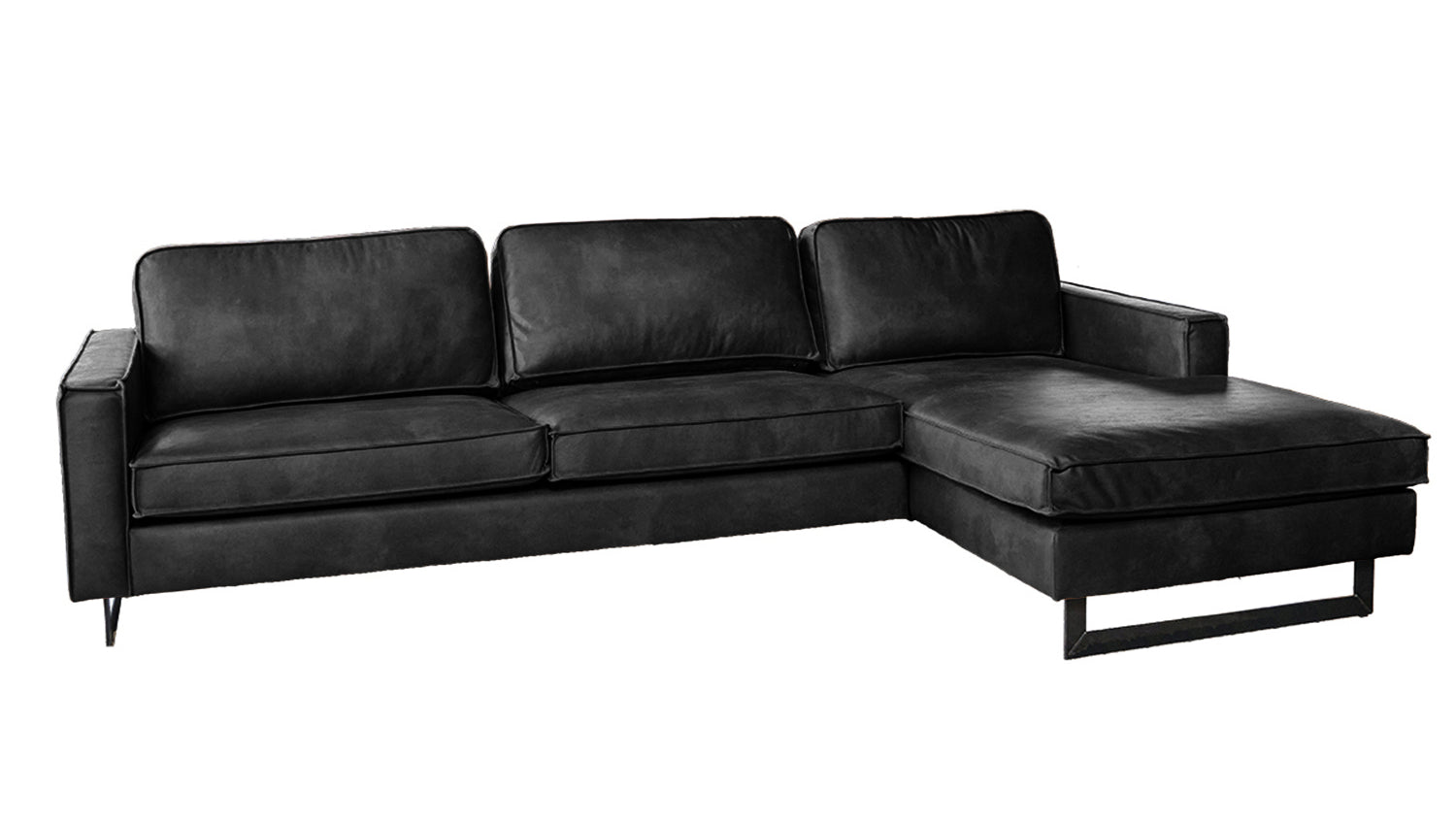 KAWOLA Ecksofa VILNIUS 3-Sitzer mit Longchair rechts Lederfaserstoff schwarz