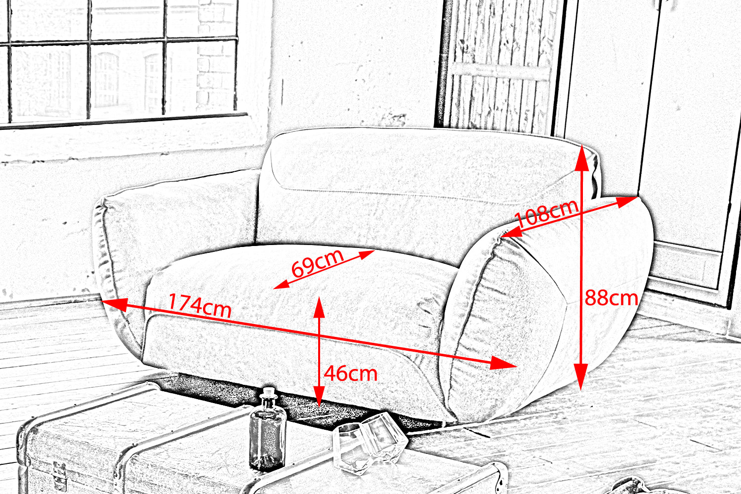 • Armlehne: Höhe 65 cm, Breite 34 cm