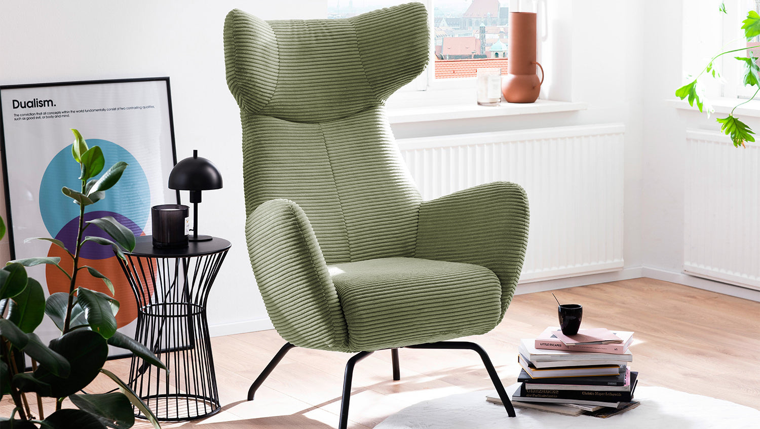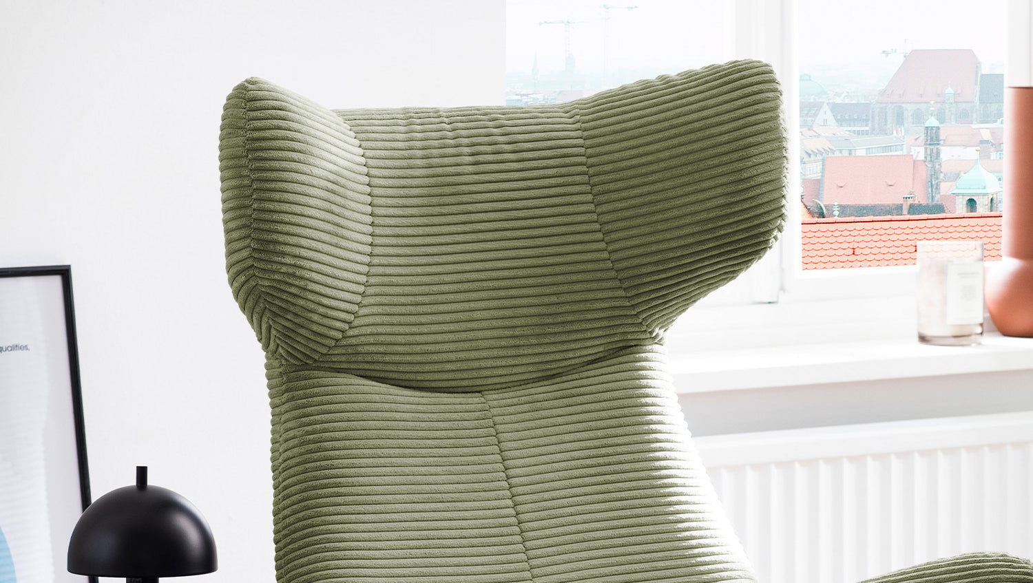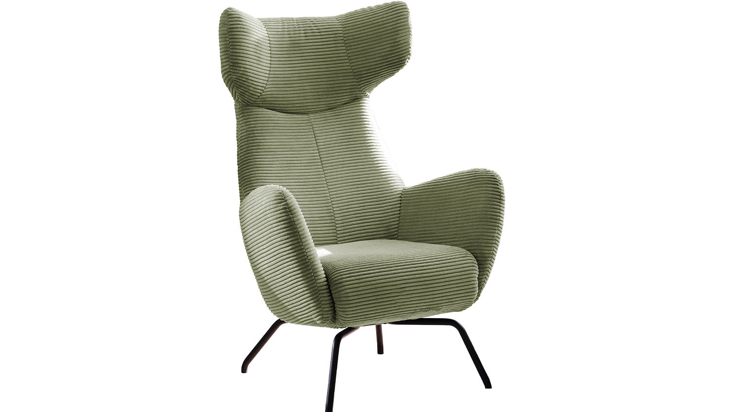 KAWOLA Sessel LOTTE Ohrensessel Cord olivgrün