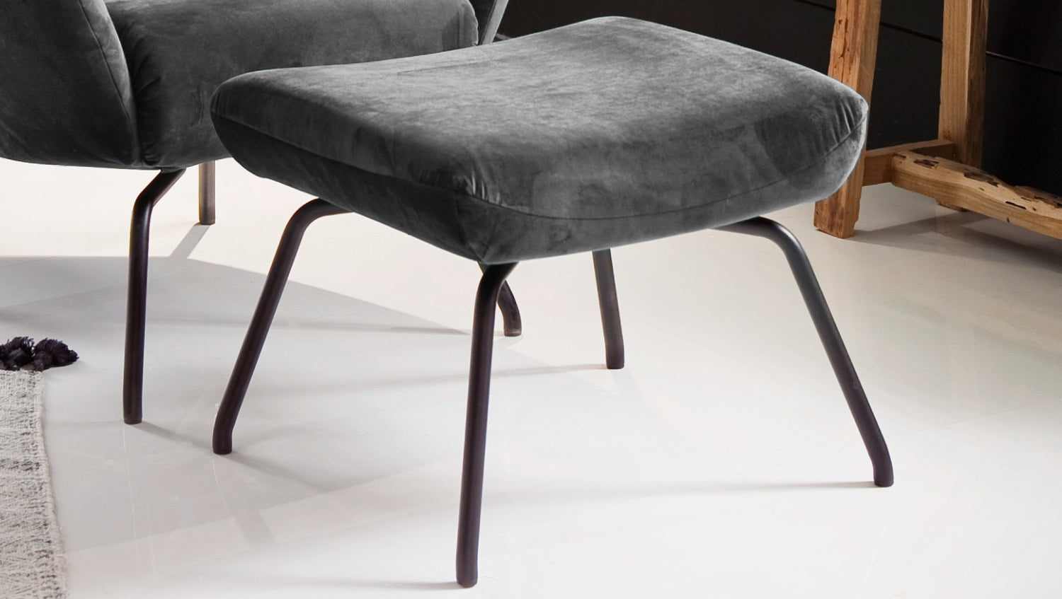 KAWOLA Hocker LOTTE Polsterhocker velvet stone