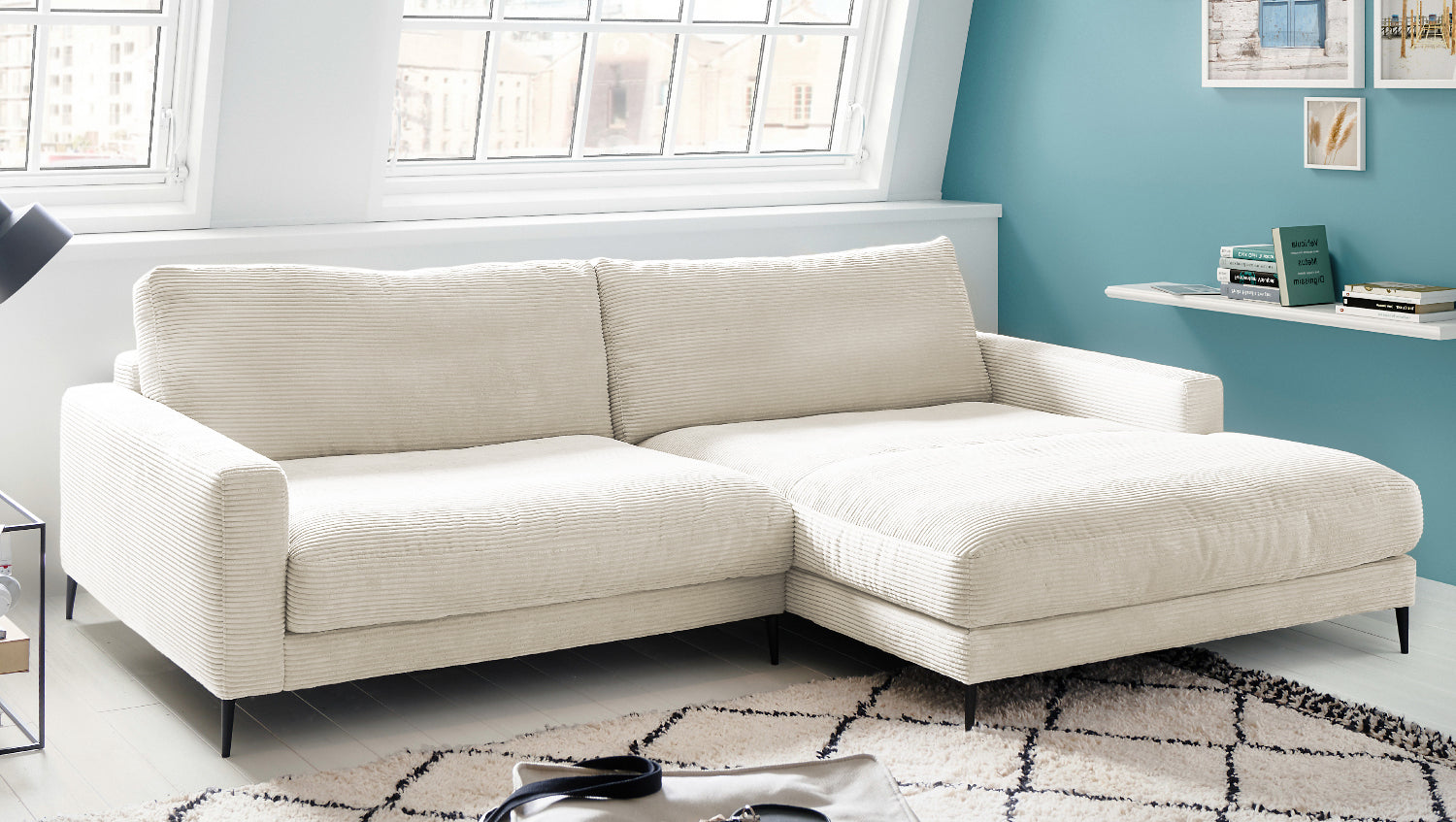 KAWOLA Ecksofa CARA Sofa Cord cremeweiß