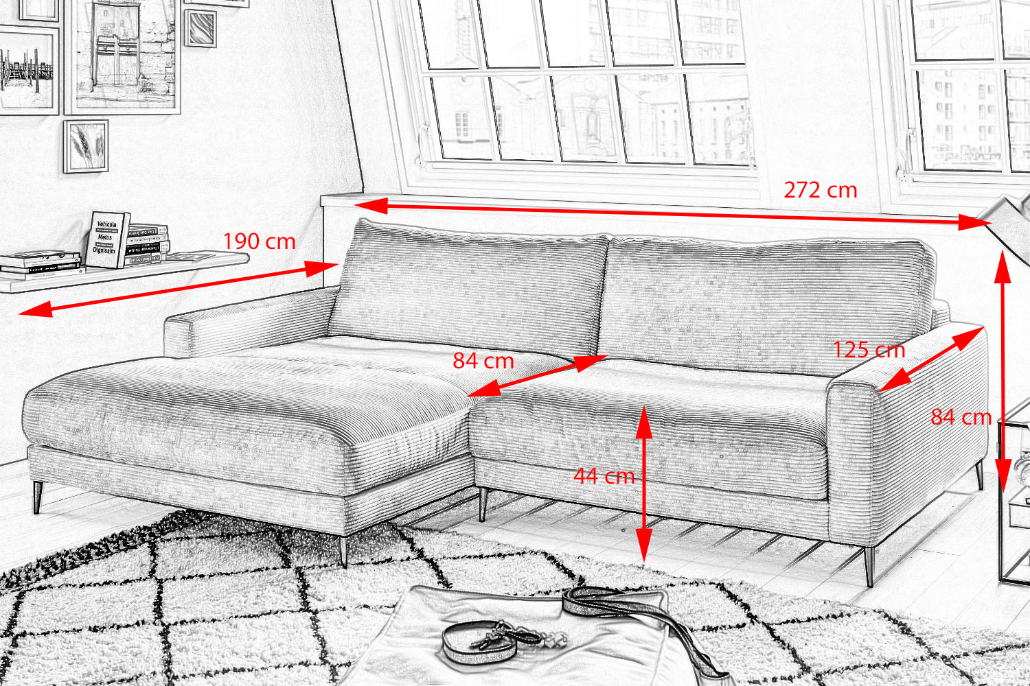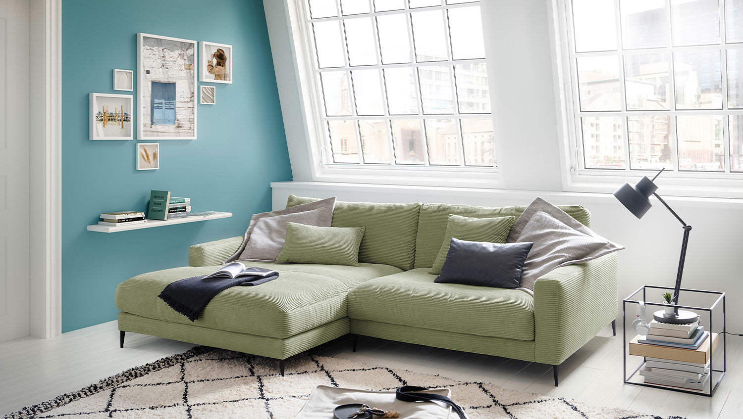 Das KAWOLA Ecksofa CARA verbindet klassisches Design mit moderner Sachlichkeit und fügt sich nahtlos in jedes Interieur ein. Seine weichen Formen und der Bezug aus angesagtem Cord-Stoff verleihen dem Sofa eine zeitlose Eleganz. Die Polsterung passt sich der Körperform an; Sitzabdrücke sowie Wellenbildung der Bezüge sind warentypisch. Der Sitz besteht aus einer Unterfederung mit dauerelastischen Stahl-Wellenfedern und einer oberseitigen Abdeckung sowie losen Sitzkissen aus PUR-Schaum. Sitz und Rücken sind abgedeckt mit einem Inlett, welches befüllt ist mit hochwertigen Füllstoffen, die eine Beimischung von Federn enthalten. Um ein Stauchen des Füllmaterials zu verhindern, sollten die Rückenkissen nach Gebrauch aufgeschüttelt werden. Egal zu welcher Gelegenheit - auf dem Sofa CARA findet jeder ein Plätzchen zum Entspannen!