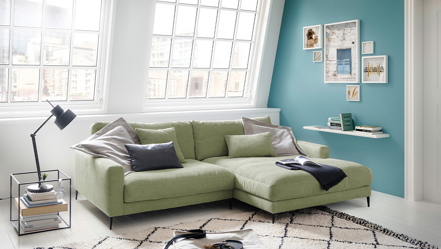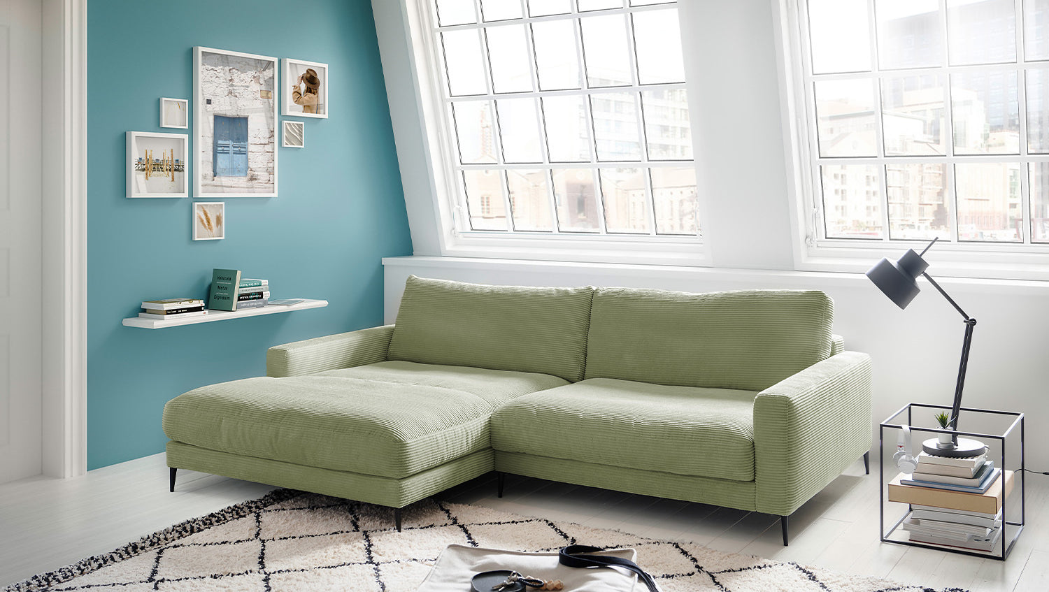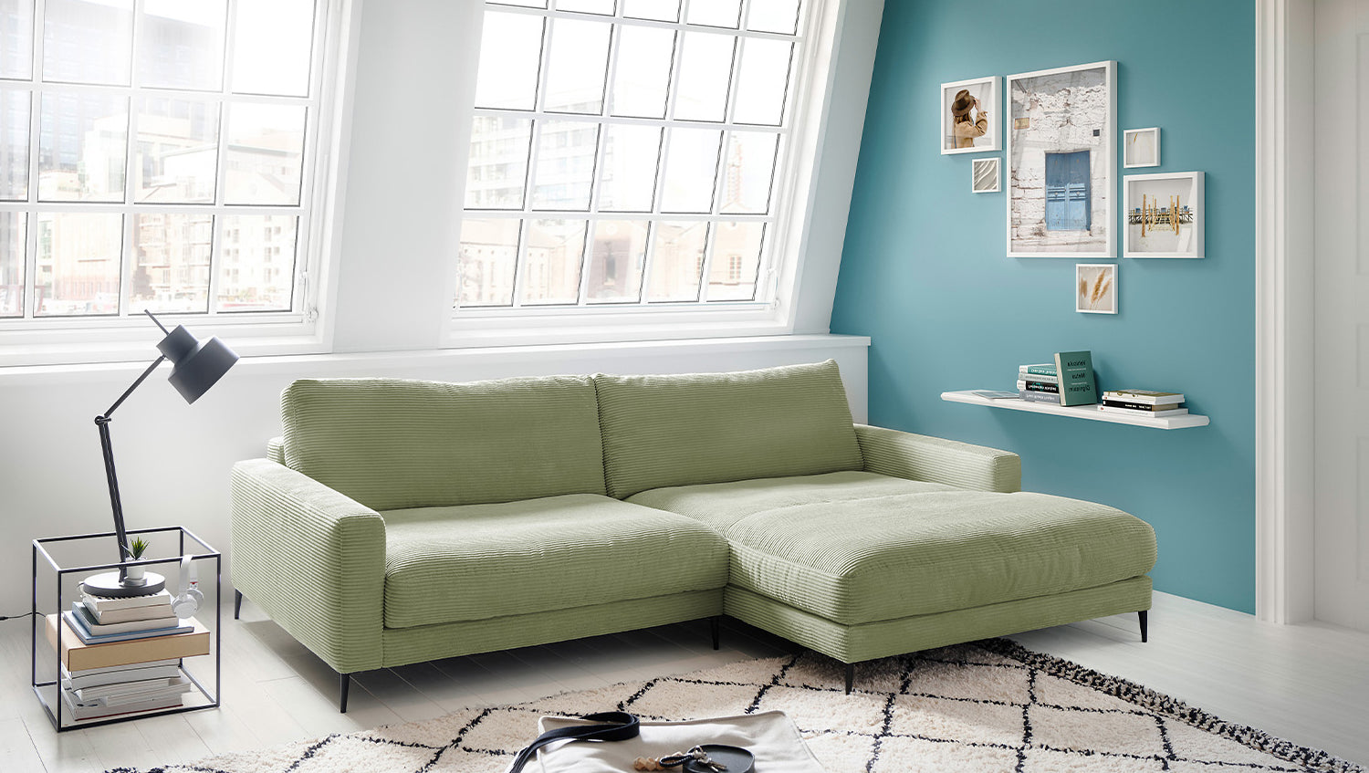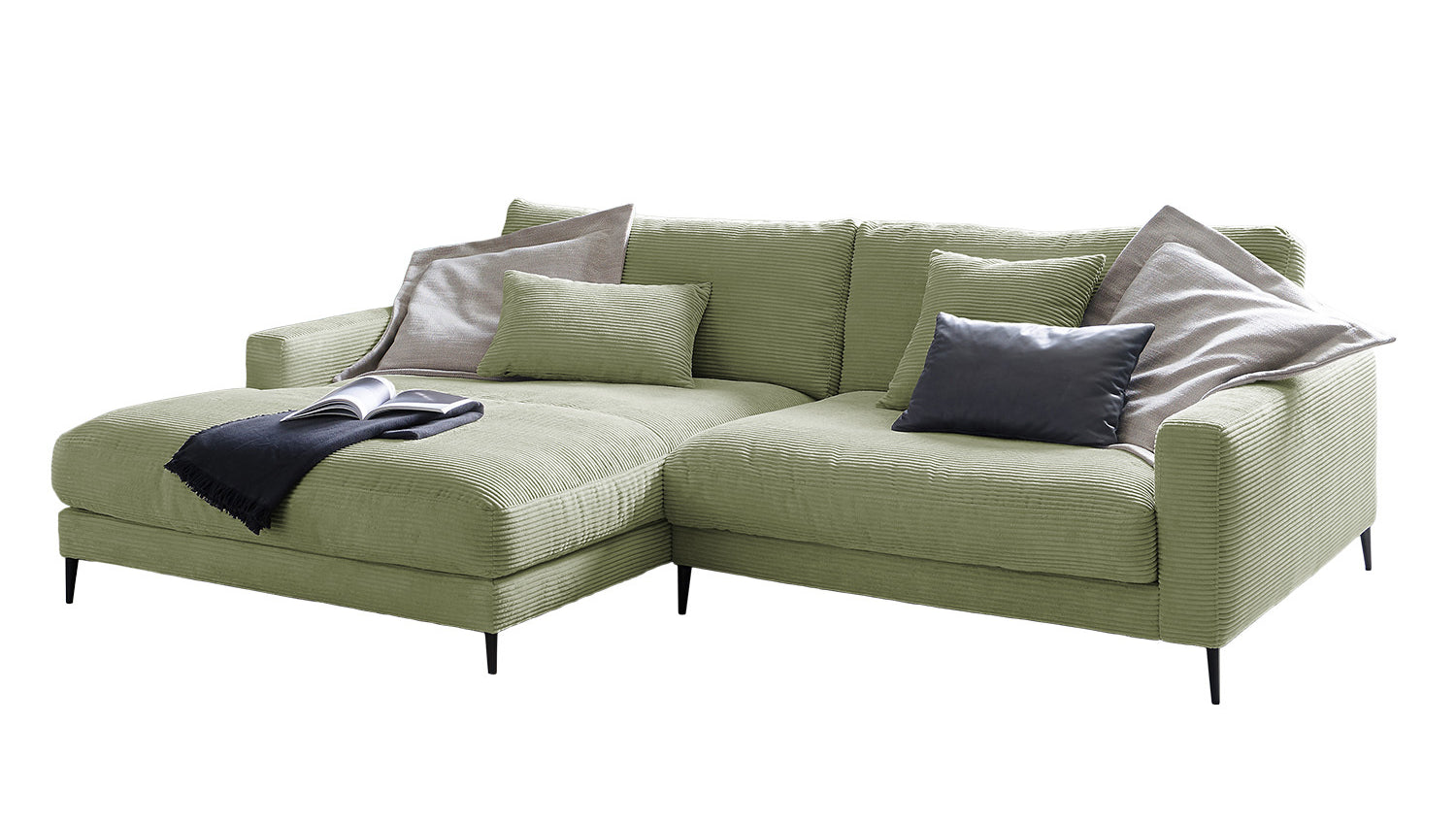KAWOLA Ecksofa CARA Sofa Cord olivgrün