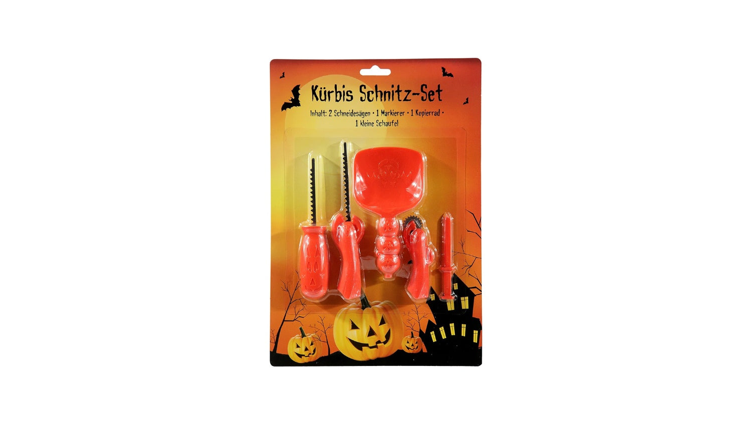 Mit dem 5-teiligen Kürbis Schnitz-Set PUMPKIN von KAWOLA sind Sie für Halloween bestens ausgestattet! Das Set enthält 1 Stecher, 1 Kürbislocher, 2 Sägen und 1 großen Kürbisschaber zum Aushöhlen. Mit dem Set ist das Aushöhlen und Schnitzen von Kürbissen kinderleicht. Die Utensilien sind passend in Kürbisdesign gehalten. Das Set ist spülmaschinengeeignet.