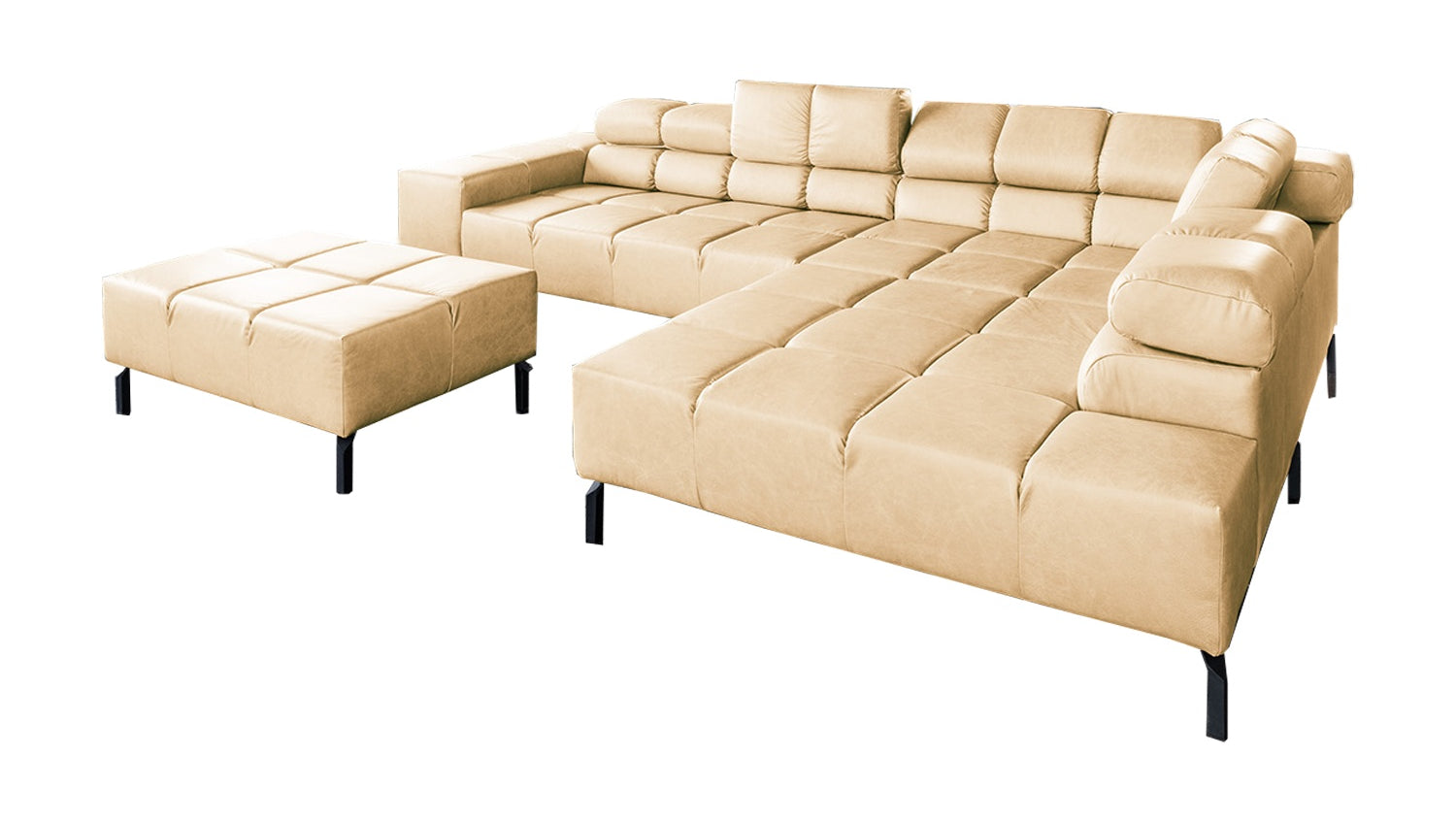 Das KAWOLA Ecksofa NELSON verbindet moderne Designwelten mit zeitloser Eleganz und fügt sich nahtlos in jedes Interieur ein. Der edle Bezug aus pigmentiertem Leder verleiht dem Sofa hochwertige Optik und ein angenehmes Sitzgefühl. Naturmerkmale (z.B. Narben, Insektenstiche), Struktur- und Farbabweichungen sind dabei unvermeidlich und warentypisch. Seine kubische Form und die hohen Metallfüße verleihen dem Sofa eine gewisse Leichtigkeit, die durch die quadratischen Absteppungen noch unterstrichen wird. Die Kopfstützen können ganz nach den individuellen Sitzvorlieben entweder hoch-oder heruntergeklappt werden. Die komplexe, 3-stufige Polsterung garantiert außerdem höchsten Sitzkomfort. Selbstverständlich wurde das Sofa auch auf der Rückseite mit dem hochwertigen Leder bezogen, sodass es auch frei in den Raum gestellt eine gute Figur macht. Egal zu welcher Gelegenheit - auf dem Sofa NELSON findet jeder ein Plätzchen zum Entspannen!