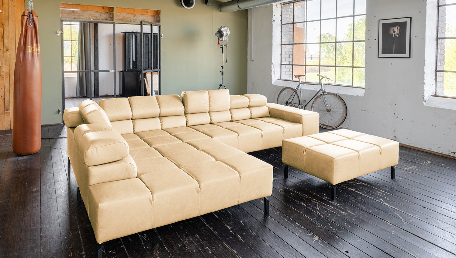 KAWOLA Sofa NELSON Ecksofa Leder beige
