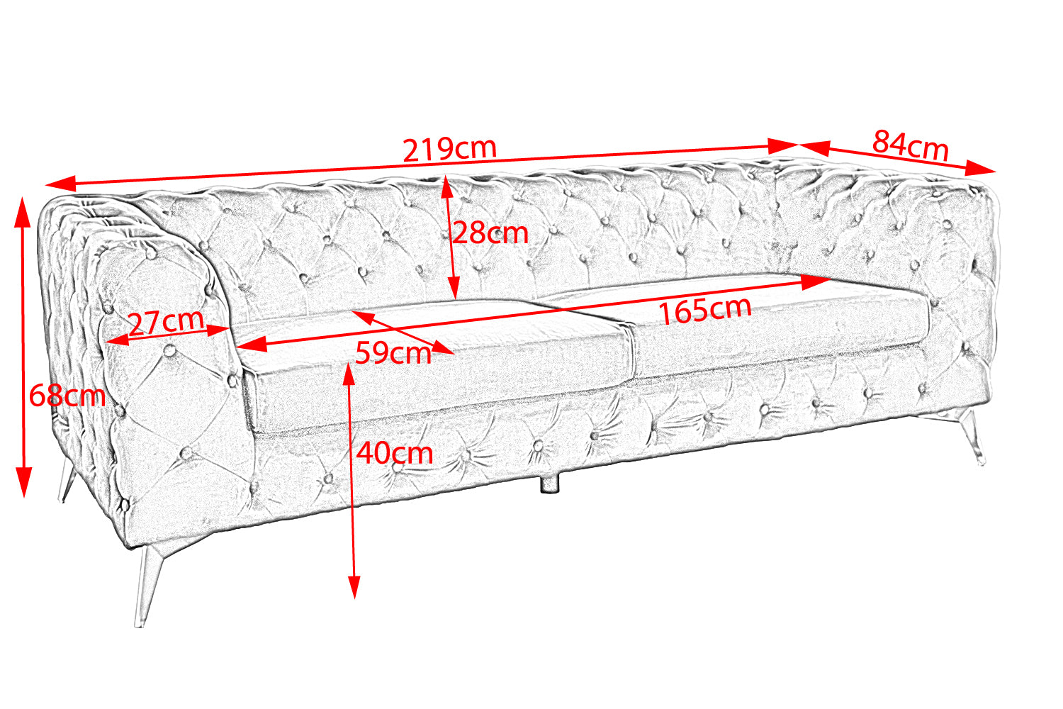 • Sitztiefe: 59/60 cm / Sitzhöhe: 40/41 cm (je nach Tuftung)