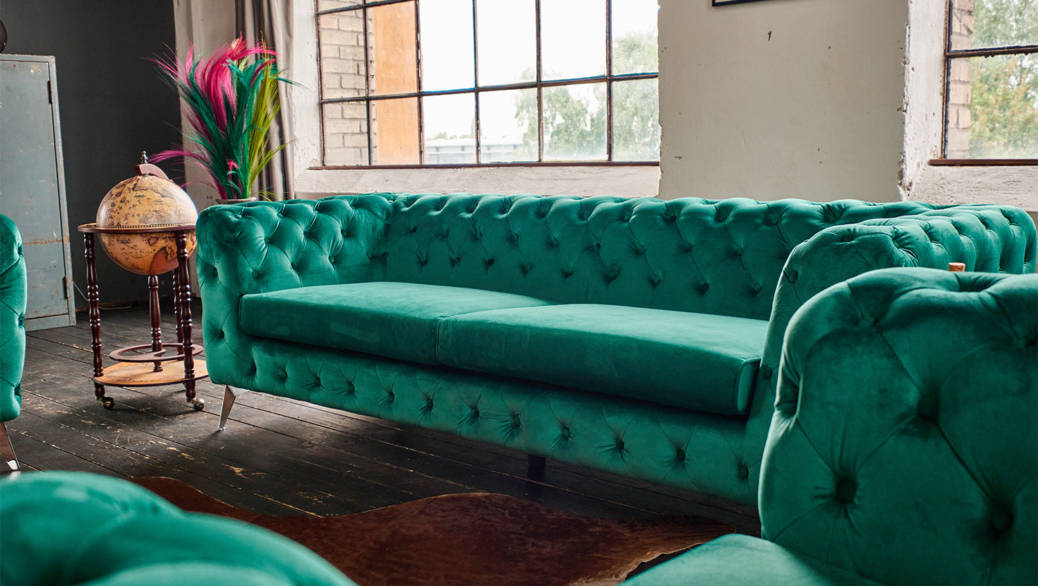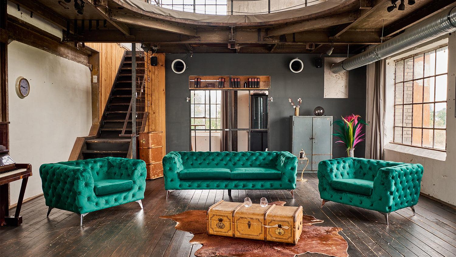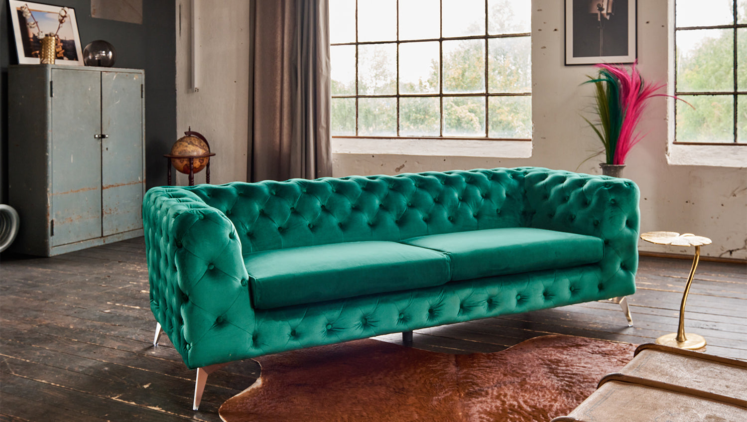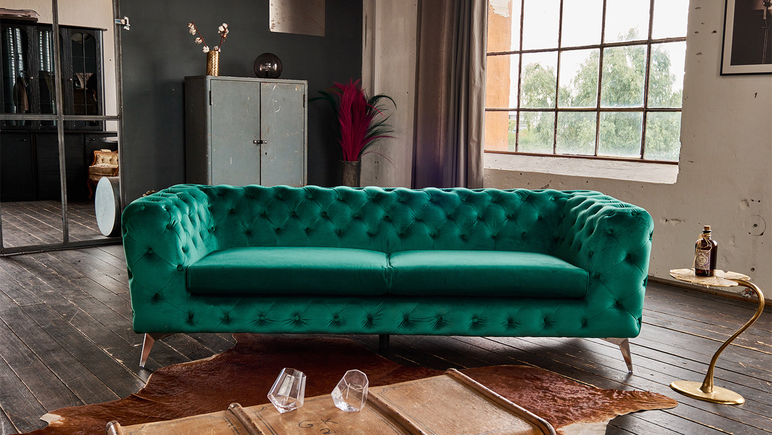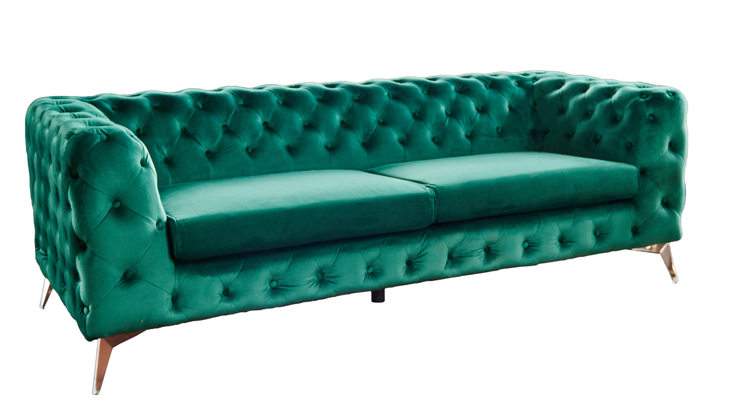KAWOLA Sofa NARLA Chesterfield 3-Sitzer Velvet grün