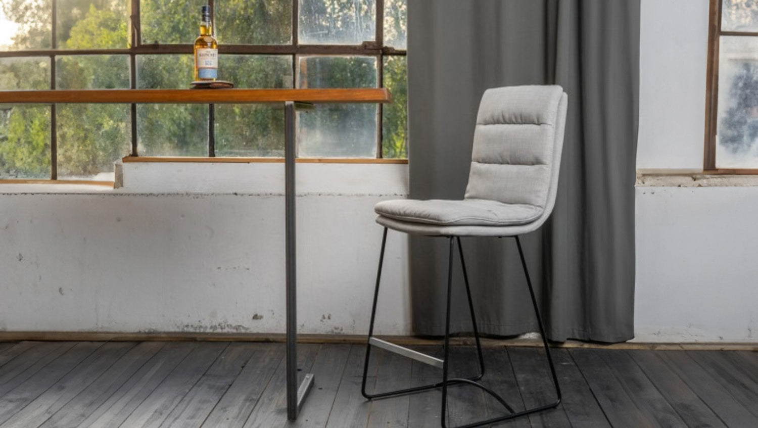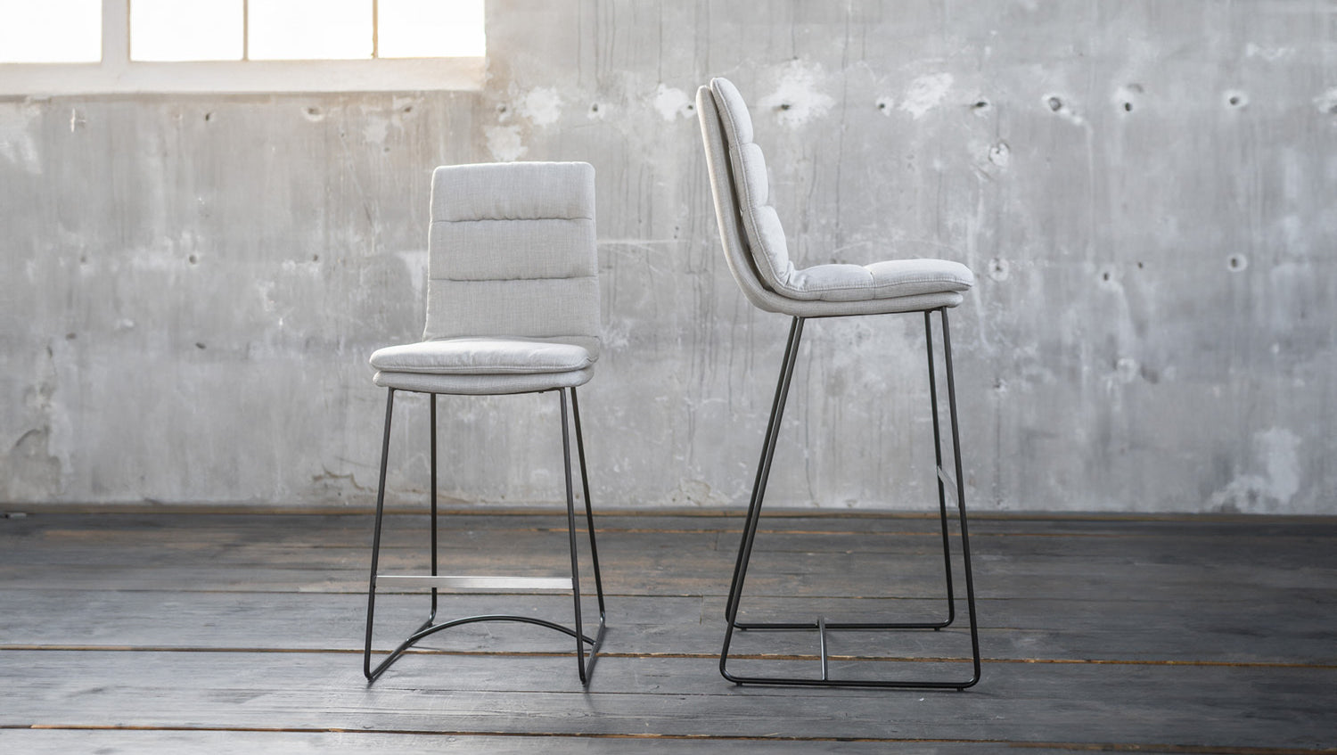 KAWOLA Thekenhocker Vince Thekenstuhl Stoff hellgrau B/H/T: 45x105x58cm