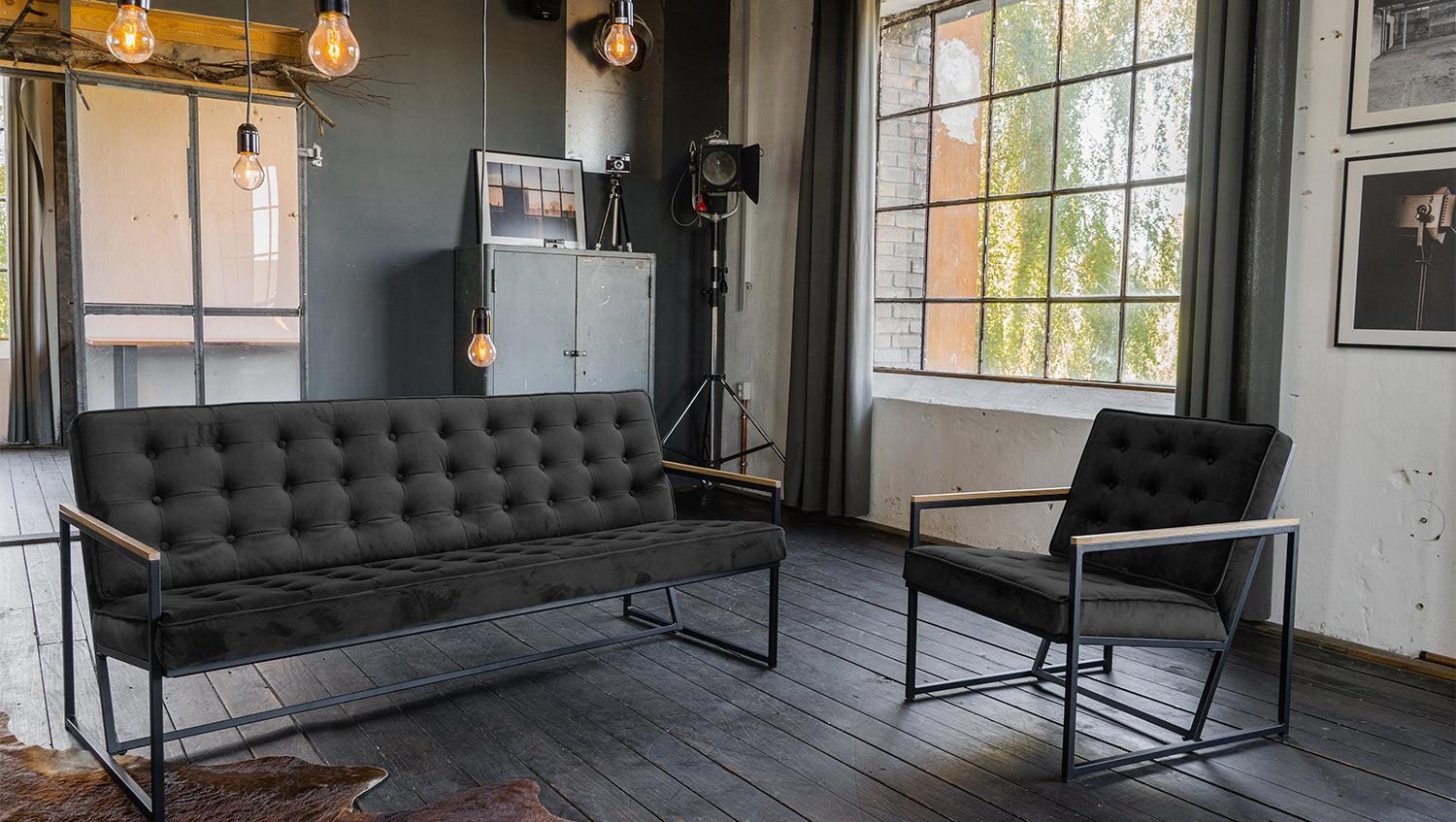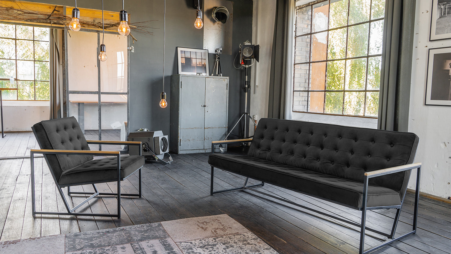 • kantiges Metallgestell in schwarz
