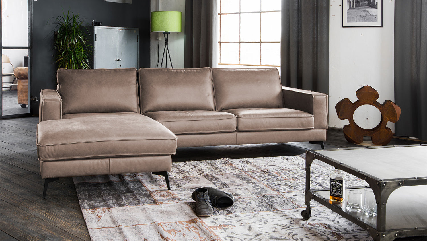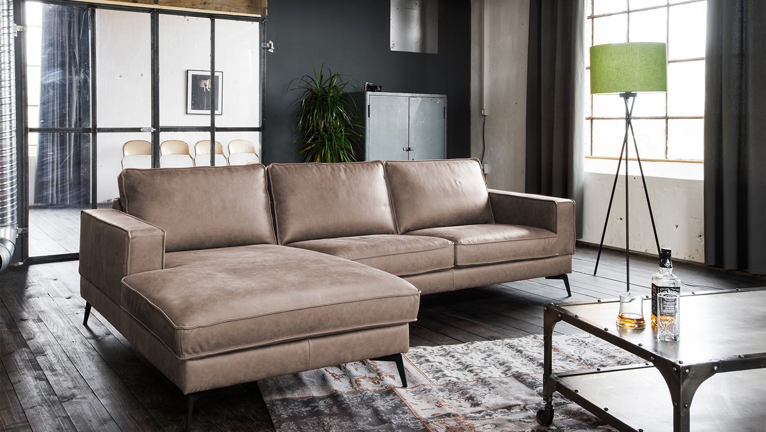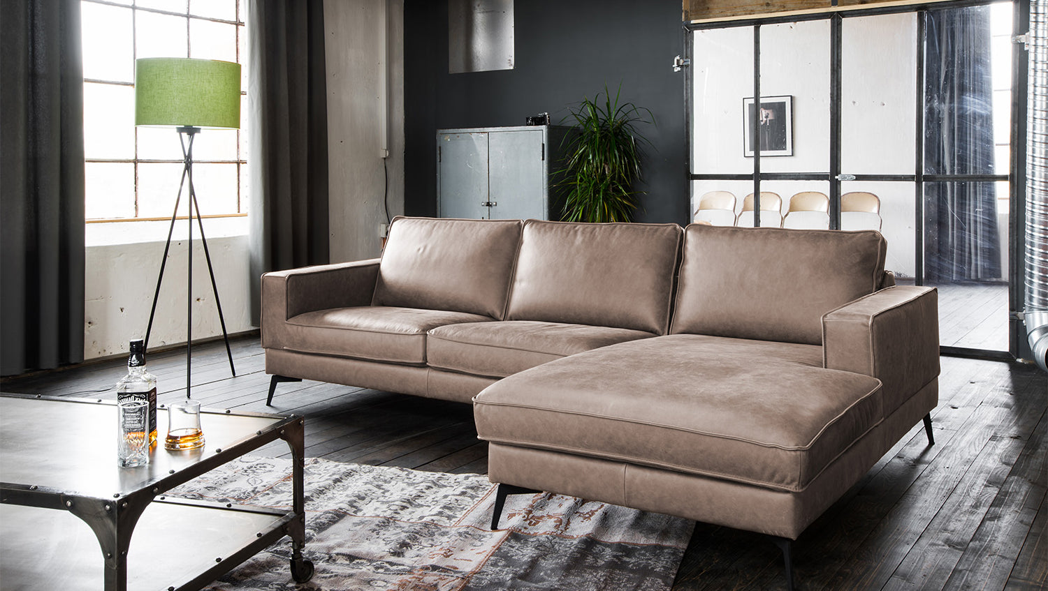 KAWOLA Sofa BLOOM Ecksofa Leder taupe