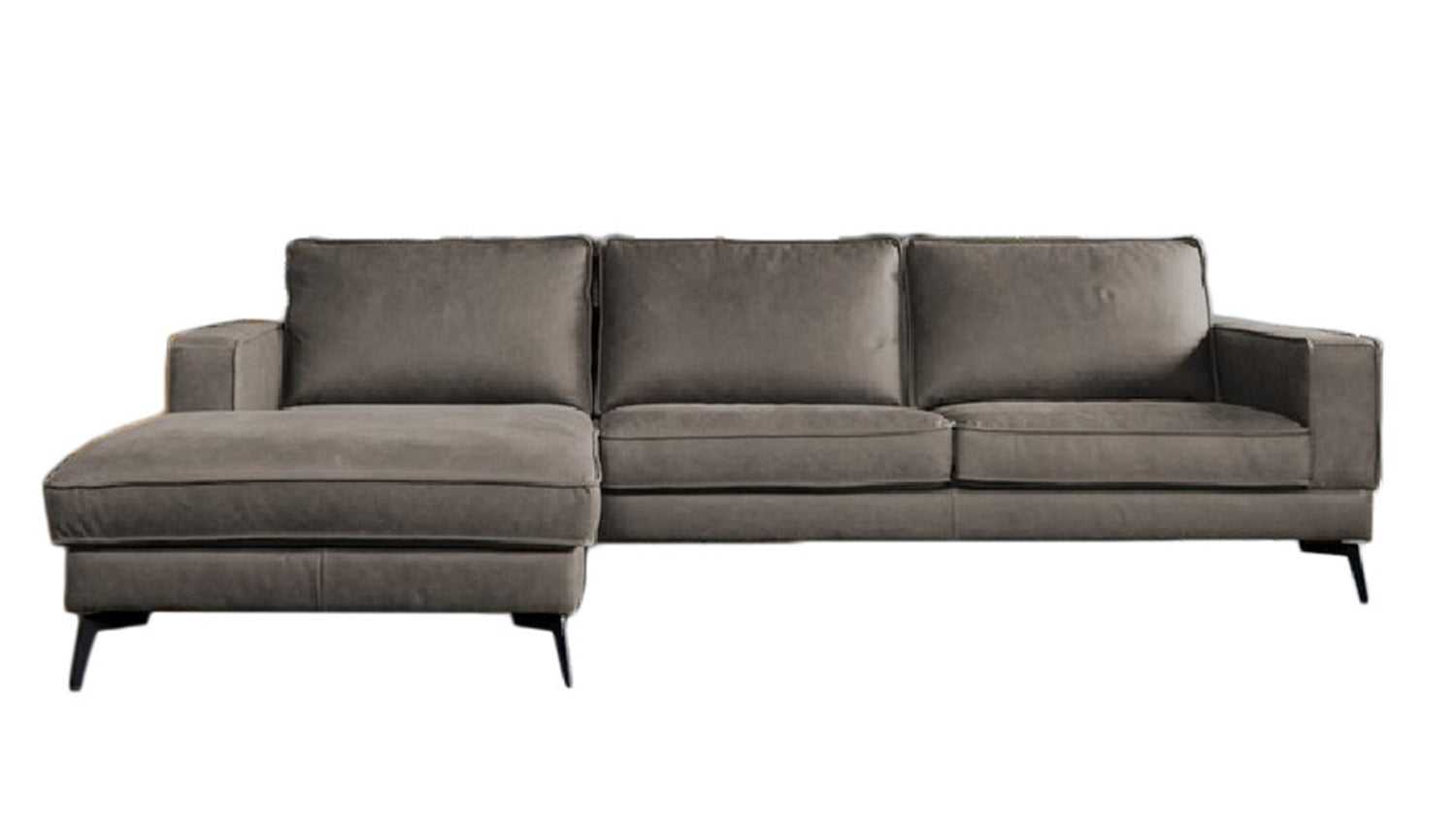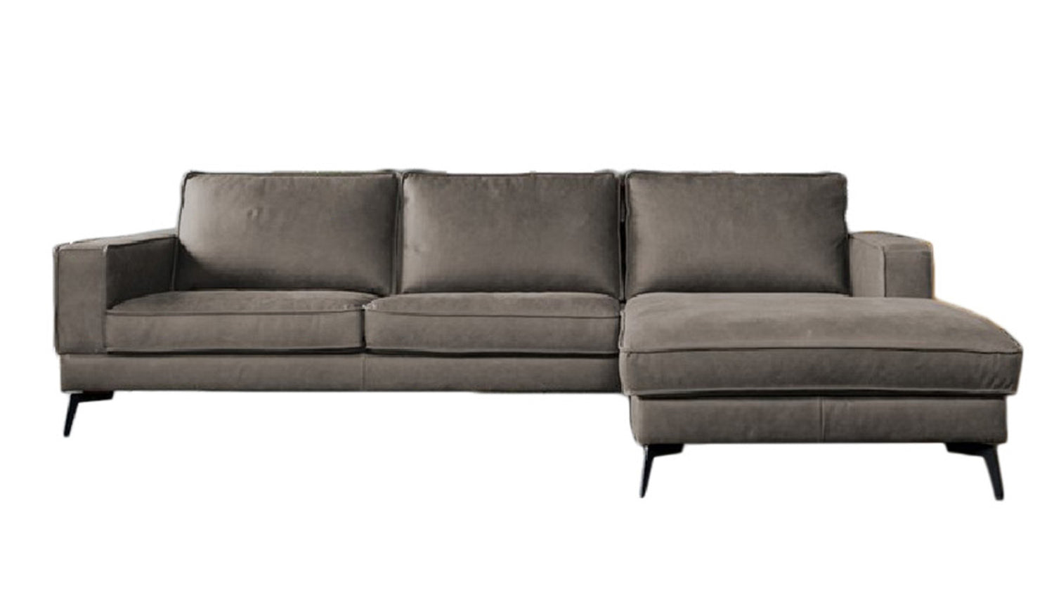 Die Sitzfläche besteht aus einer Schaumstoffpolsterung auf Nosagfedern. Der Rücken ist mit einem dauerelastischen Gummigurtband sowie Silikon ausgestattet. Die schwarzen, filigranen Metallfüße runden die Optik des Sofas perfekt ab!