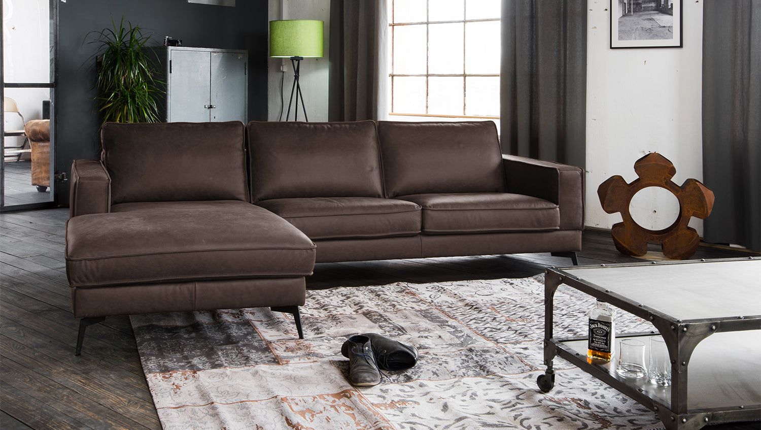 Das Sofa ist rundherum in einem hochwertigen Büffelleder mit besonderem Vintage-Effekt bezogen. Durch das speziell aufgetragene Wachsölfinish und das anschließende Walken erhält das Sofa eine einzigartige Oberflächenoptik. Das besondere Verfahren lässt das Leder nichts von seiner Natürlichkeit verlieren. Somit sind Nackenfalten, Hornstöße oder Narben durchaus möglich und sogar gewünscht. Das Sofa BLOOM steht auf einem verleimten Massivholzgestell.