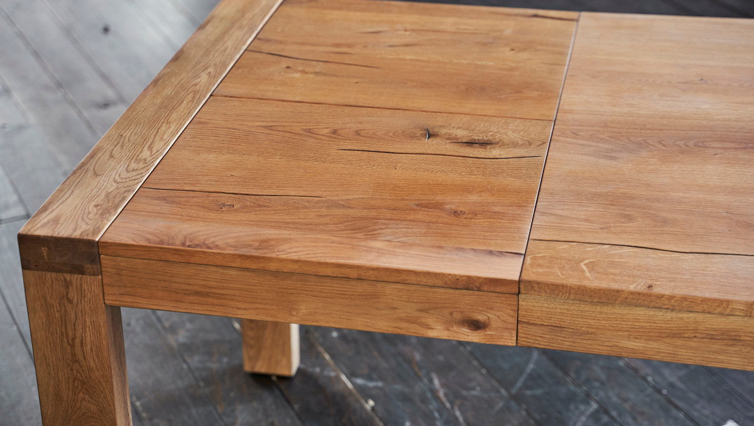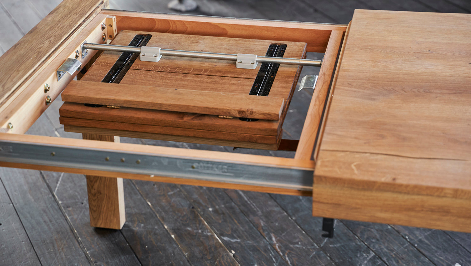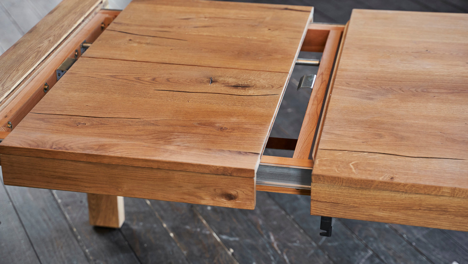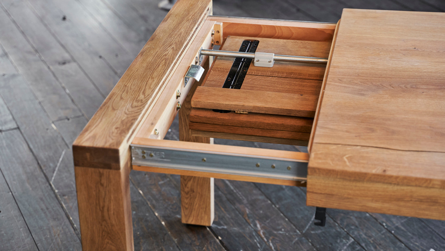 Ein - im wahrsten Sinne - riesiger Bonus ist, dass die Tischplatte erweitert werden kann - je nach Variante auf 230 oder 280 cm.