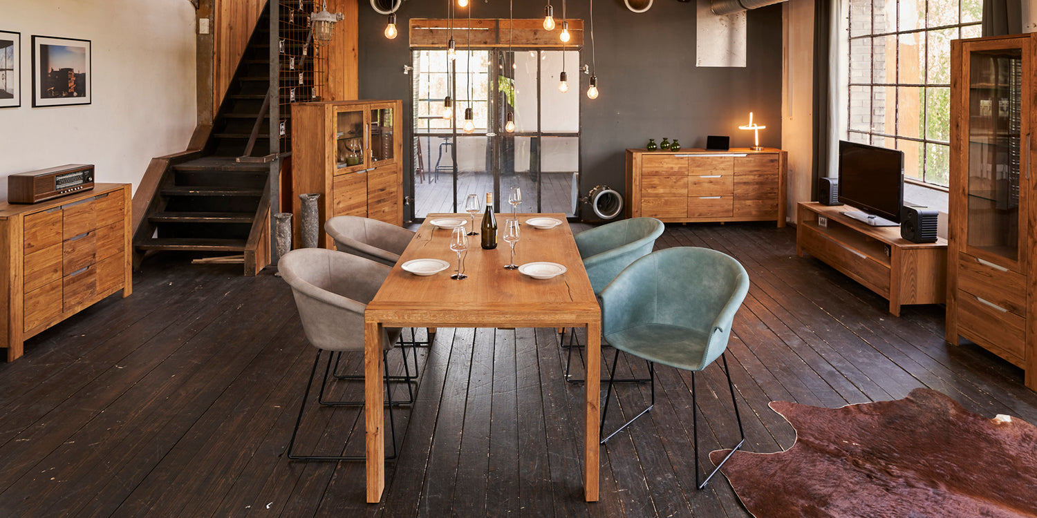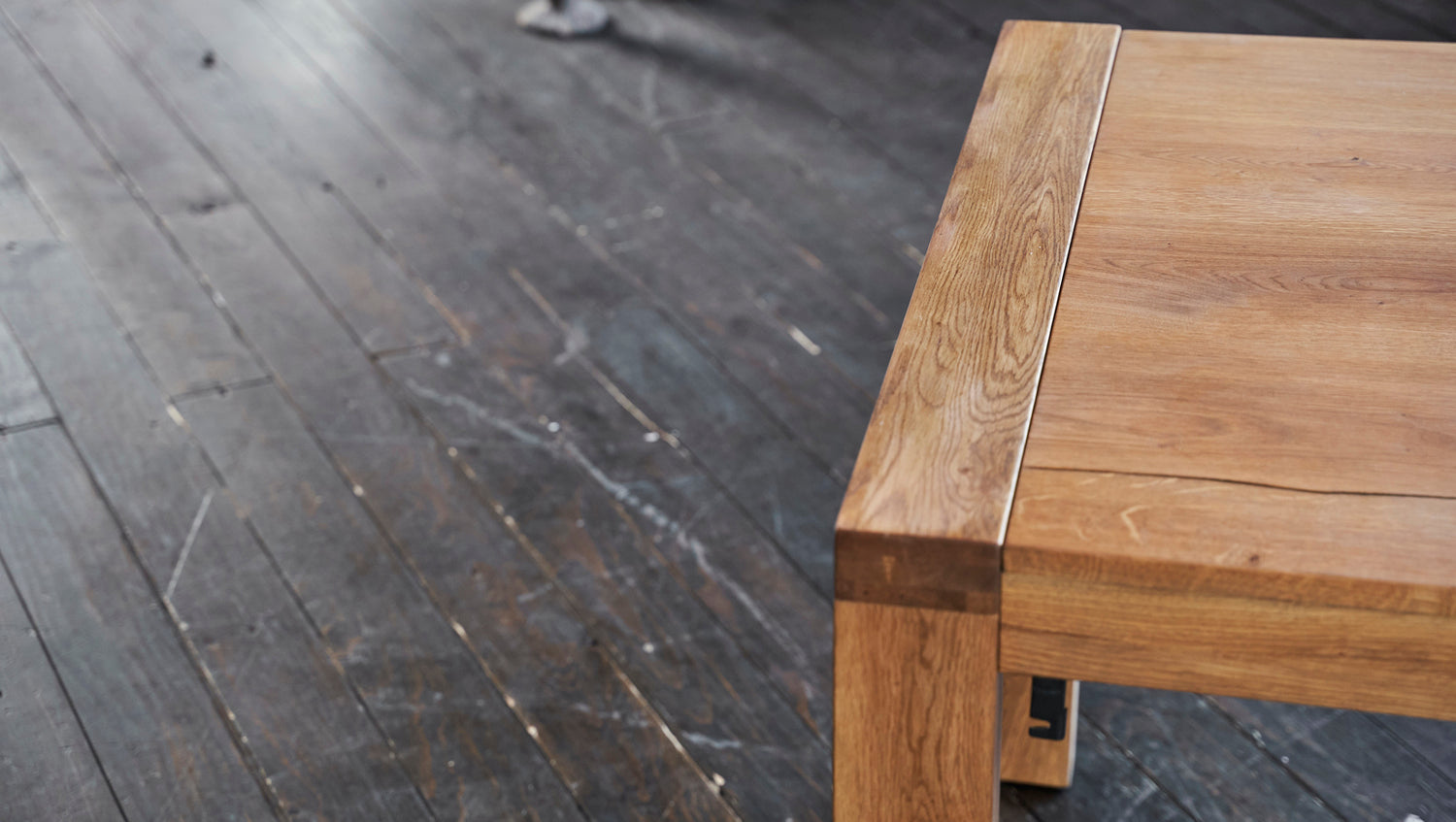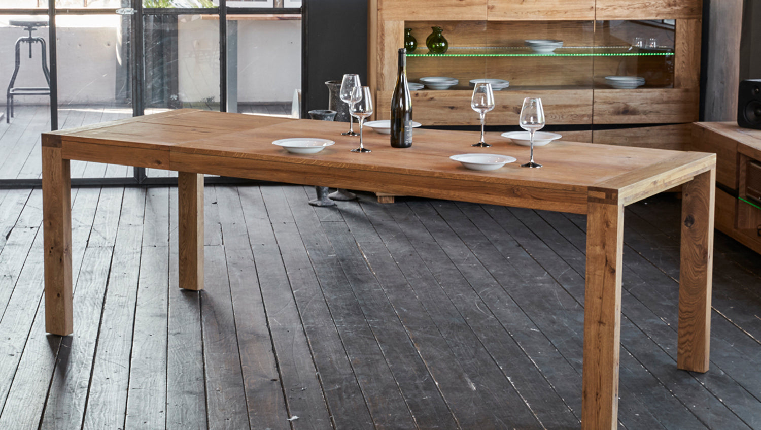 Der KAWOLA Esstisch LIAN besticht mit seinem soliden Stand aufgrund des massiven Eichenholzes.