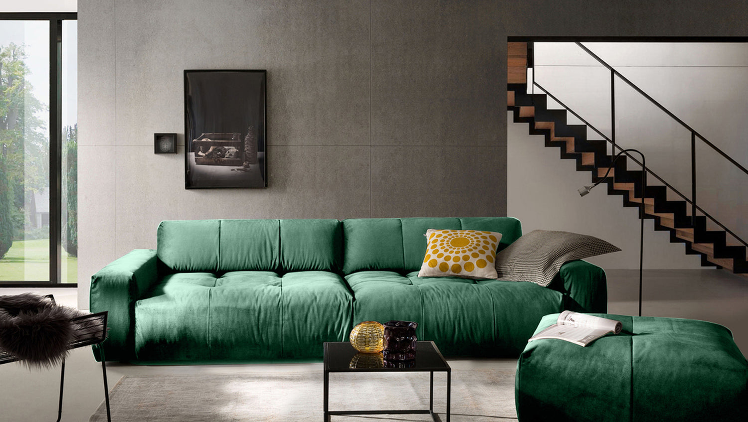 Sofa PALACE überzeugt mit zeitloser Eleganz, modernem Design und besonders hohem Komfort. Der elegante Velvet-Bezug umspannt die gemütliche Liegefläche, deren legere Polsterung zum ausgiebigen Entspannen einlädt und Ihnen pure Erholung schenkt. Das besondere Extra: Sofa PALACE lässt sich im Handumdrehen vom Big Sofa zum klassischen Sitzmöbel verwandeln. Dank Sitztiefenverstellung, welche durch die Verstellung der Rückenlehne erfolgt, lässt sich die Sitztiefe von 83 cm auf 59 cm verkleinern. So können Sie frei entscheiden, ob Sie eine aufrechtere Sitzposition bevorzugen oder lieber Platz zum Ausstrecken bevorzugen.