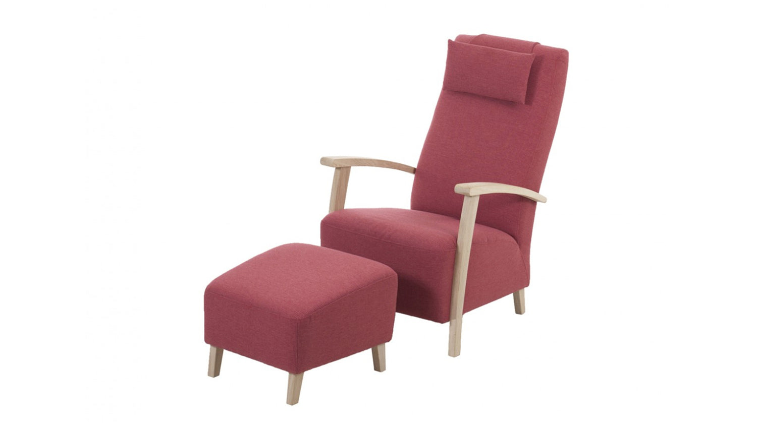Beide Möbelstücke sind rundherum mit Stoff in der Farbe rot bezogen, daher können diese frei im Raum platziert werden.