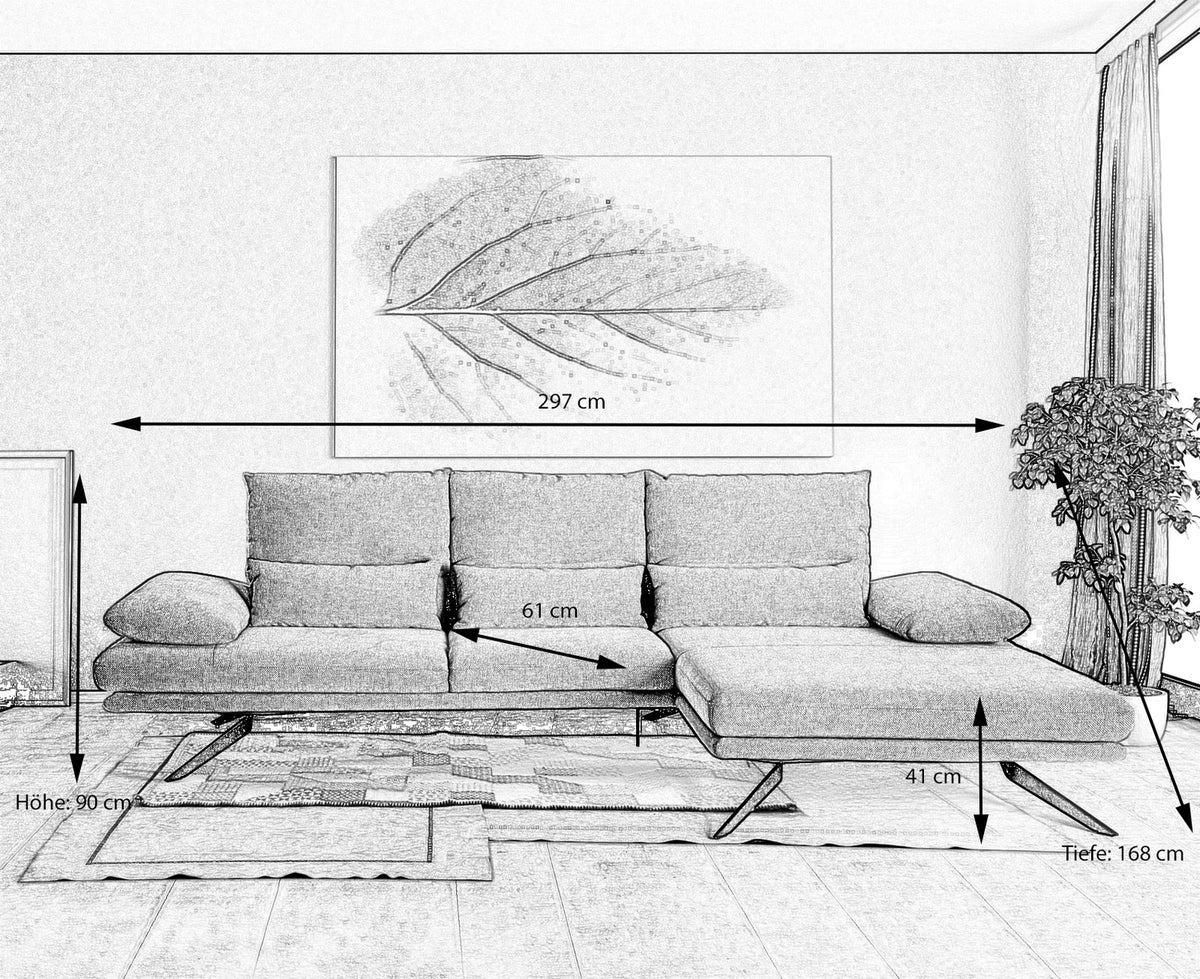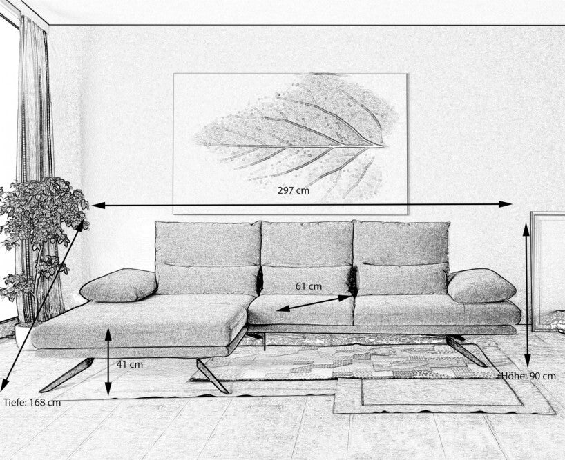 • Maße (B/T/H): 297/168/90 cm
