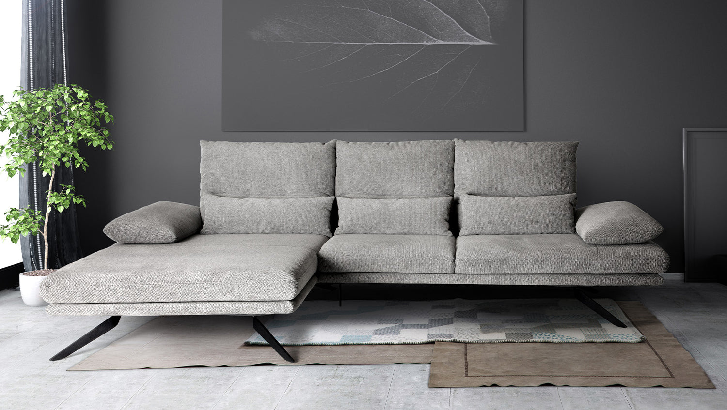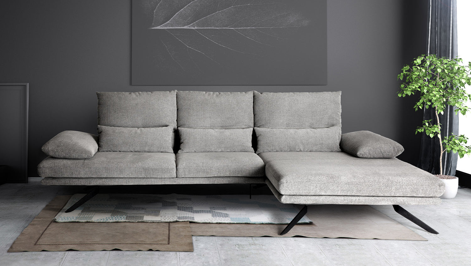 Erstaunte Blicke werden Ihnen mit dem KAWOLA Sofa FENICE sicher sein. Das schnittige Design und die gleichzeitig gemütliche Ausstrahlung zeichnen dieses Sofa besonders aus. Ein Blickfang stellt es nicht nur im Wohnzimmer dar, sondern auch in Büroräumlichkeiten beispielsweise. Der Komfort spielt eine wichtige Rolle beim Ecksofa FENICE, sodass ein festgepolsterter Rücken mit einer besonders legeren und weichen Oberfläche für angenehmen Sitzkomfort sorgt. Das absolute Highlight sind aber zweifelsohne die Möglichkeiten der Verstellbarkeit, da der Rücken flexibel verstellbar ist. Mit dem Ecksofa FENICE von KAWOLA sind Sie nicht nur in Sachen Vielfältigkeit, sondern auch in Hinblick auf die Optik an der qualitativen Spitze angelangt.
