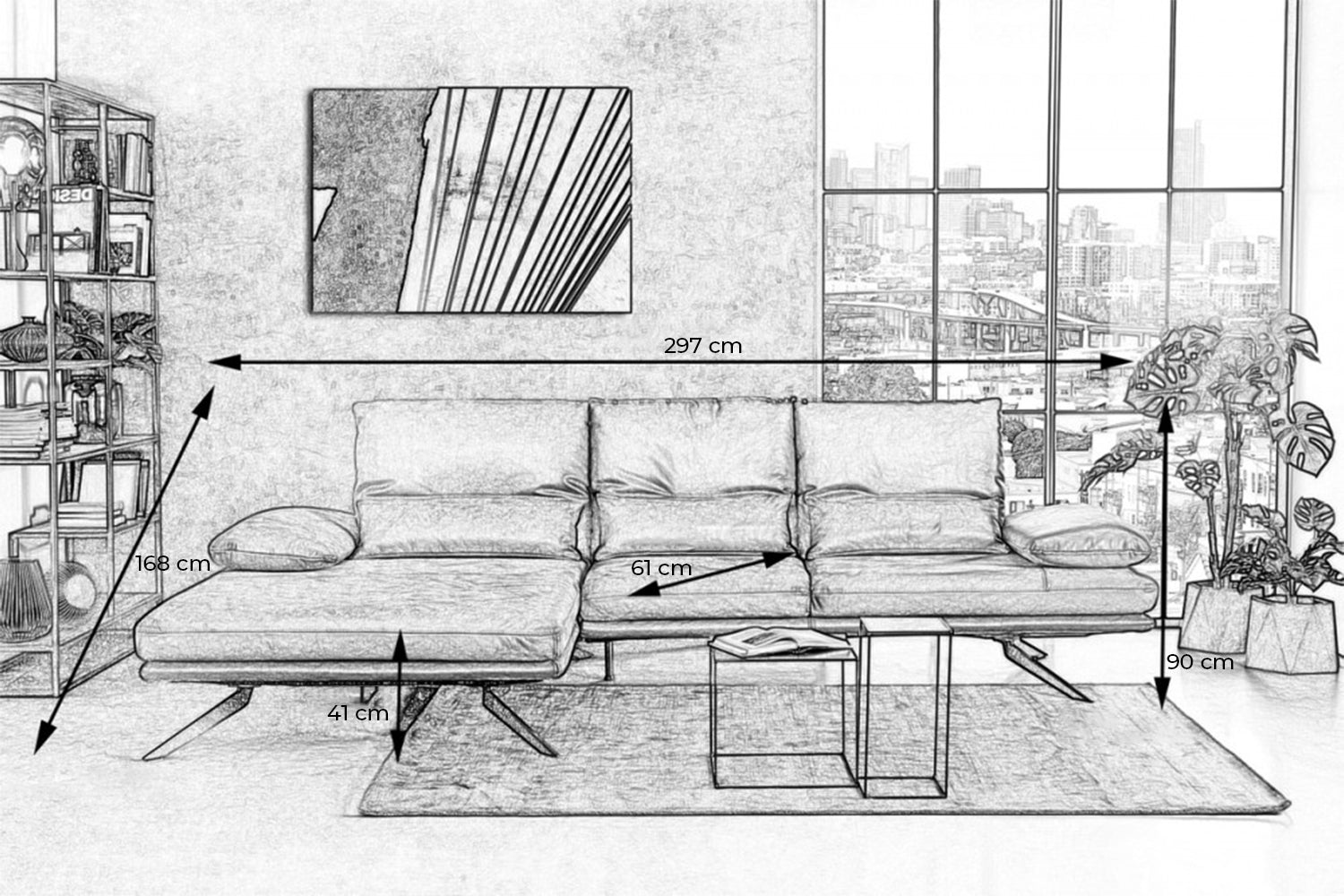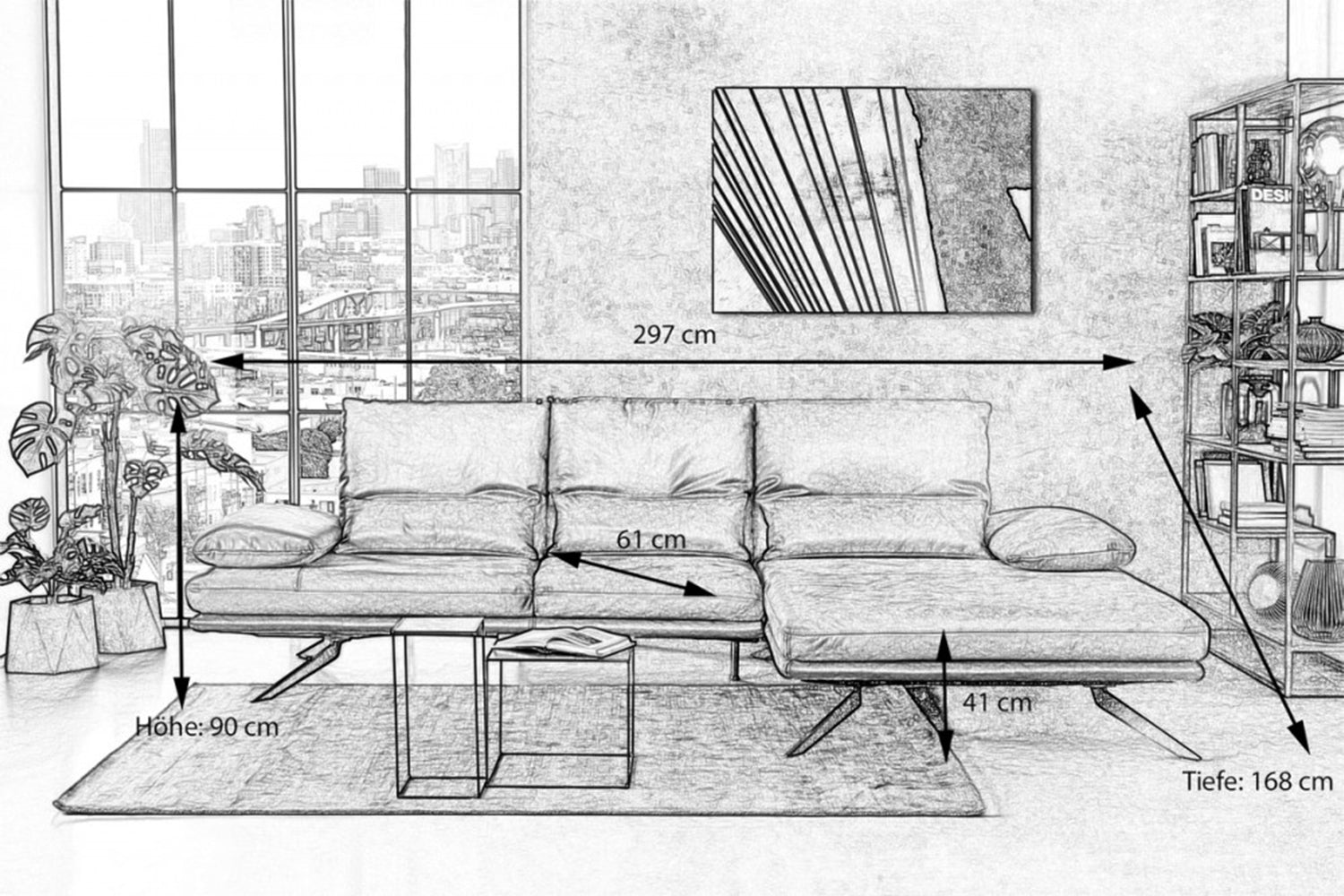 • Maße (B/T/H): 297/168/90 cm