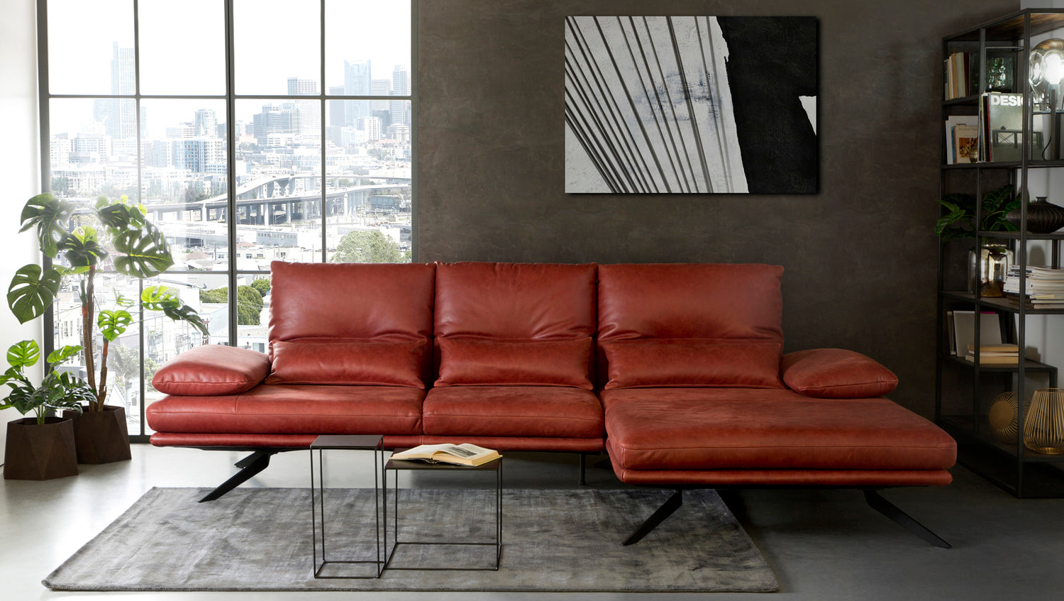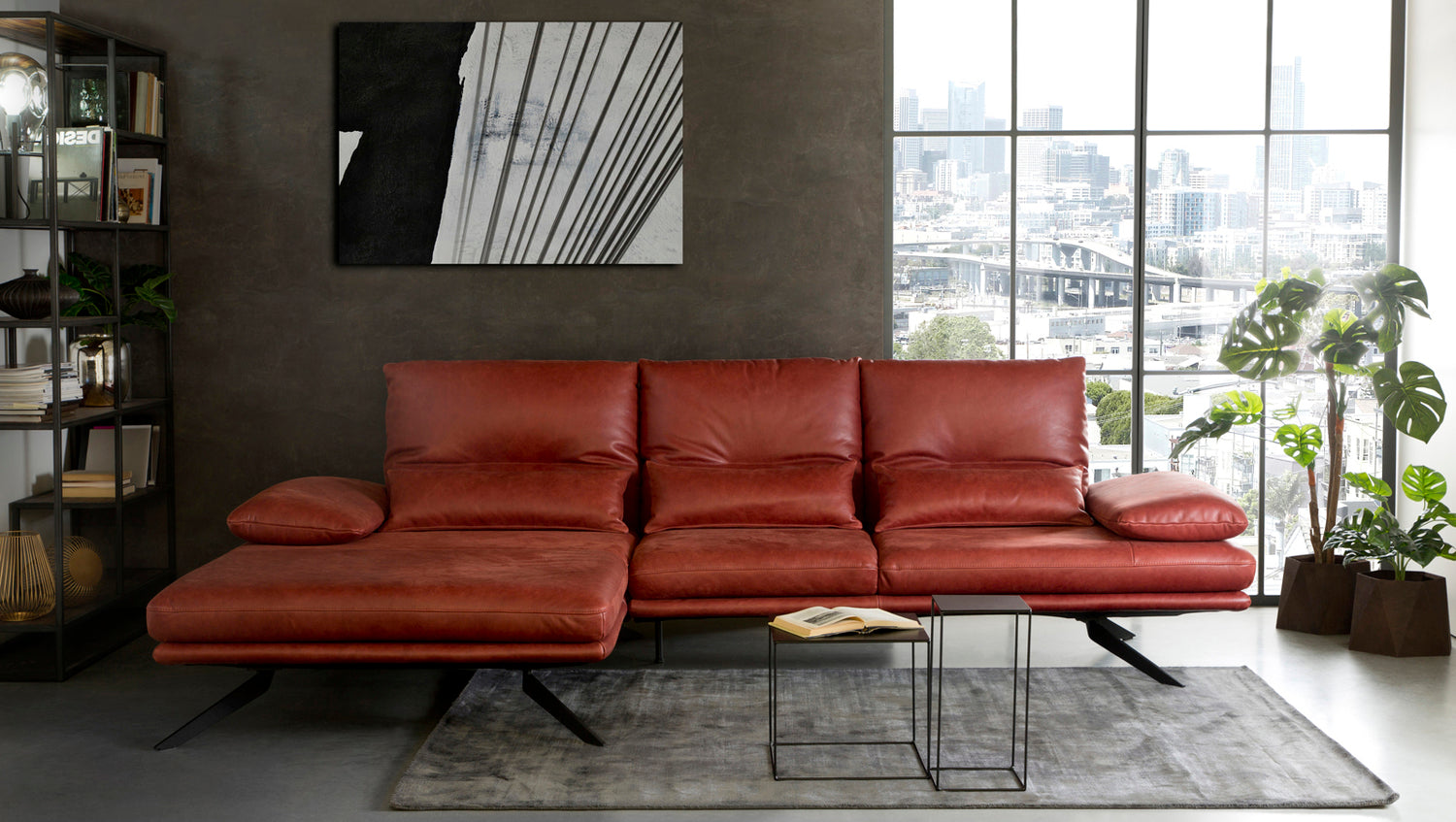 KAWOLA Sofa FENICE Ecksofa Leder burgunderrot