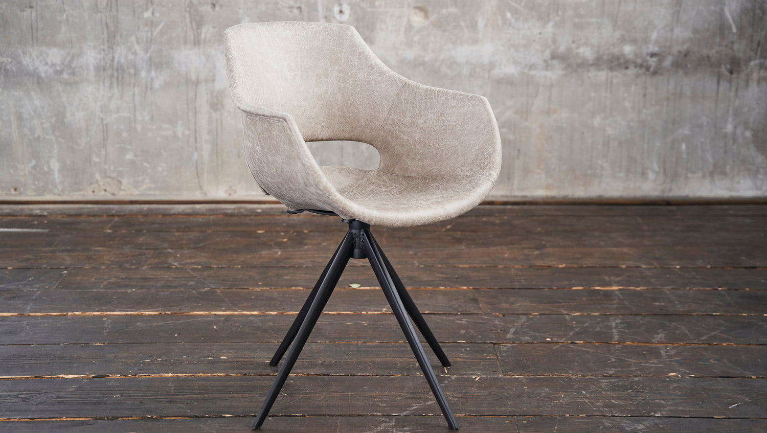 Der Stuhl ZAJA vereint industrielles und modernes Wohndesign. Hier können Sie sich bequem zurücklehnen und stilvoll speisen. Das Material ist sehr hochwertig verarbeitet und lässt sich problemlos reinigen. Der Stuhl ZAJA eignet sich für praktisch jeden Wohnbereich. Ob nun am Schreibtisch oder im Esszimmer überall macht der Stuhl aufgrund seines modernen Designs eine hervorragende Figur. Hier steht gemütlichen Stunden zum Arbeiten oder für die Freizeit nichts mehr im Wege. Das Highlight des Stuhls ist aber die Drehfunktion, mit der sich die Sitzposition um 360 Grad drehen lässt.