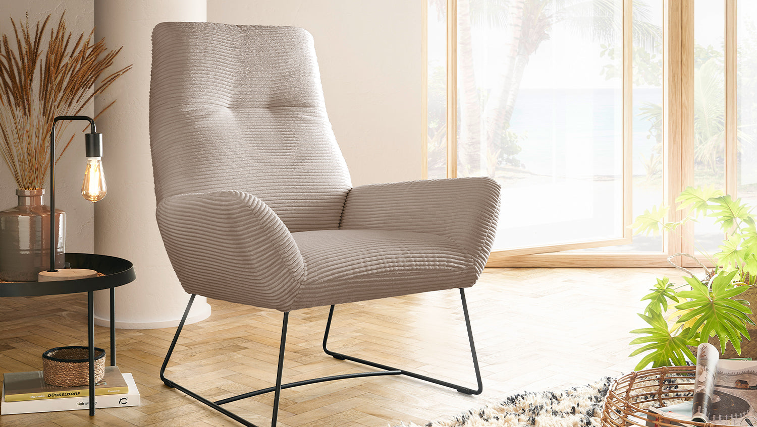 Der wunderschöne KAWOLA Sessel BISA aus angenehmem Cord macht Ihren Wohnbereich zum neuen Lieblingsort! Das Polstermöbelstück ist hochwertig verarbeitet und fügt sich toll in Ihr Zuhause ein. Komfort mit Qualität treffen auf einen industriellen Look. Die tragenden Teile des Gestells sind aus Massivholz gefertigt und die Rückenpolsterung aus ergonomisch geformtem PUR-Schaum bietet Ihnen den optimalen Sitzkomfort. Ob nun beim Lesen eines guten Buchs, einem entspannten Abend mit Freunden, oder beim Filmschauen, Sessel BISA ist immer eine gute Wahl.