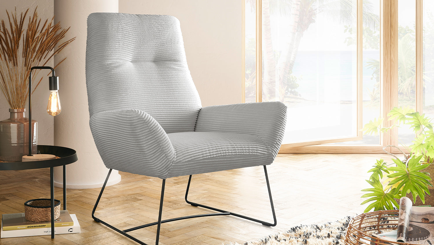 KAWOLA Sessel BISA Cord hellgrau